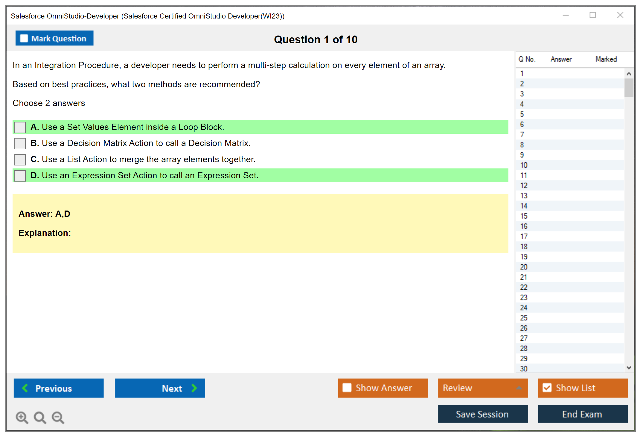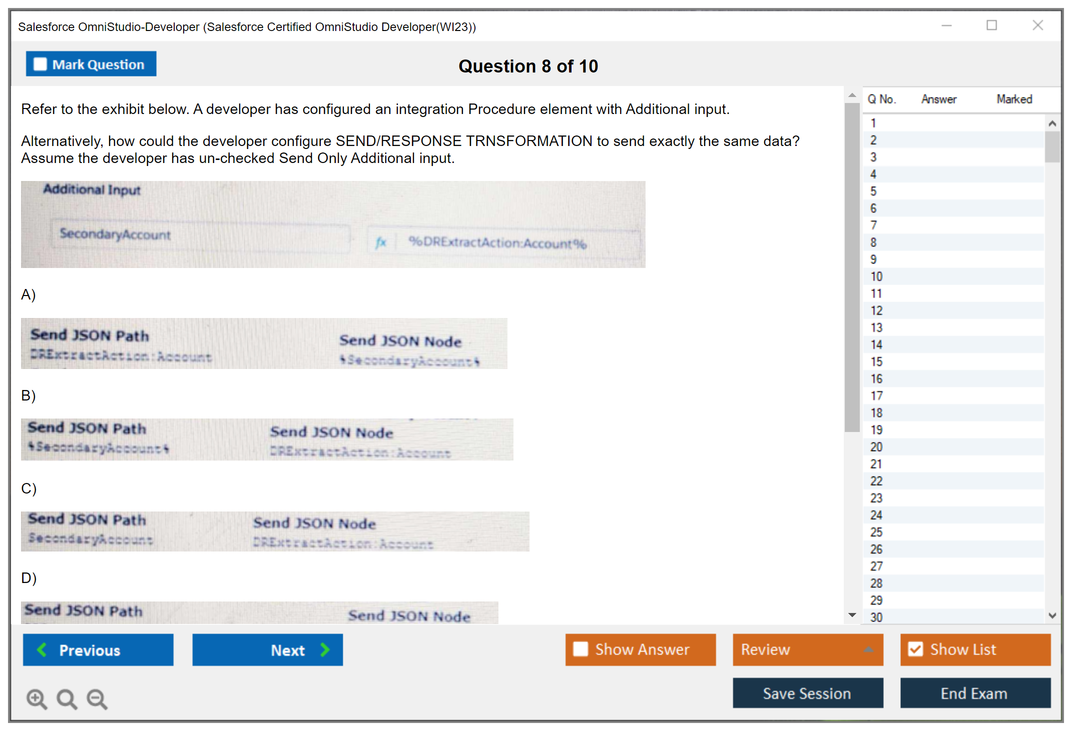 Sample questions for the Salesforce OmniStudio-Developer Exam can be found on the official Salesforce certification website and through various study guides and online resources.
