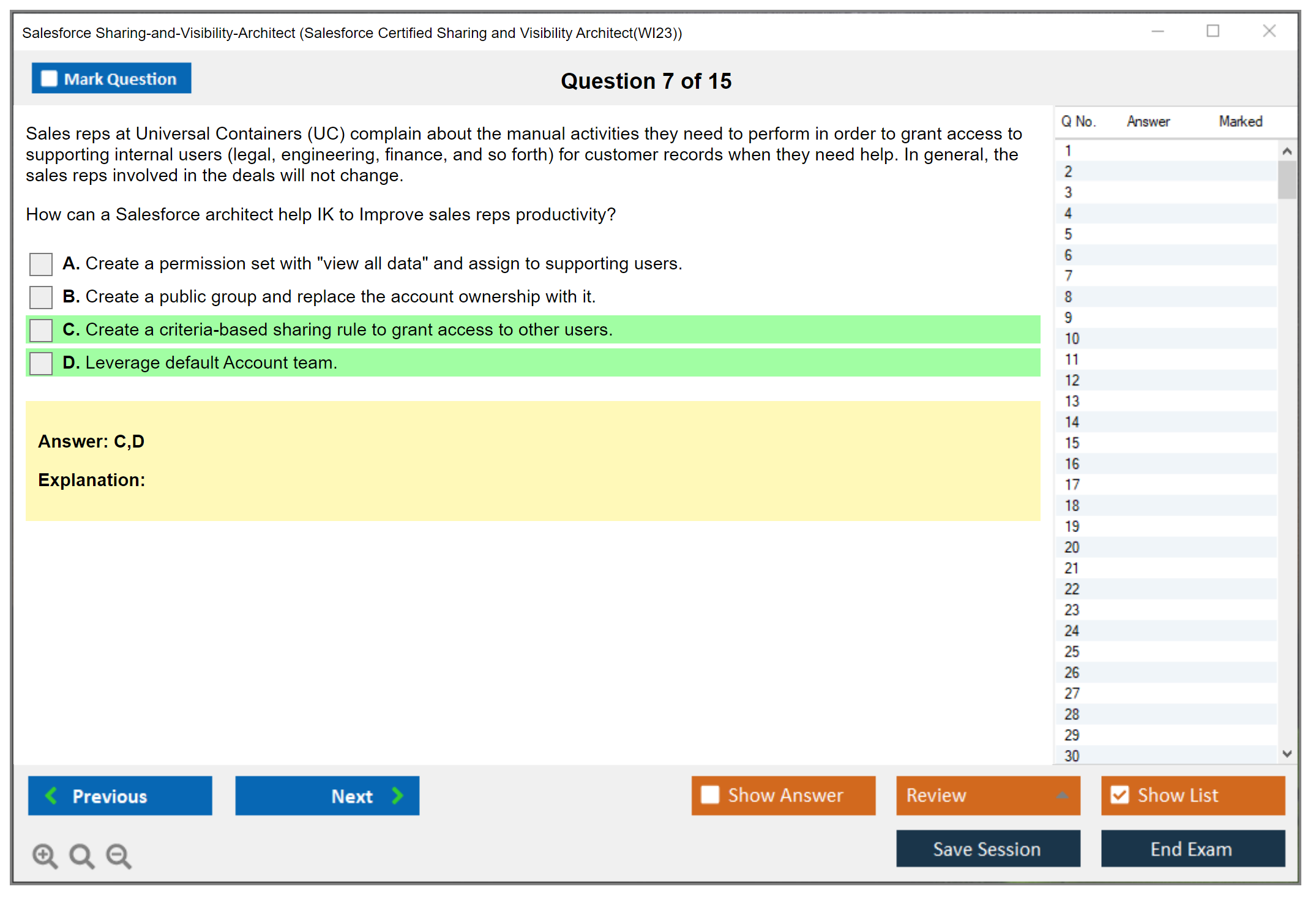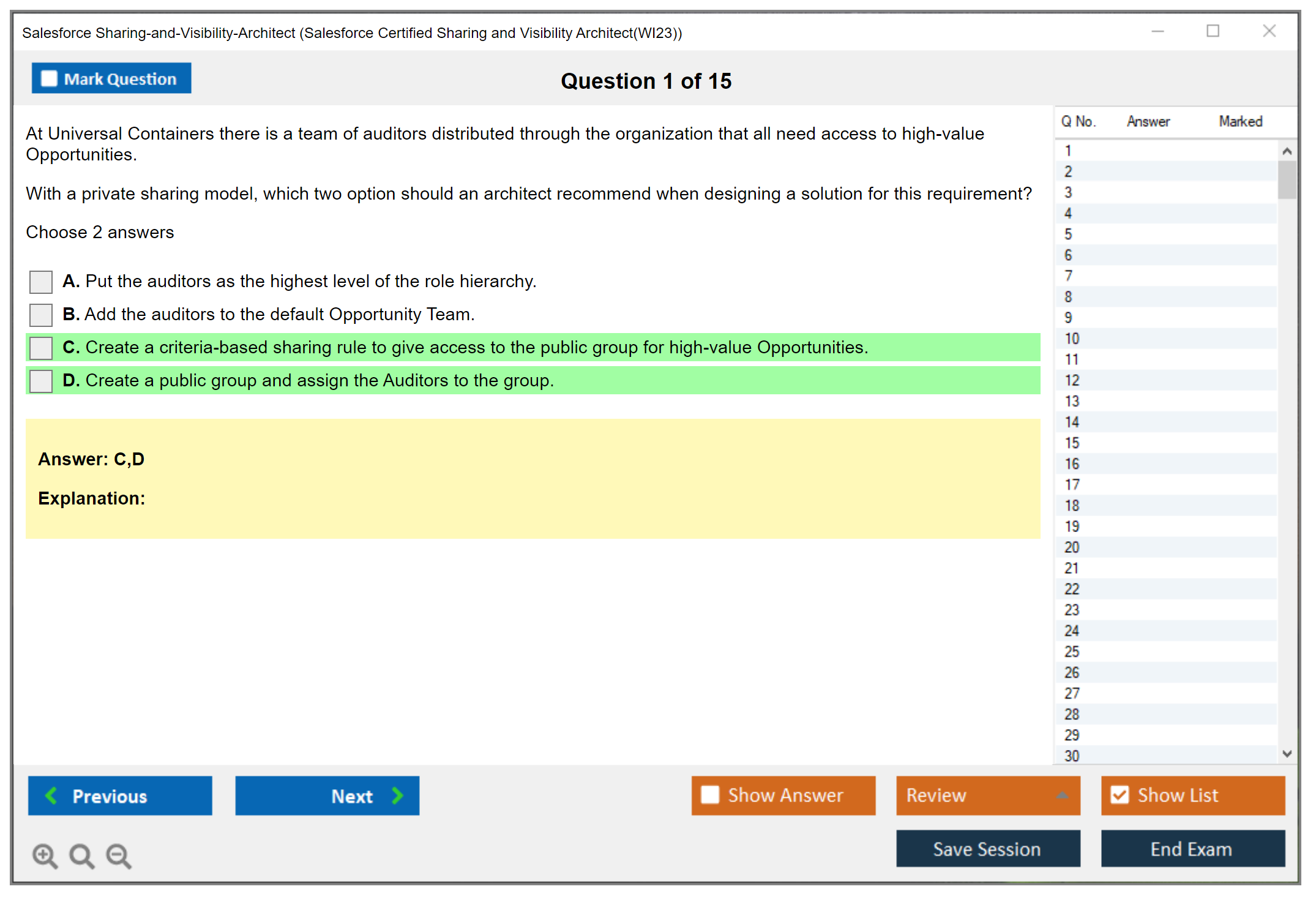 What are the Sample Questions of Salesforce Sharing-and-Visibility-Architect Exam?