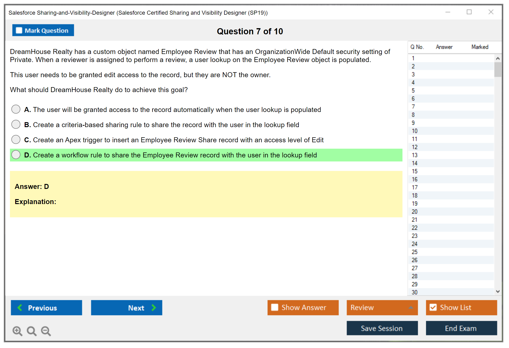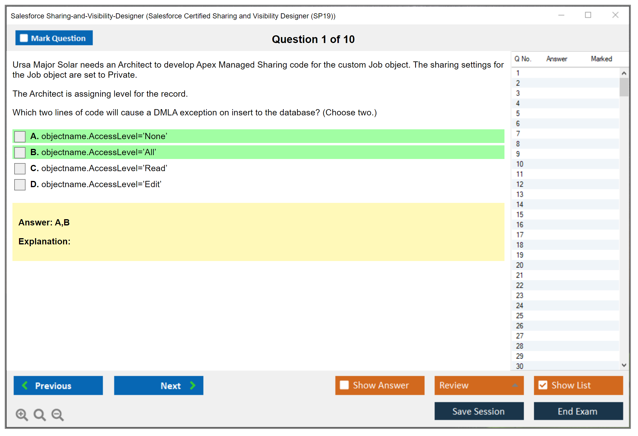 What are the Sample Questions of Salesforce Sharing-and-Visibility-Designer Exam?