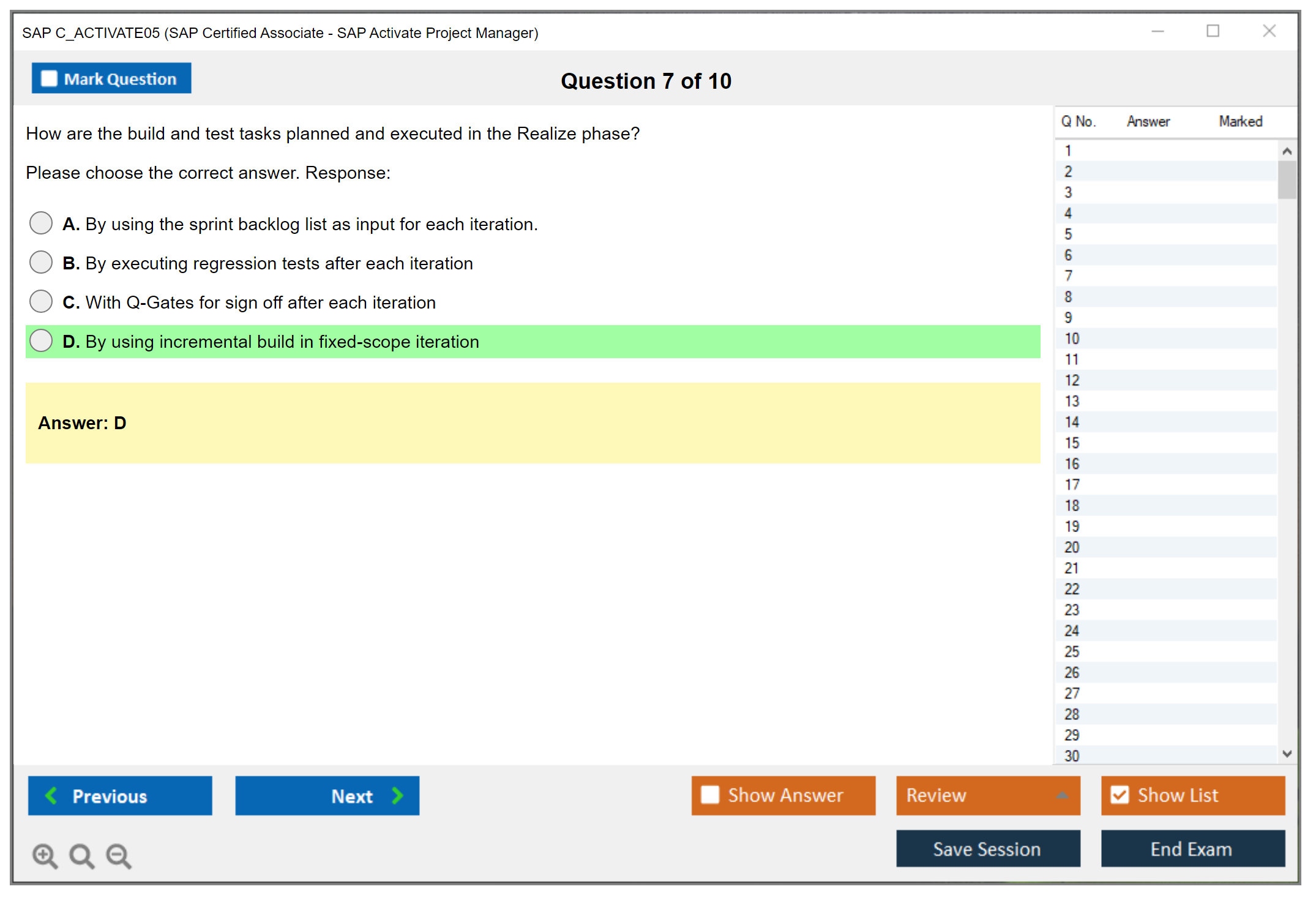 The SAP C_ACTIVATE05 (SAP Certified Associate - SAP Activate Project Manager) Exam is designed to validate the skills and knowledge of project managers who manage SAP projects using the SAP Activate methodology. This certification demonstrates a candidate's ability to apply the SAP Activate methodology, including Agile and Scrum techniques, to manage SAP projects effectively.