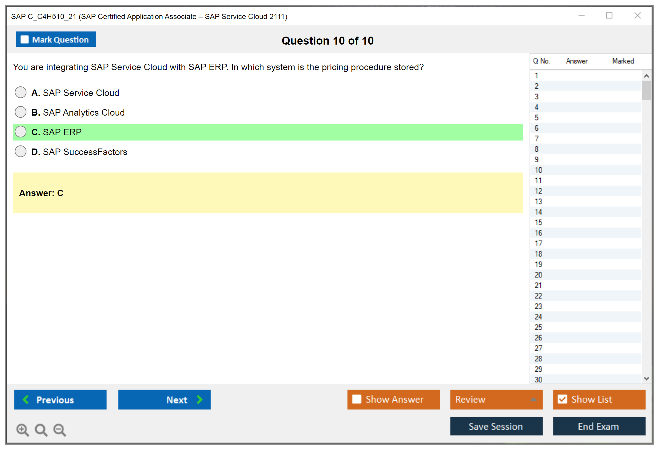 The SAP C_C4H510_21 (SAP Certified Associate - Implementation Consultant - SAP Service Cloud) exam is a certification exam for individuals aiming to validate their skills and knowledge in implementing SAP Service Cloud solutions.