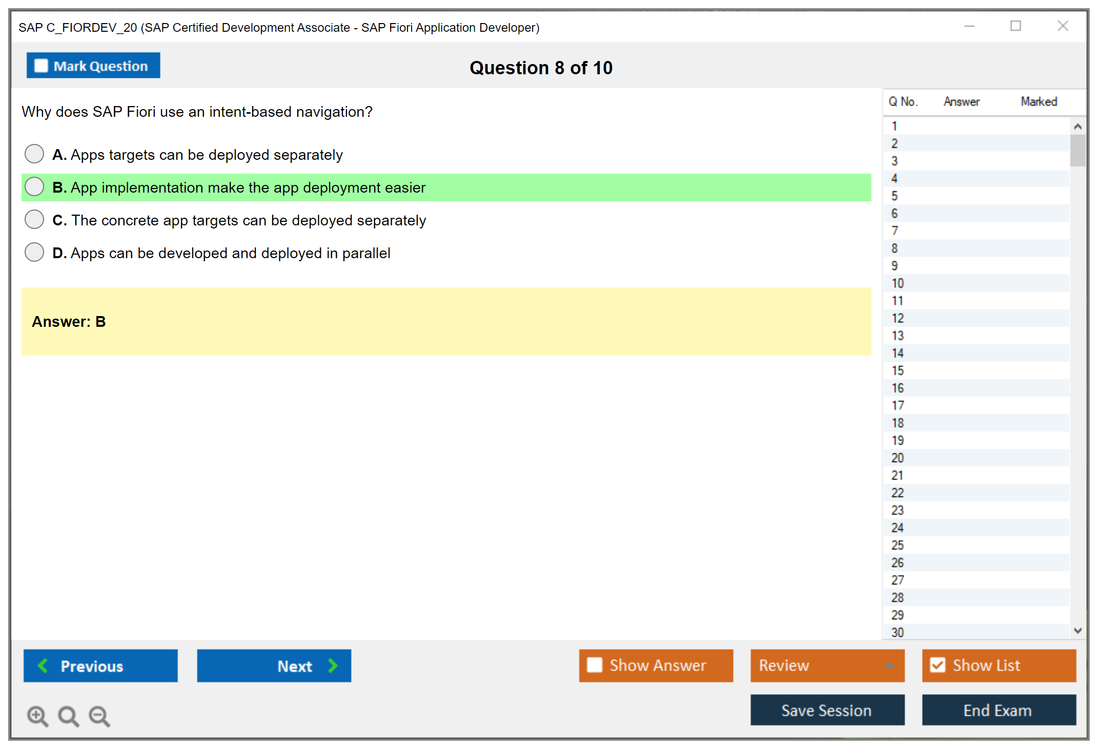 The SAP C_FIORDEV_20 Exam typically consists of 80 questions.