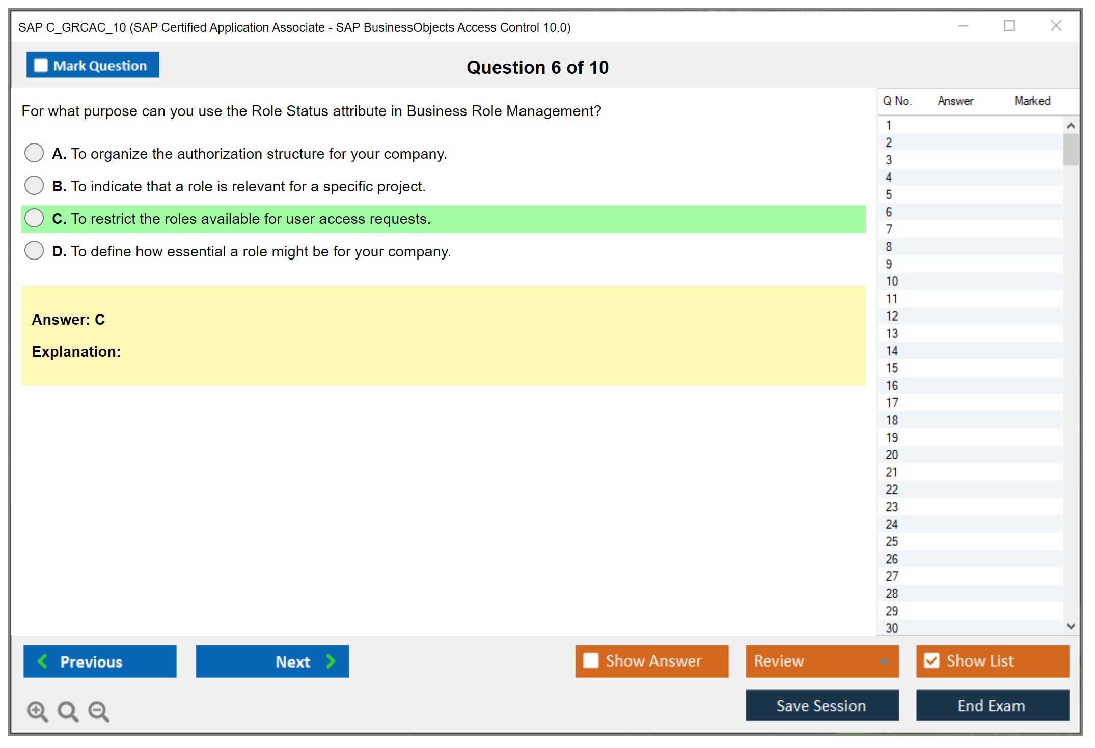 Note: SAP C_GRCAC_10 (SAP Certified Application Associate - SAP BusinessObjects Access Control 10.0) will not receive any new updates.