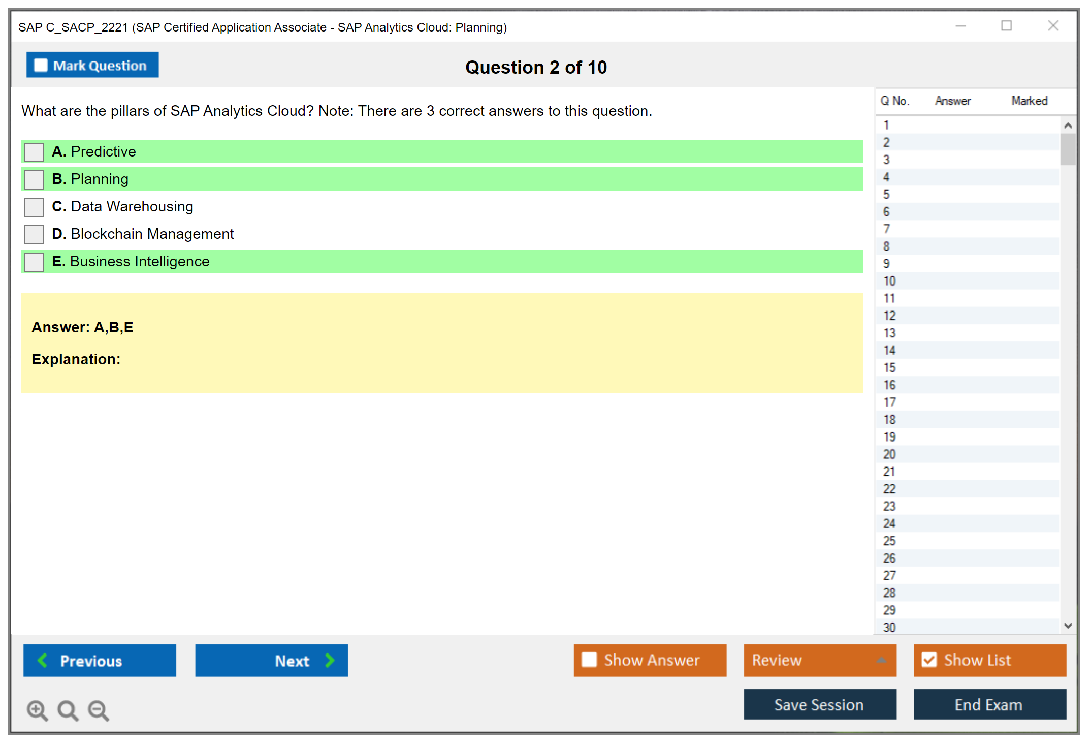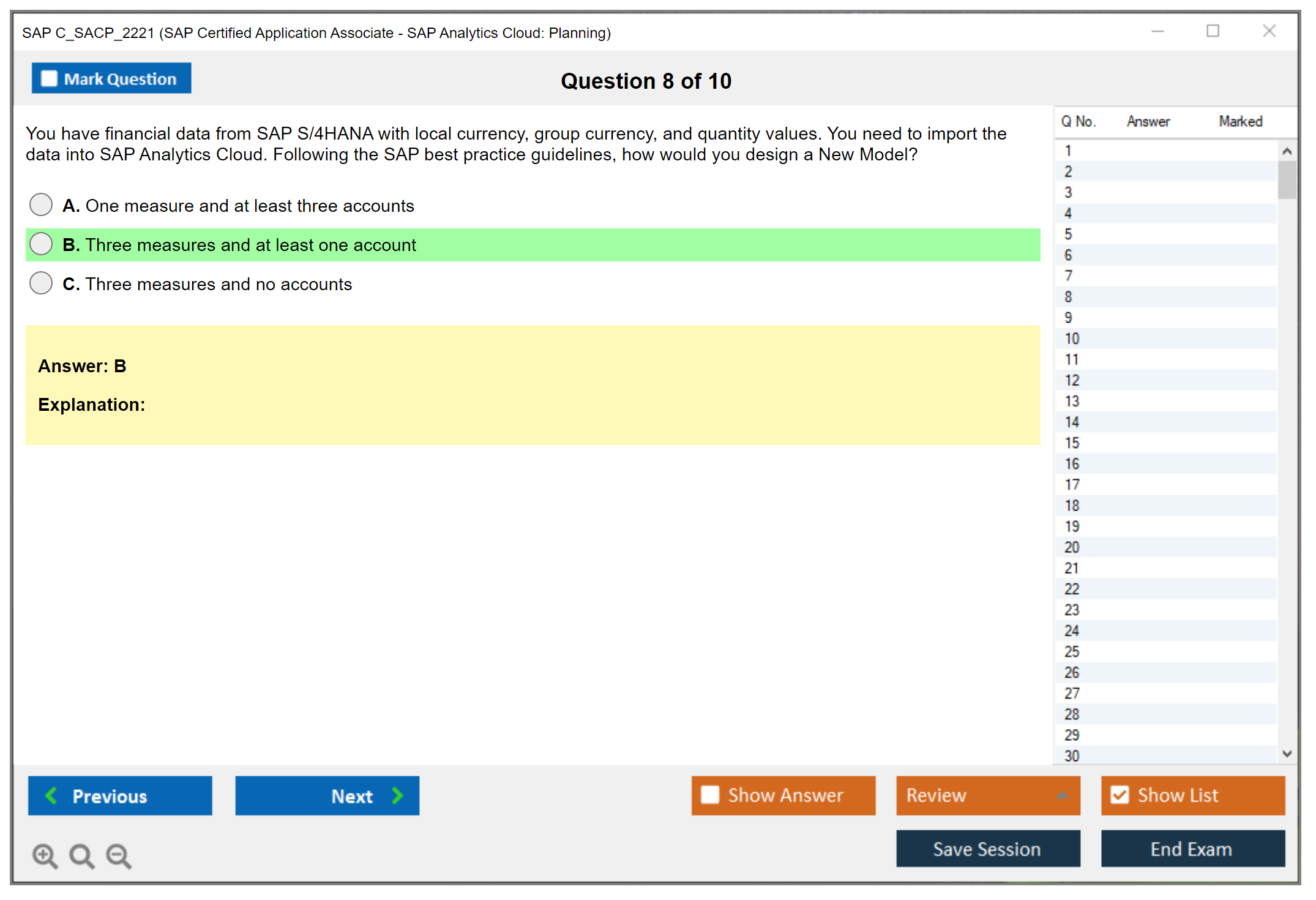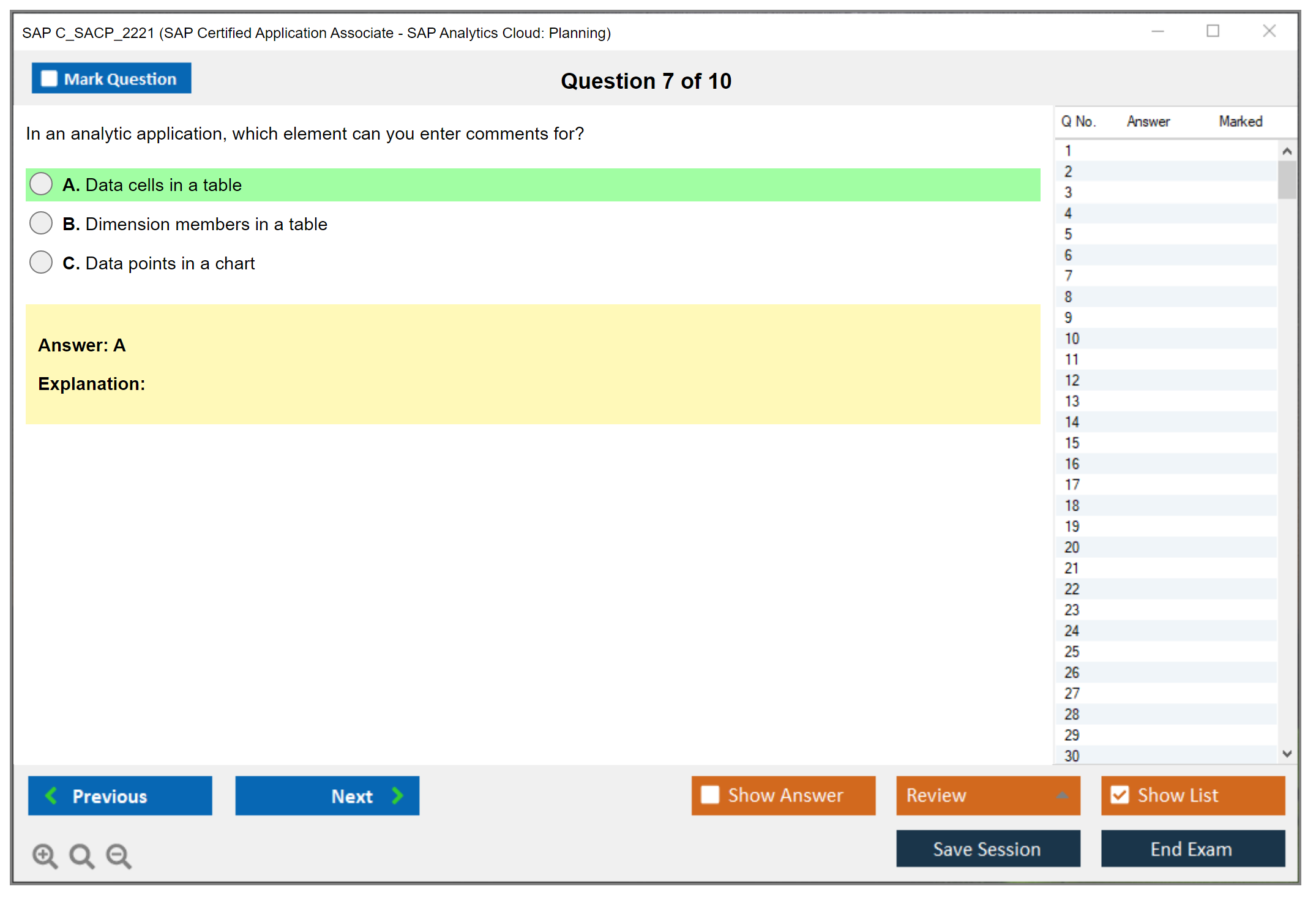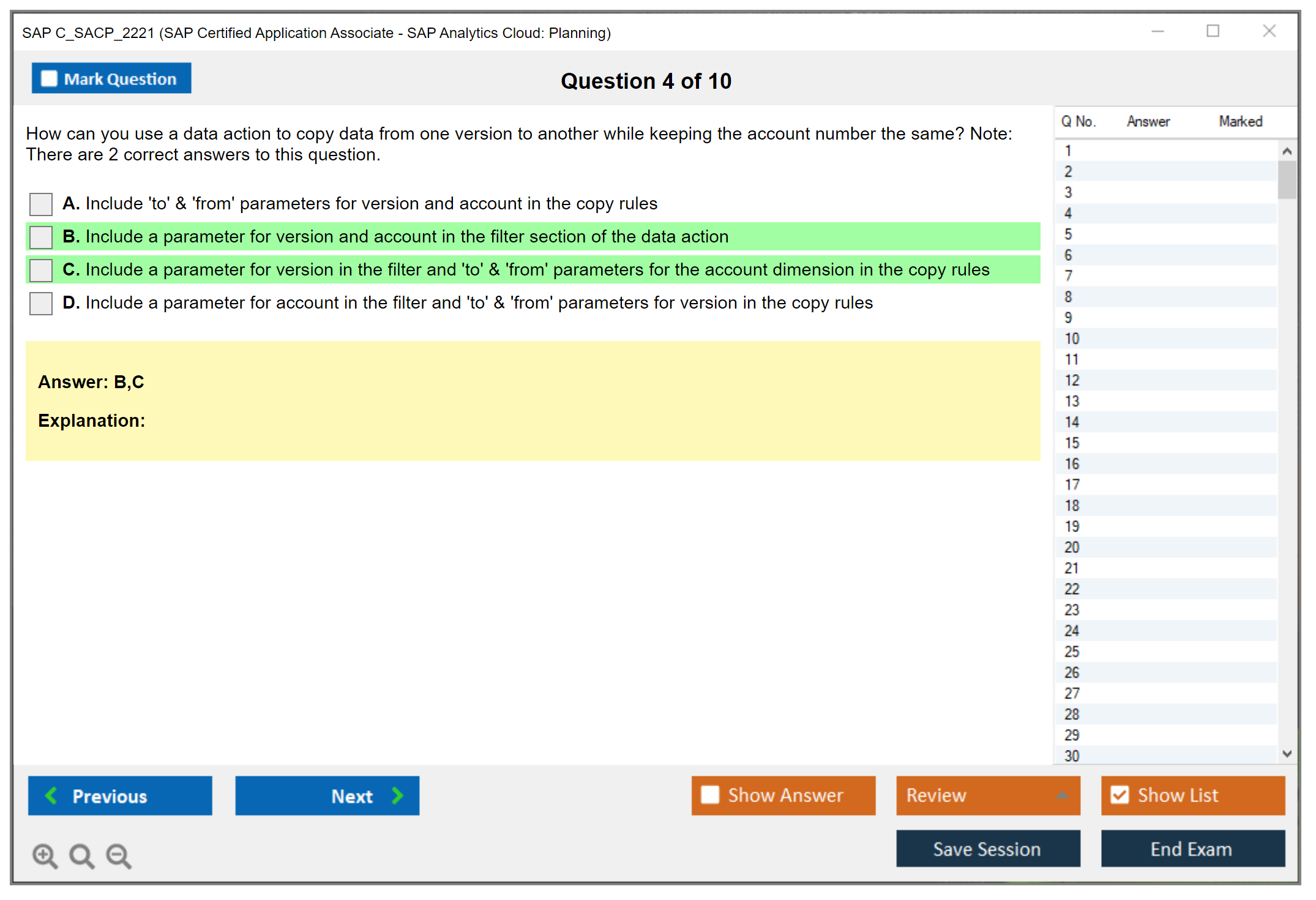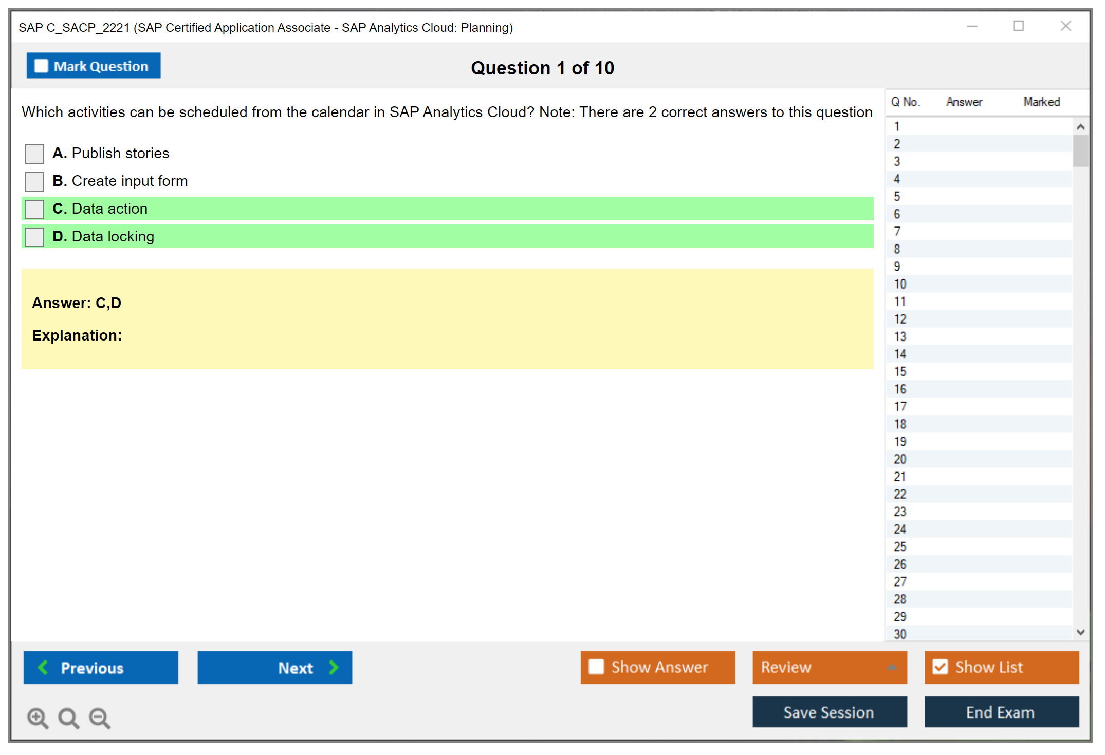 The SAP C_SACP_2221 exam is a certification test for individuals aiming to become certified in SAP Analytics Cloud: Planning. It evaluates the candidate's knowledge of core concepts, functionalities, and features of SAP Analytics Cloud, focusing on planning capabilities.