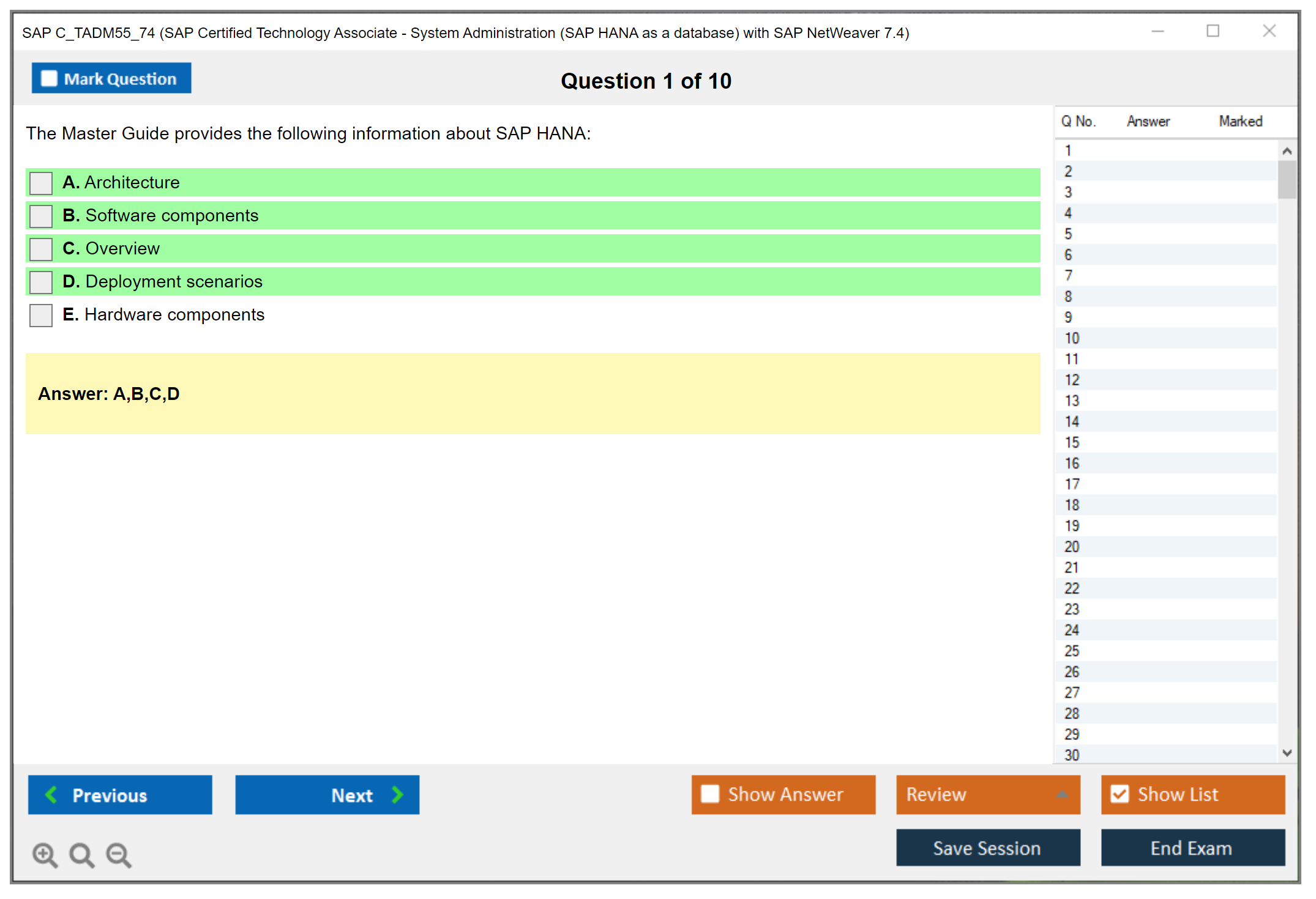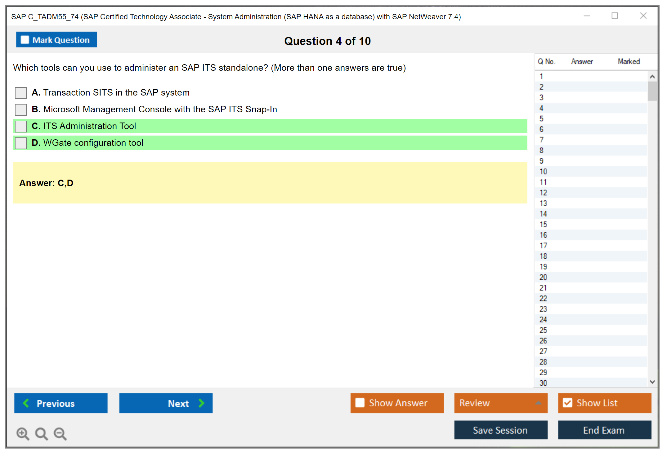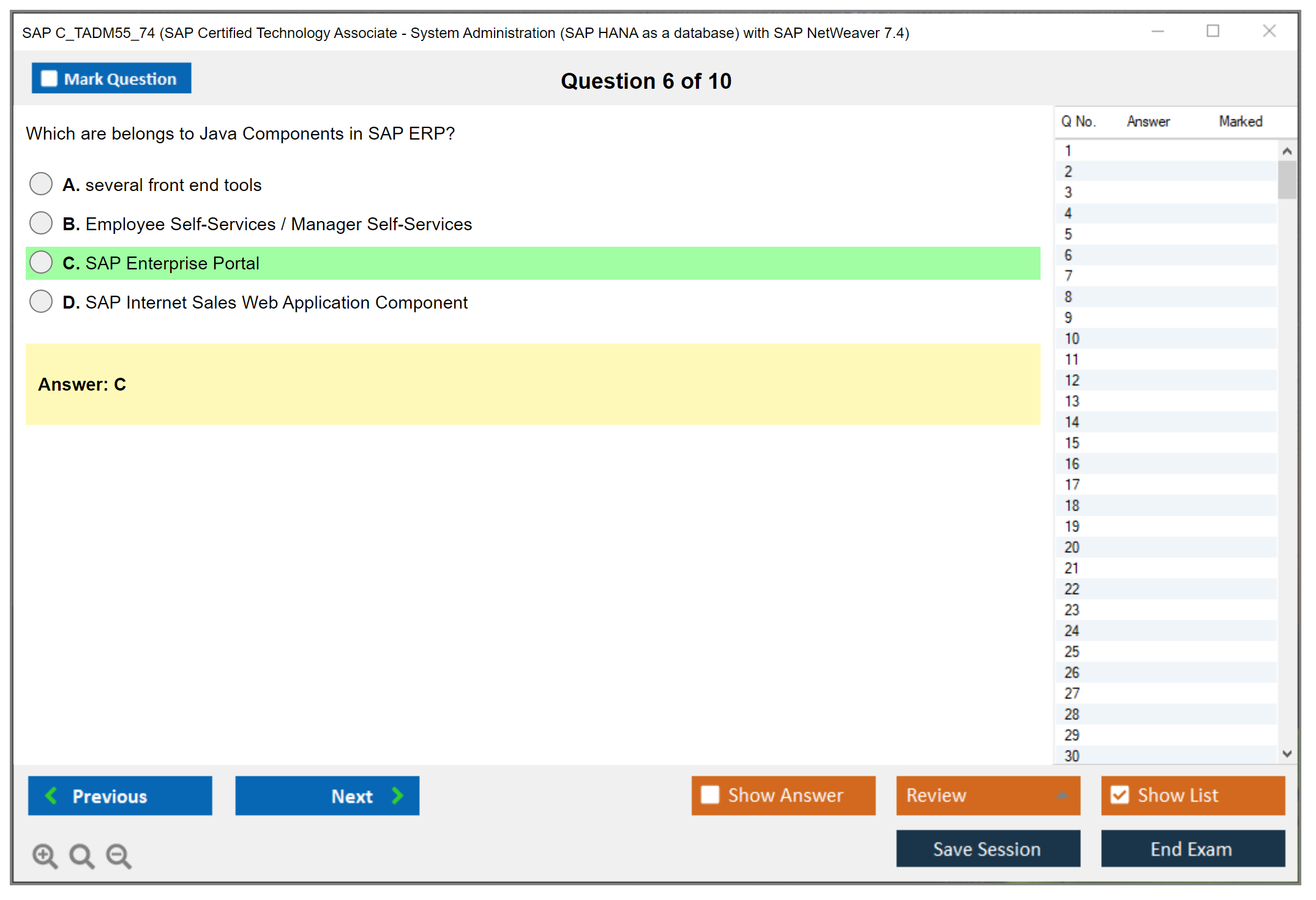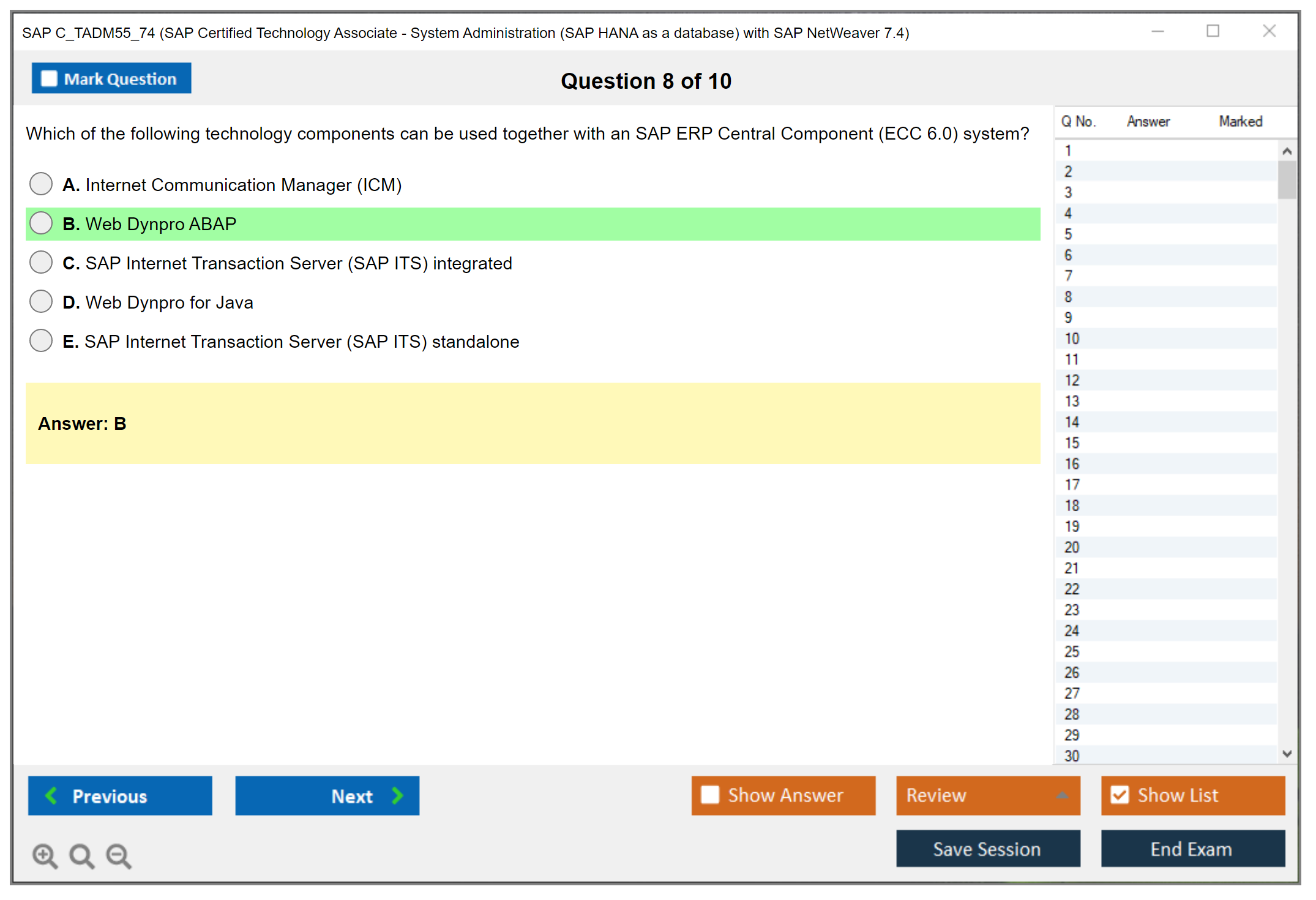 Note: SAP C_TADM55_74 (SAP Certified Technology Associate - System Administration (SAP HANA as a database) with SAP NetWeaver 7.4) will not receive any new updates.