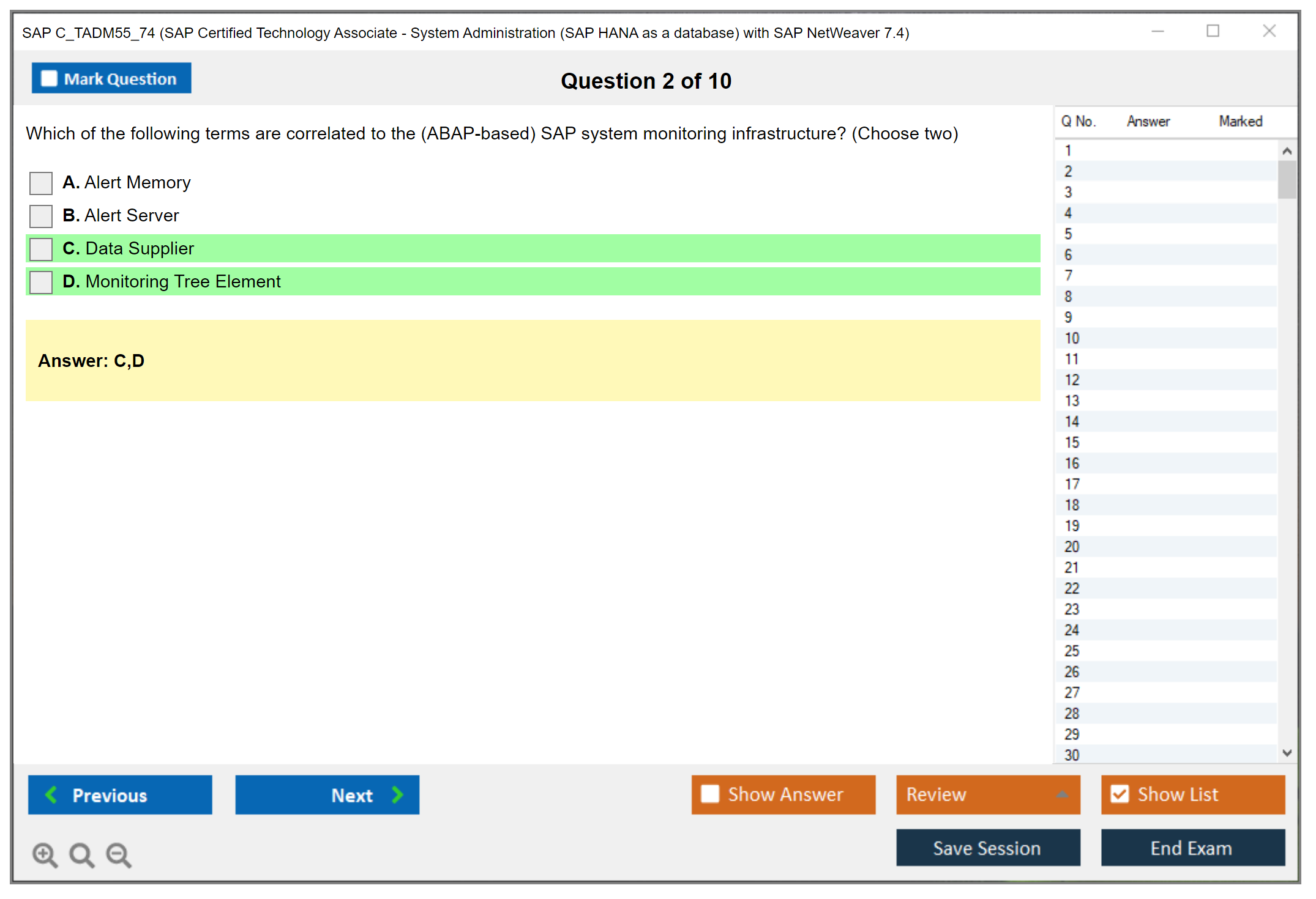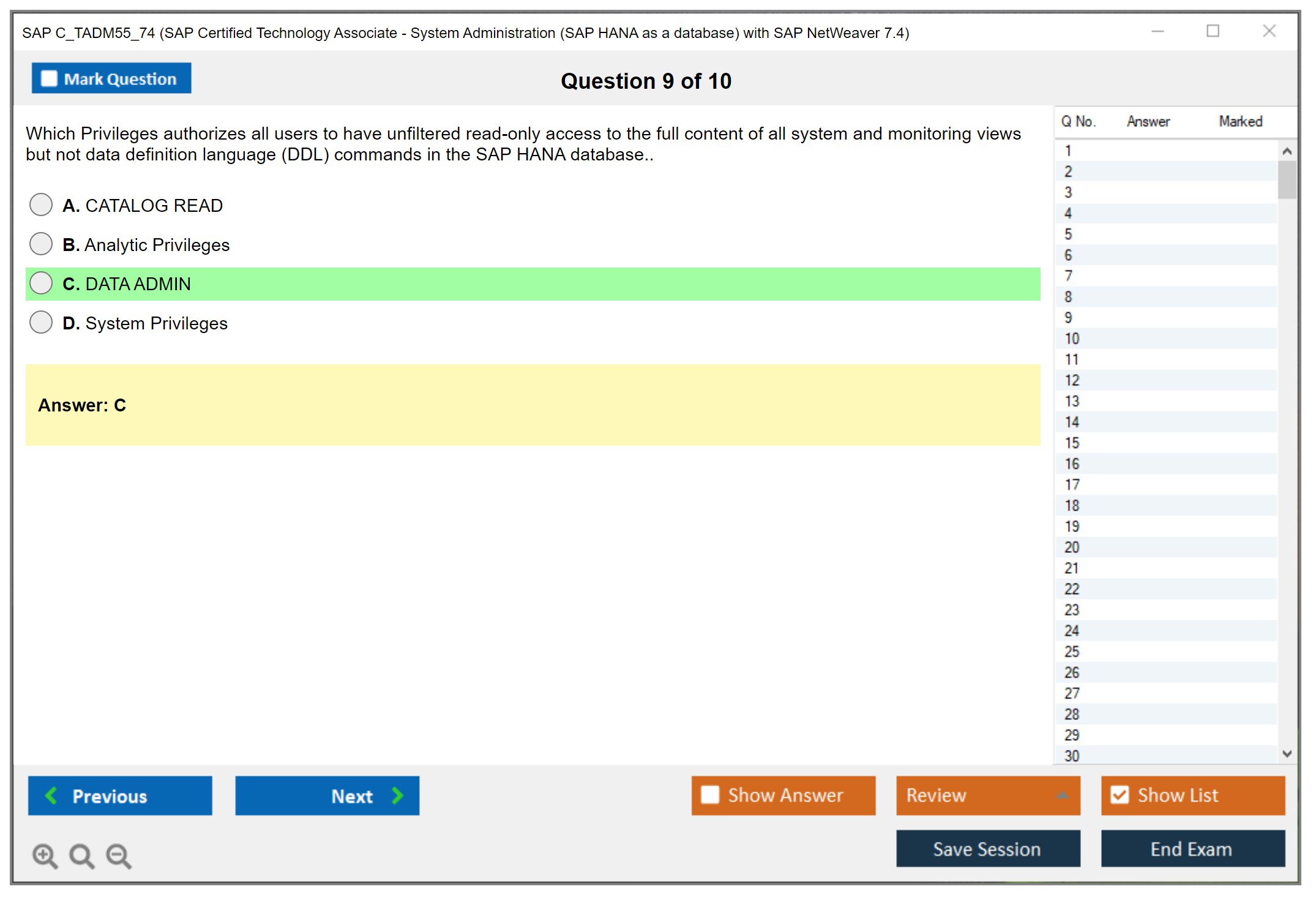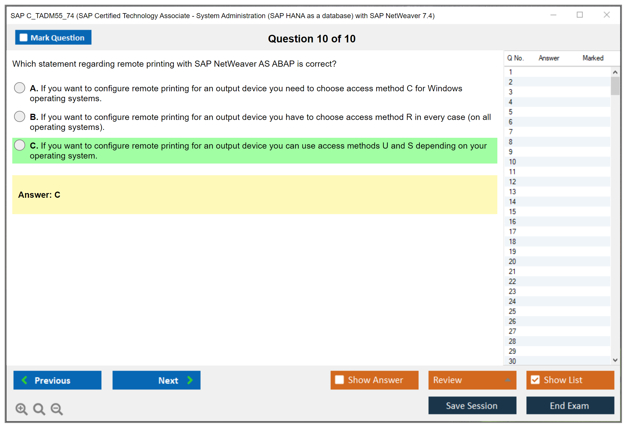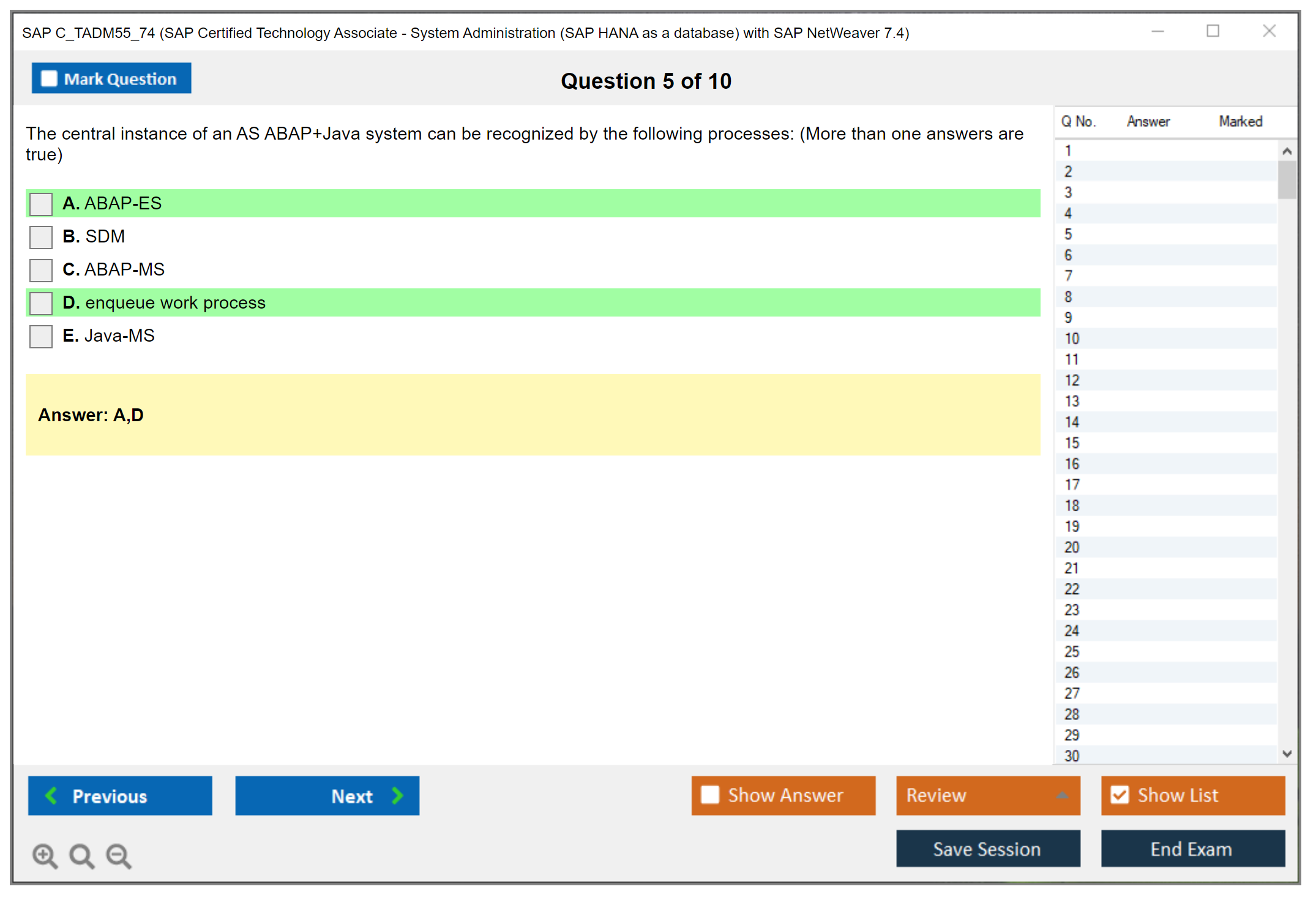Note: SAP C_TADM55_74 (SAP Certified Technology Associate - System Administration (SAP HANA as a database) with SAP NetWeaver 7.4) will not receive any new updates.
