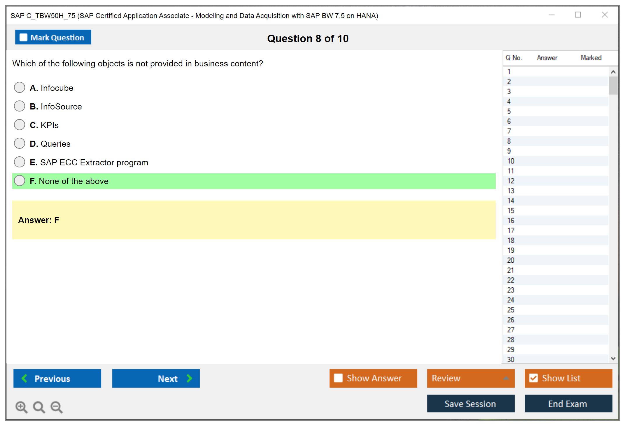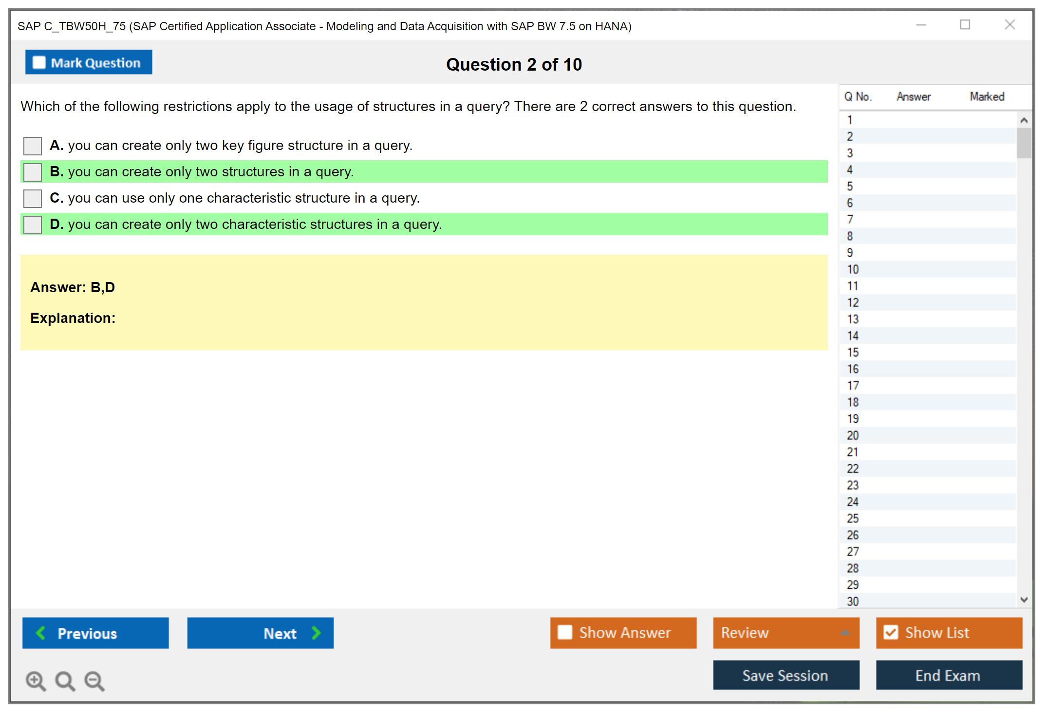 The SAP C_TBW50H_75 exam consists of 80 questions.