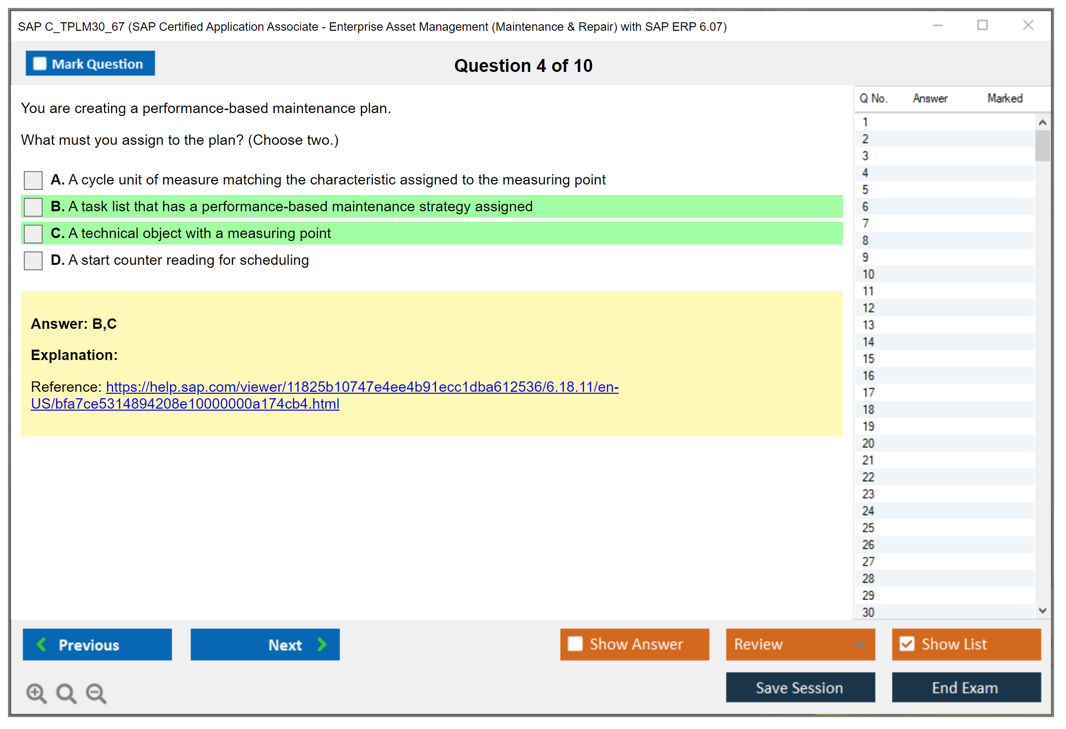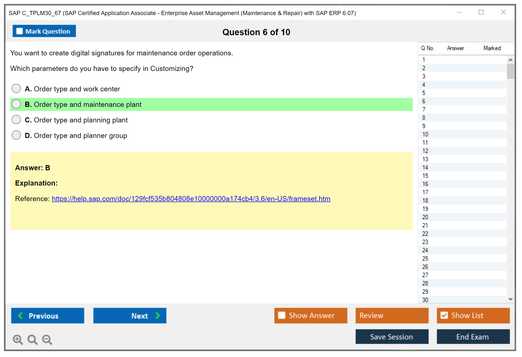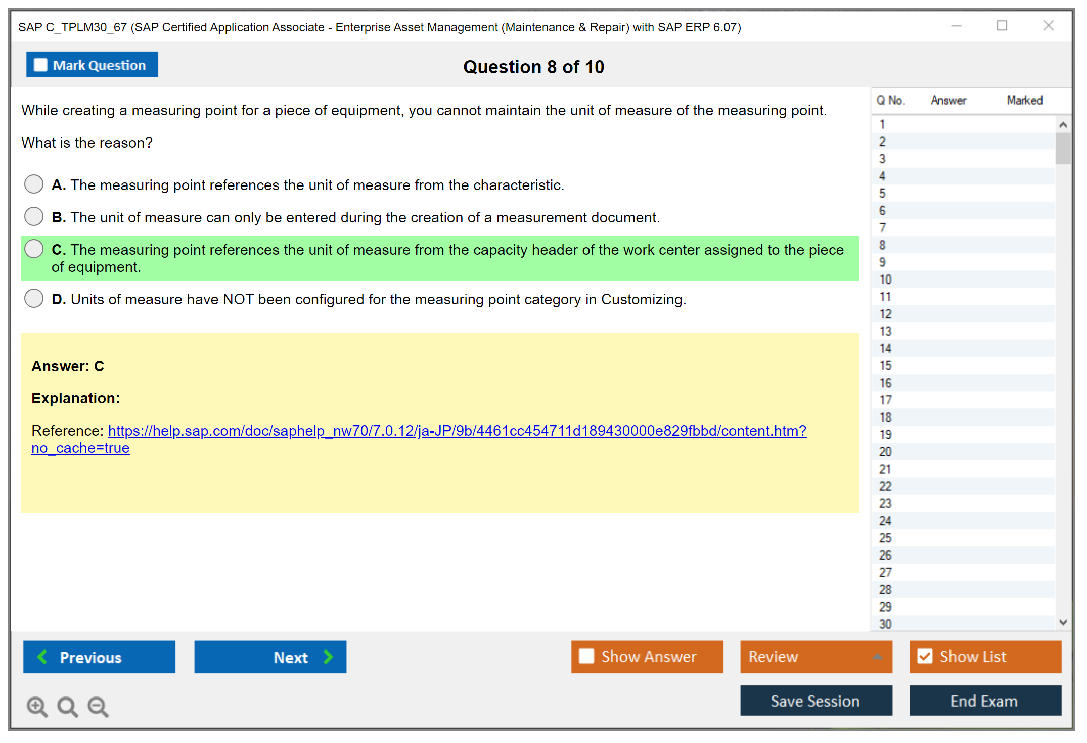 The SAP C_TPLM30_67 exam is an associate-level certification that focuses on SAP Maintenance & Repair with ERP 6.0 EHP7. It is intended for professionals who want to demonstrate their expertise in this specific SAP module, covering various aspects such as planning, execution, and completion of maintenance tasks.