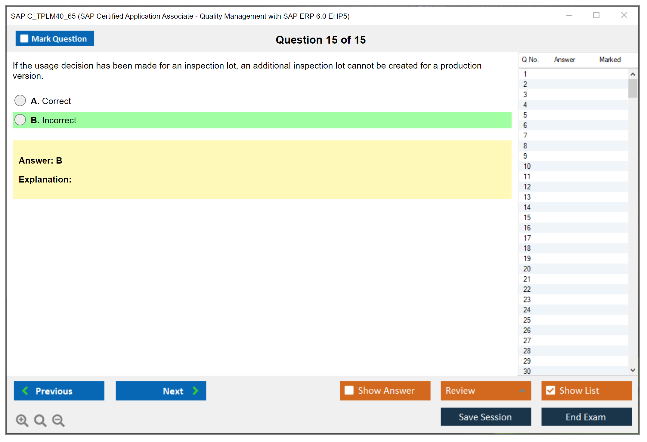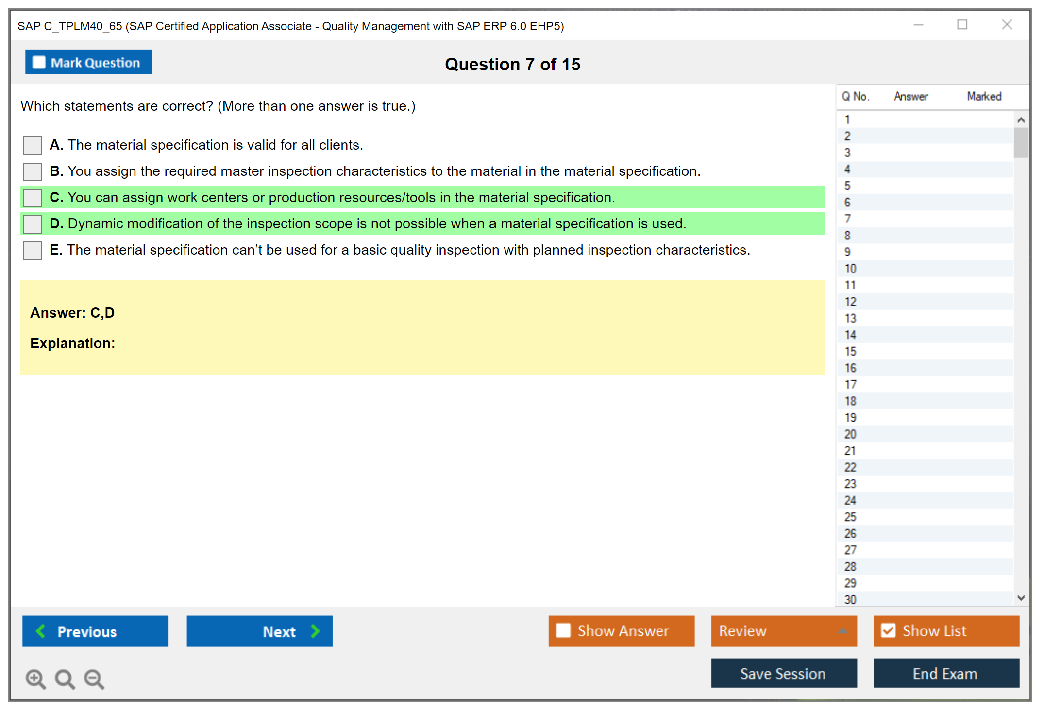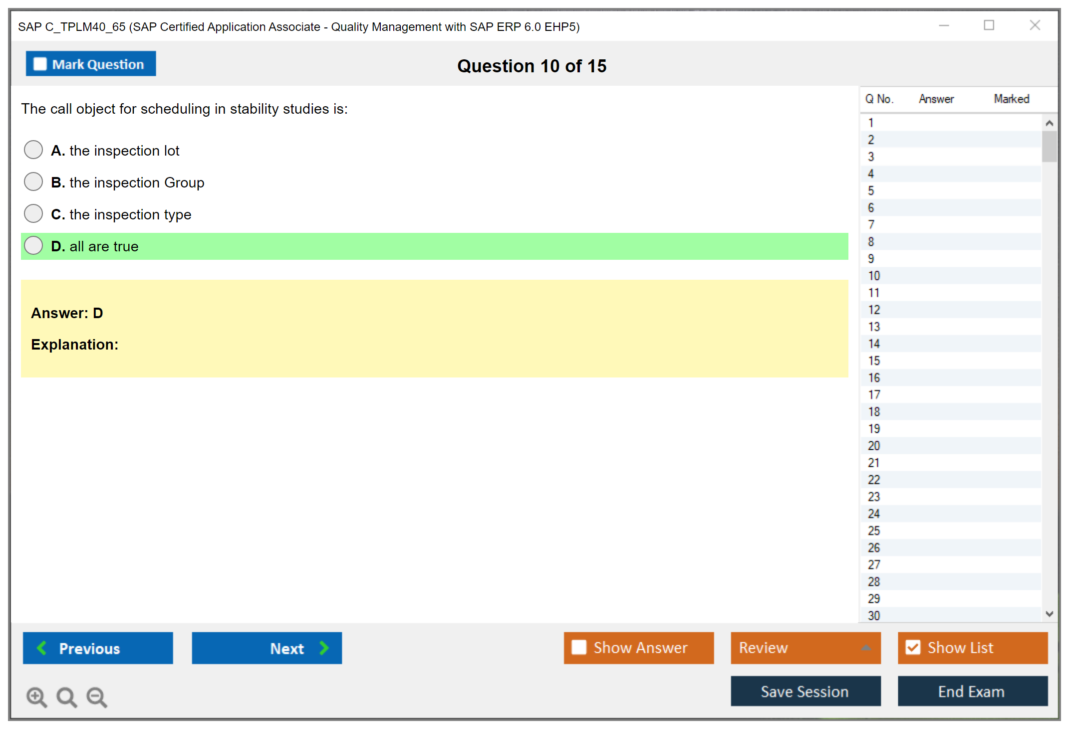 The SAP C_TPLM40_65 exam, also known as SAP Certified Associate - Quality Management with SAP ERP 6.0 EHP5, is a certification that assesses a candidate's knowledge and abilities in implementing and managing quality management processes in SAP ERP.