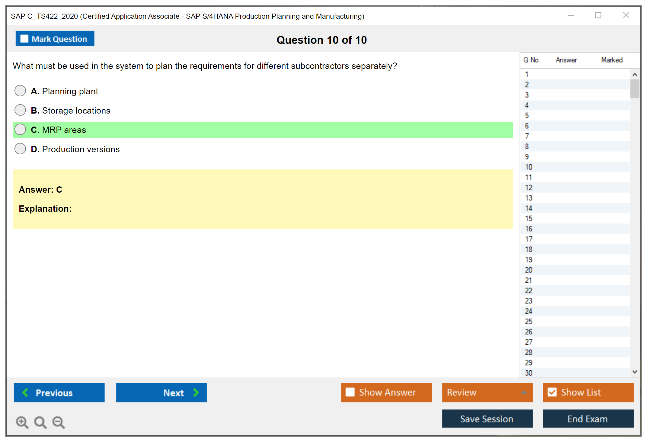 The SAP C_TS422_2020 exam is designed to validate the candidate's knowledge and skills in the area of SAP S/4HANA Production Planning and Manufacturing. It ensures that the candidate has a comprehensive understanding of the subject and can apply it effectively in real-world scenarios.