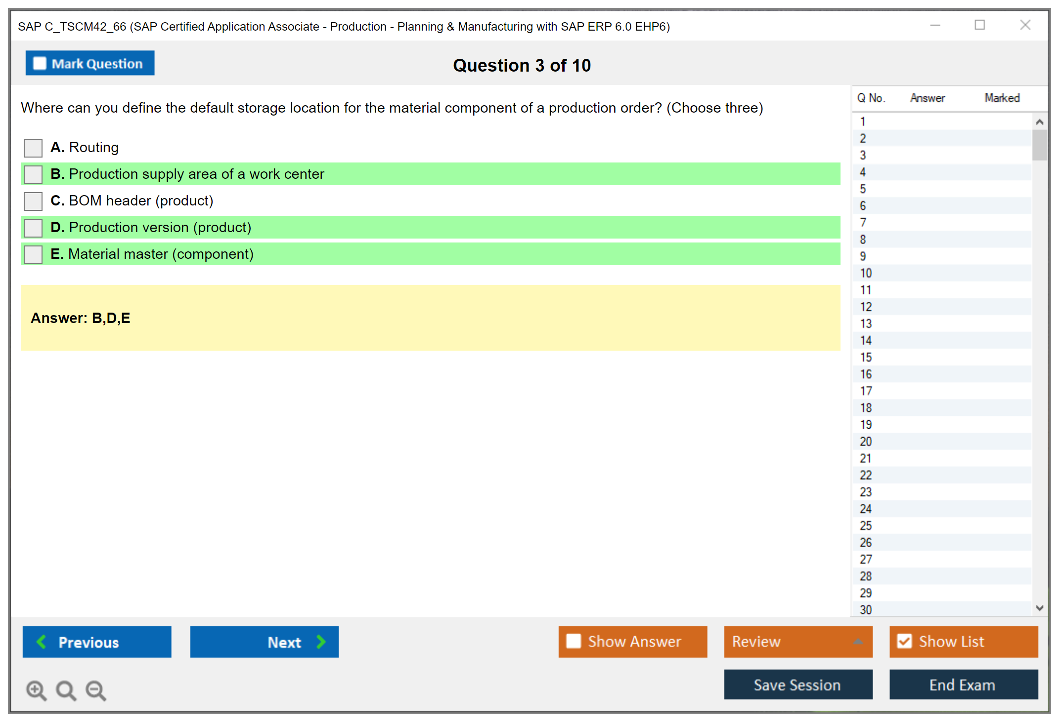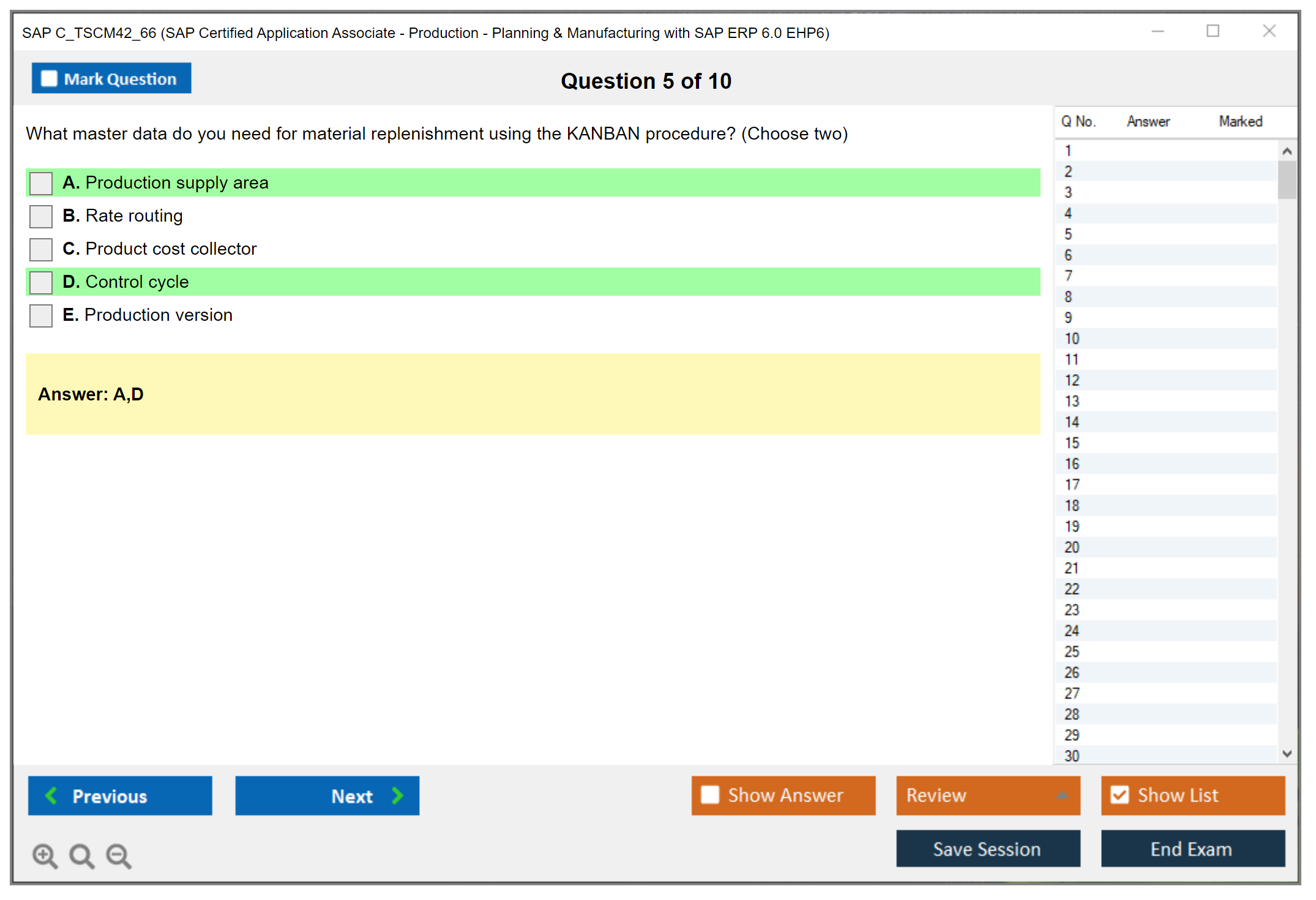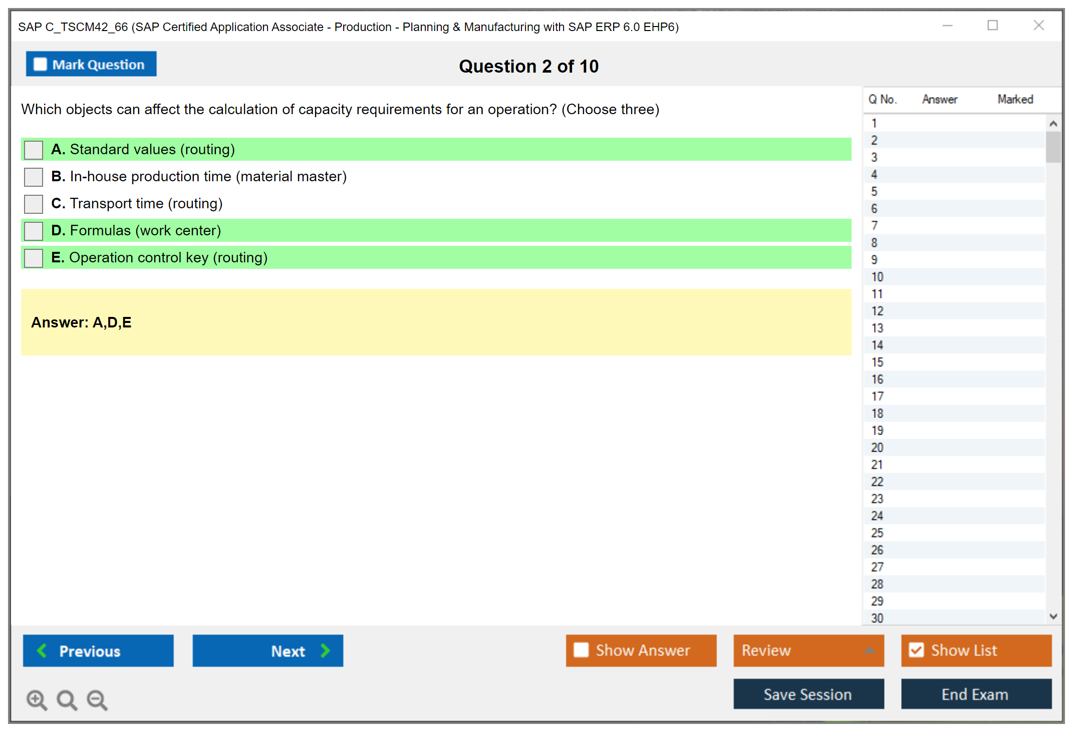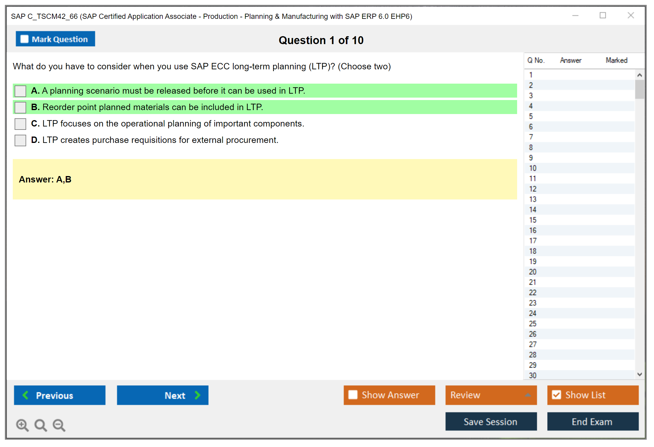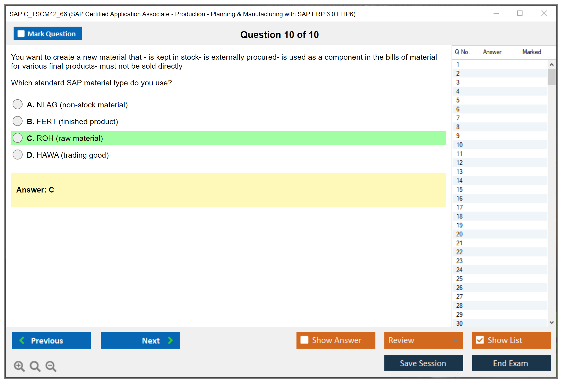 Note: SAP C_TSCM42_66 (SAP Certified Application Associate - Production - Planning & Manufacturing with SAP ERP 6.0 EHP6) will not receive any new updates.
