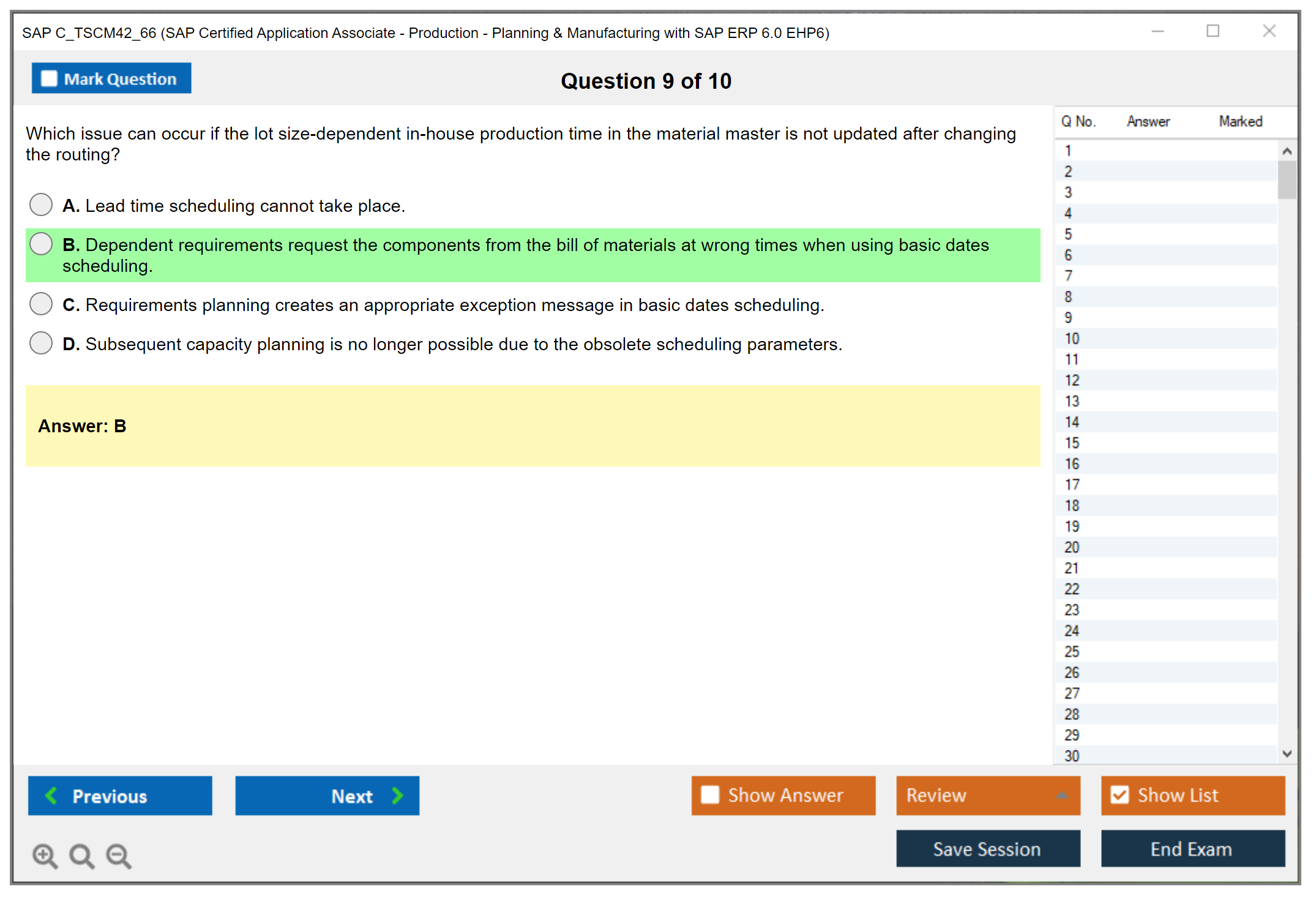 The SAP C_TSCM42_66 exam is designed for individuals who have the skills and knowledge to participate as a member of a project team in a mentored role. This certification exam verifies that the candidate has the knowledge required in the area of Production Planning & Manufacturing for the consultant profile.