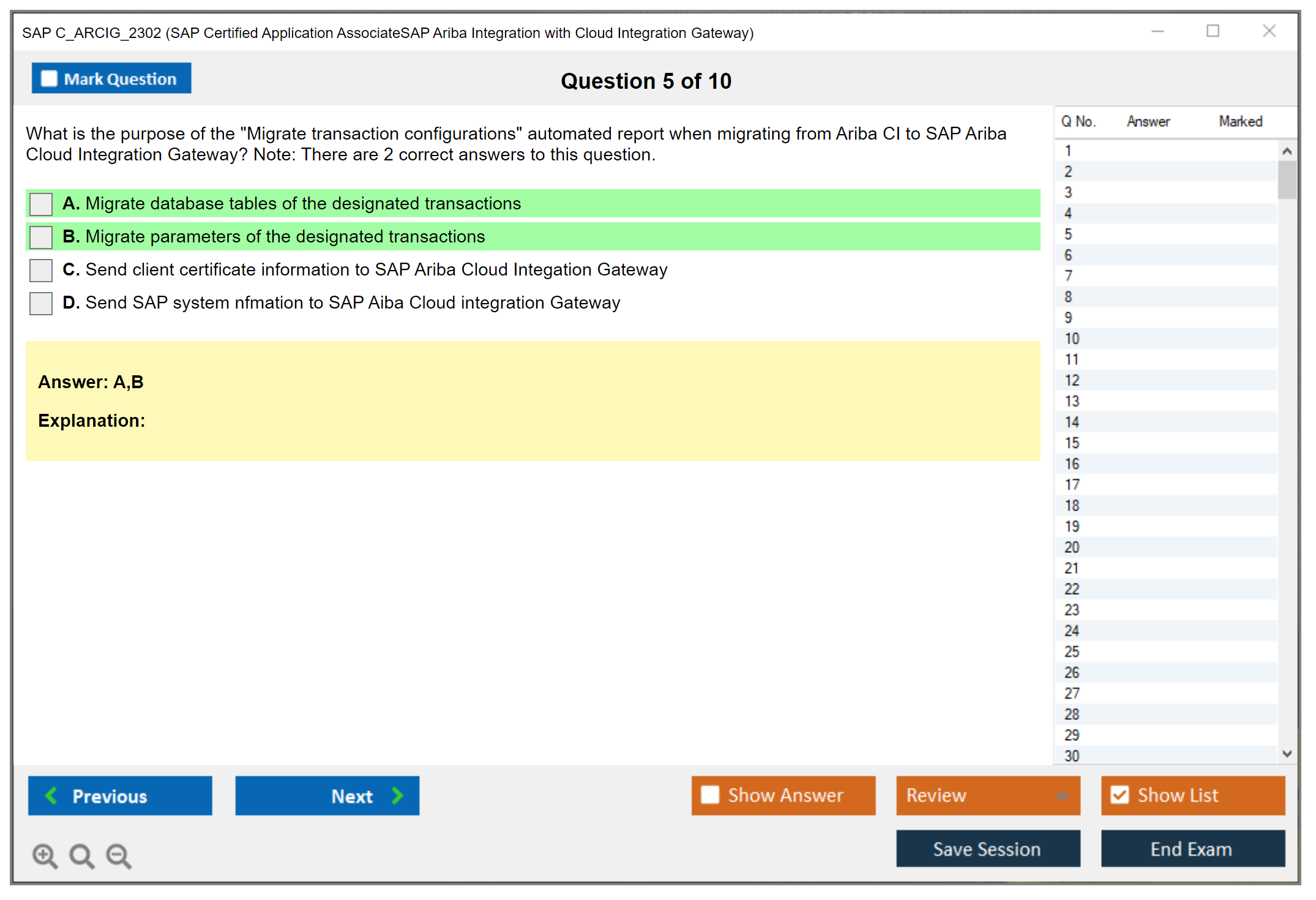 The SAP C_ARCIG_2302 exam is designed to test the candidate's knowledge and skills in integrating SAP Ariba solutions with other SAP solutions using the Cloud Integration Gateway. It covers various aspects such as configuration, implementation, and troubleshooting of the integration processes.