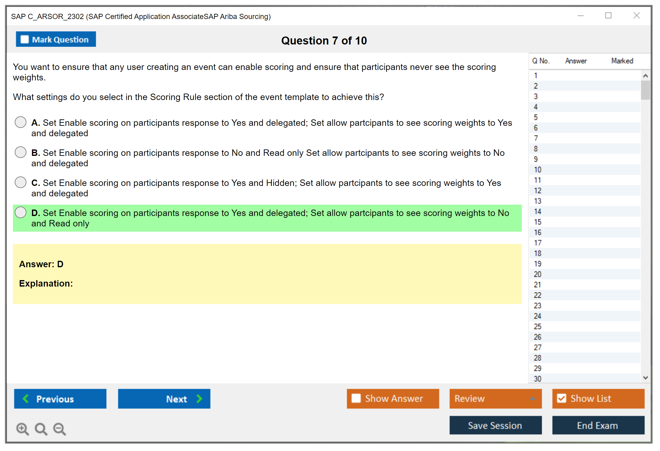 The SAP C_ARSOR_2302 exam is designed to test the knowledge and skills of candidates in the area of SAP Ariba Sourcing. It ensures that the candidate can contribute effectively to the implementation and management of SAP Ariba Sourcing solutions.