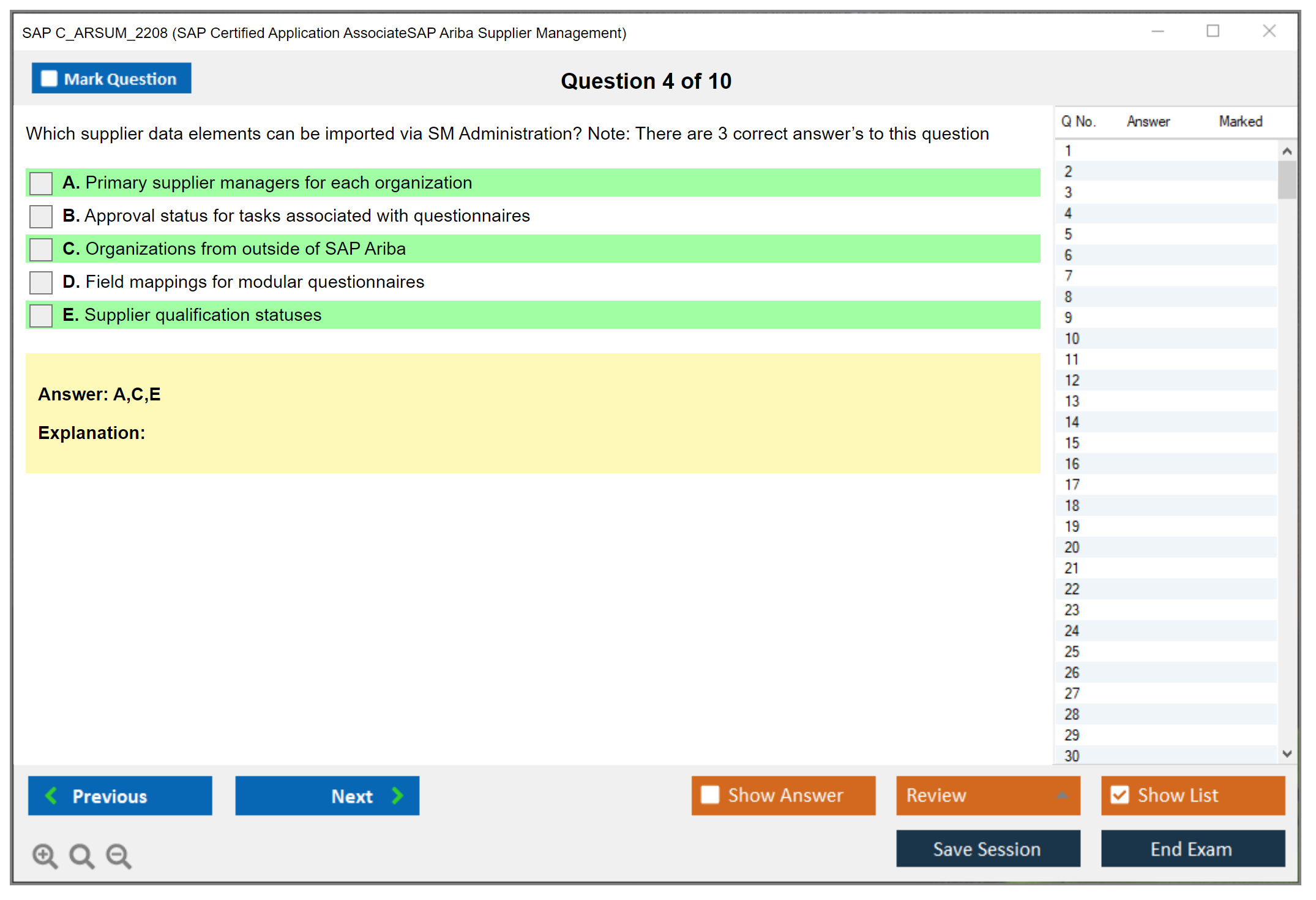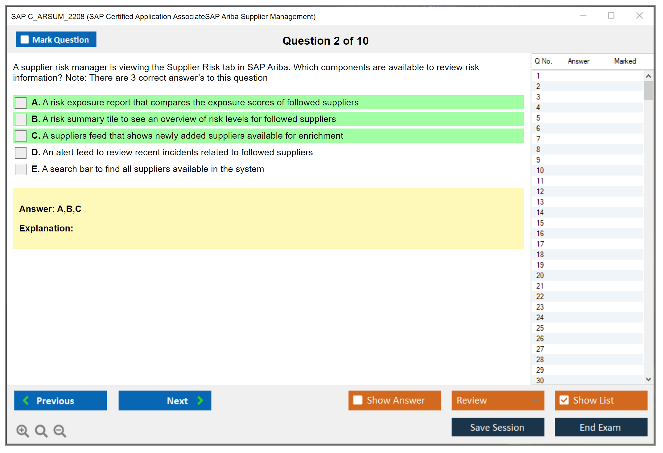 Note: SAP C_ARSUM_2208 (SAP Certified Application AssociateSAP Ariba Supplier Management) will not receive any new updates.