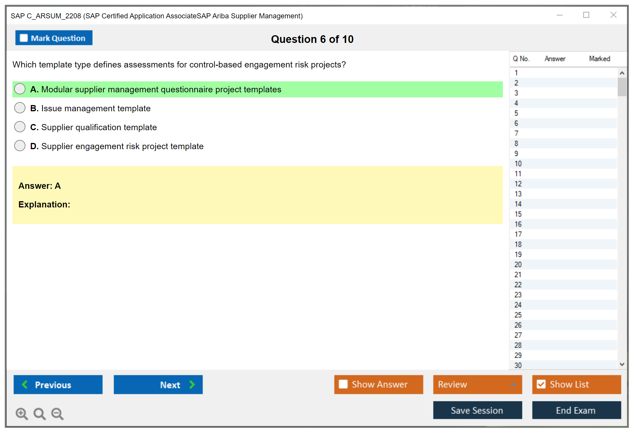 The SAP C_ARSUM_2208 exam is designed to assess the candidate's knowledge and skills in the area of SAP Ariba Supplier Management. It is intended for individuals who want to demonstrate their expertise in this specific SAP module and gain recognition for their skills.