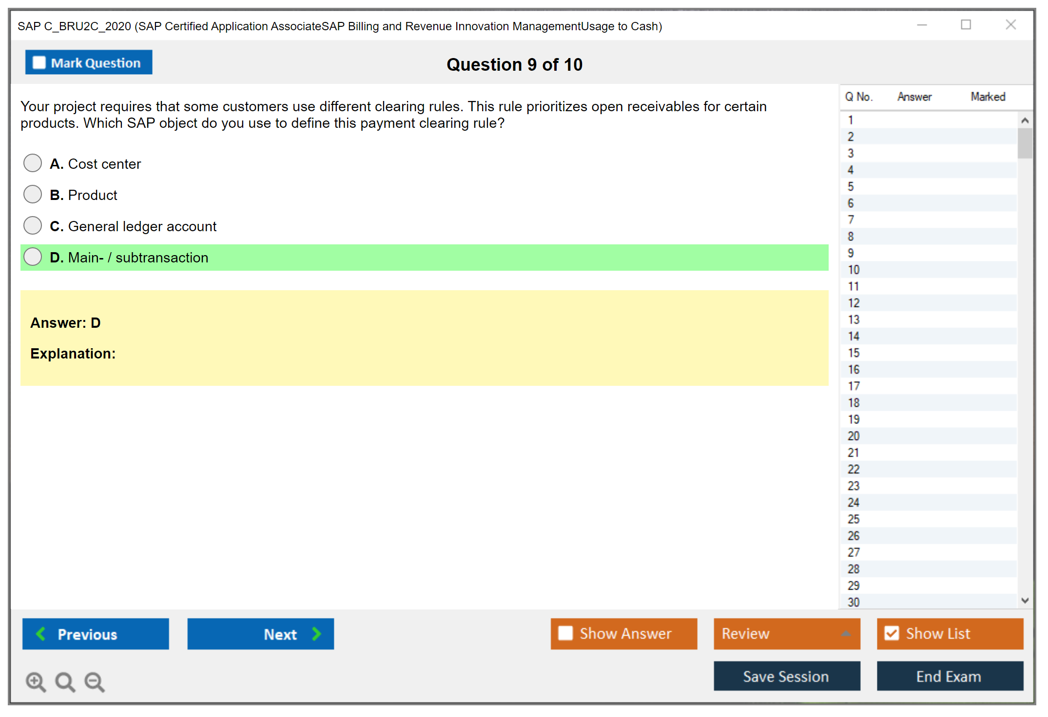 The SAP C_BRU2C_2020 exam is a certification exam for individuals seeking to demonstrate their expertise in SAP Billing and Revenue Innovation Management - Usage to Cash. It covers various aspects of the implementation, configuration, and management of SAP BRIM solutions.