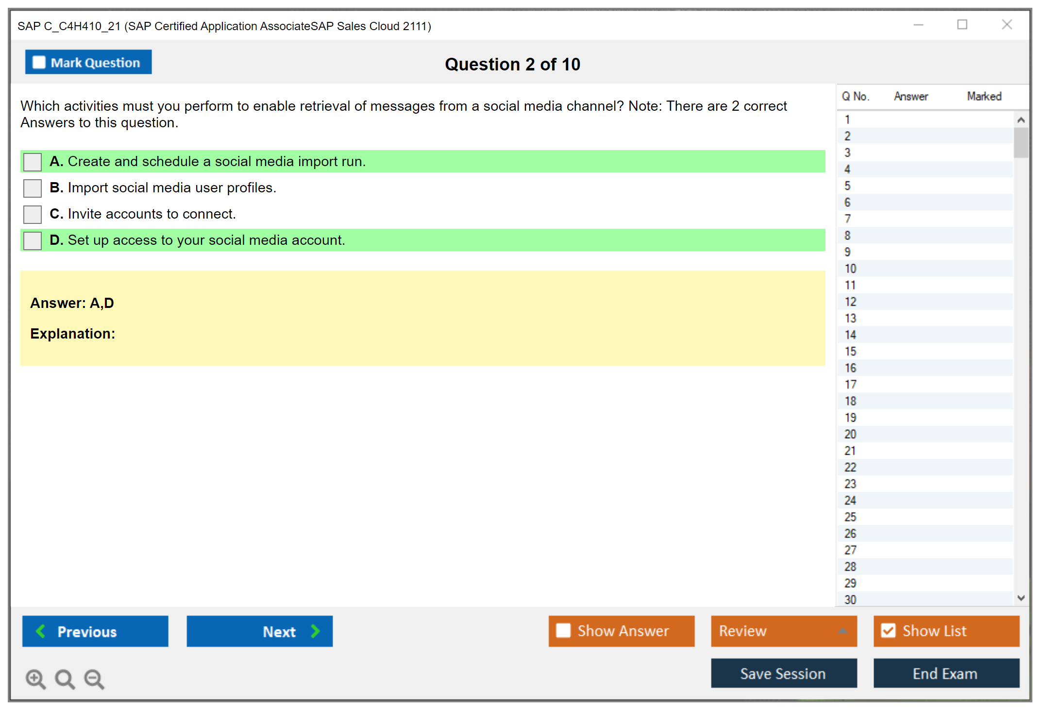 The question format of the SAP C_C4H410_21 exam includes multiple-choice and multiple-response questions.