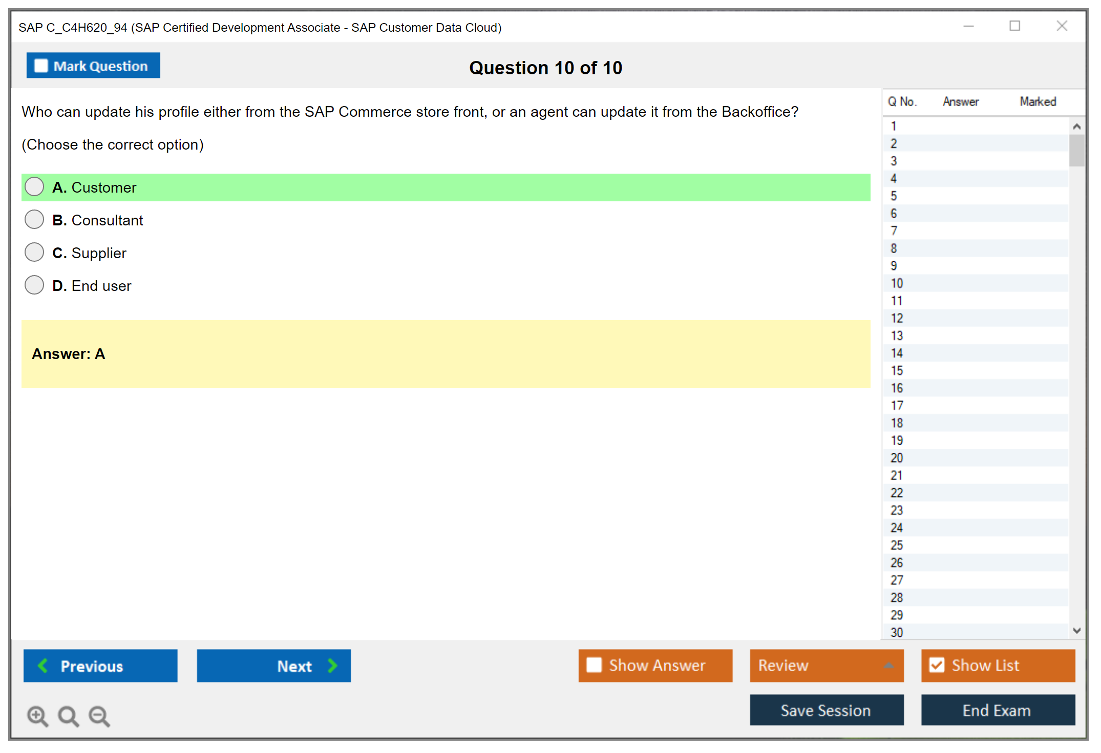 Note: SAP C_C4H620_94 (SAP Certified Development Associate - SAP Customer Data Cloud) will not receive any new updates.