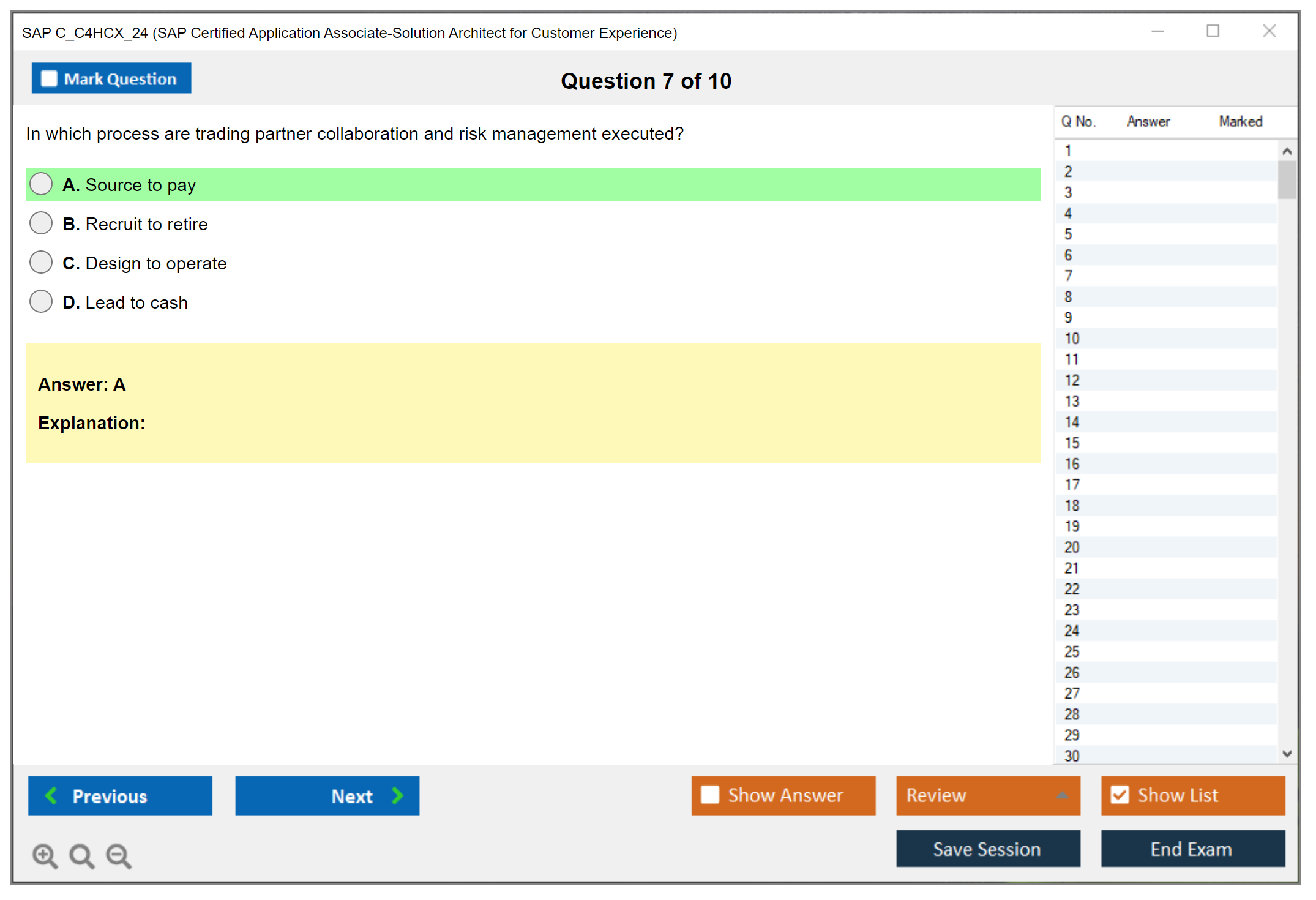 The SAP C_C4HCX_24 exam is a certification test that assesses a candidate's expertise in SAP Customer Experience solutions. It is intended for solution architects who are responsible for designing and implementing SAP CX solutions, ensuring they meet business needs and integrate seamlessly with other SAP systems.
