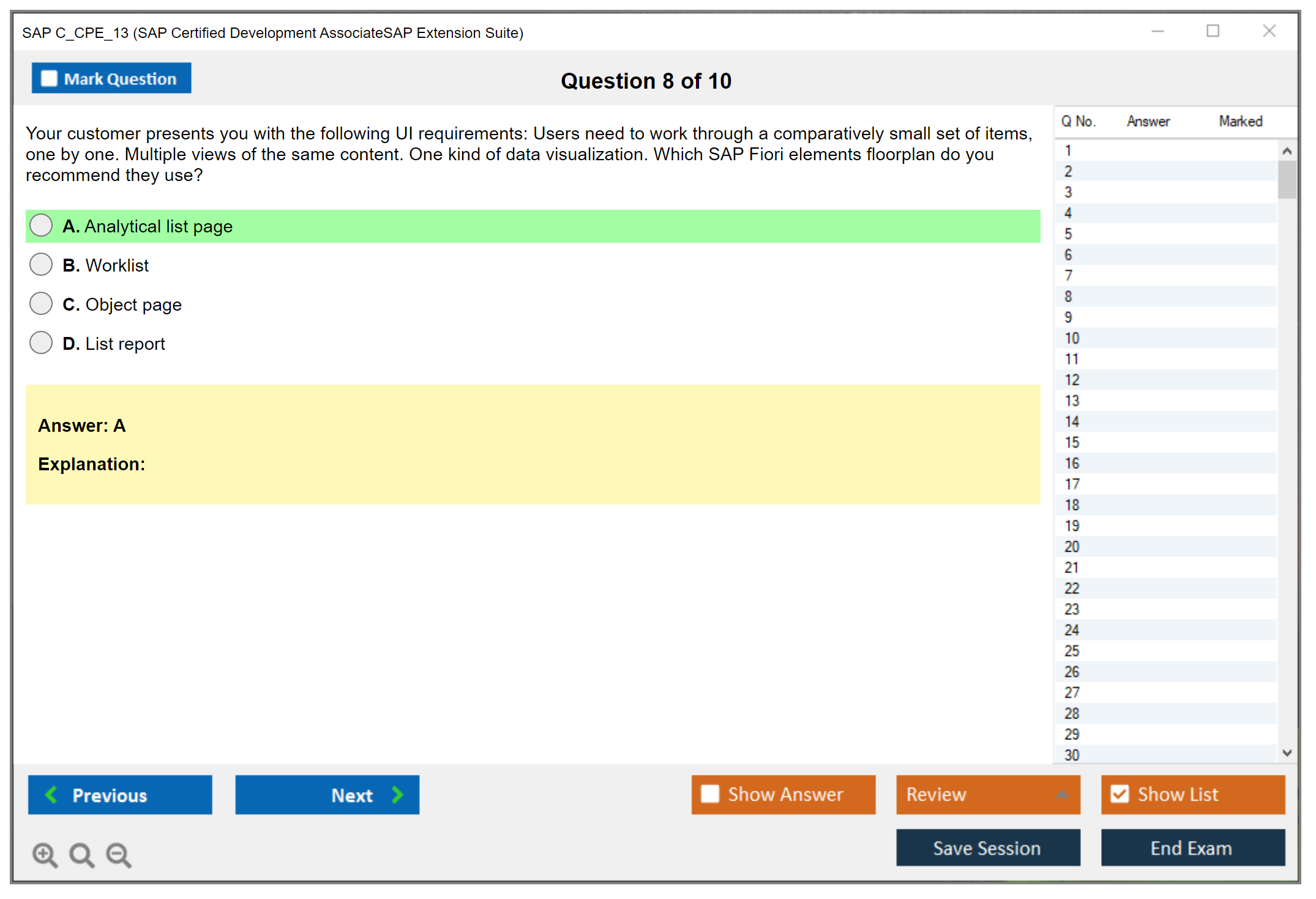The SAP C_CPE_13 (SAP Certified Development Associate - SAP Extension Suite) exam is designed to validate the candidate's knowledge and skills in the area of SAP Extension Suite. This certification proves that the candidate has a fundamental understanding and in-depth technical skills to participate as a member of a project team in a mentored role.
