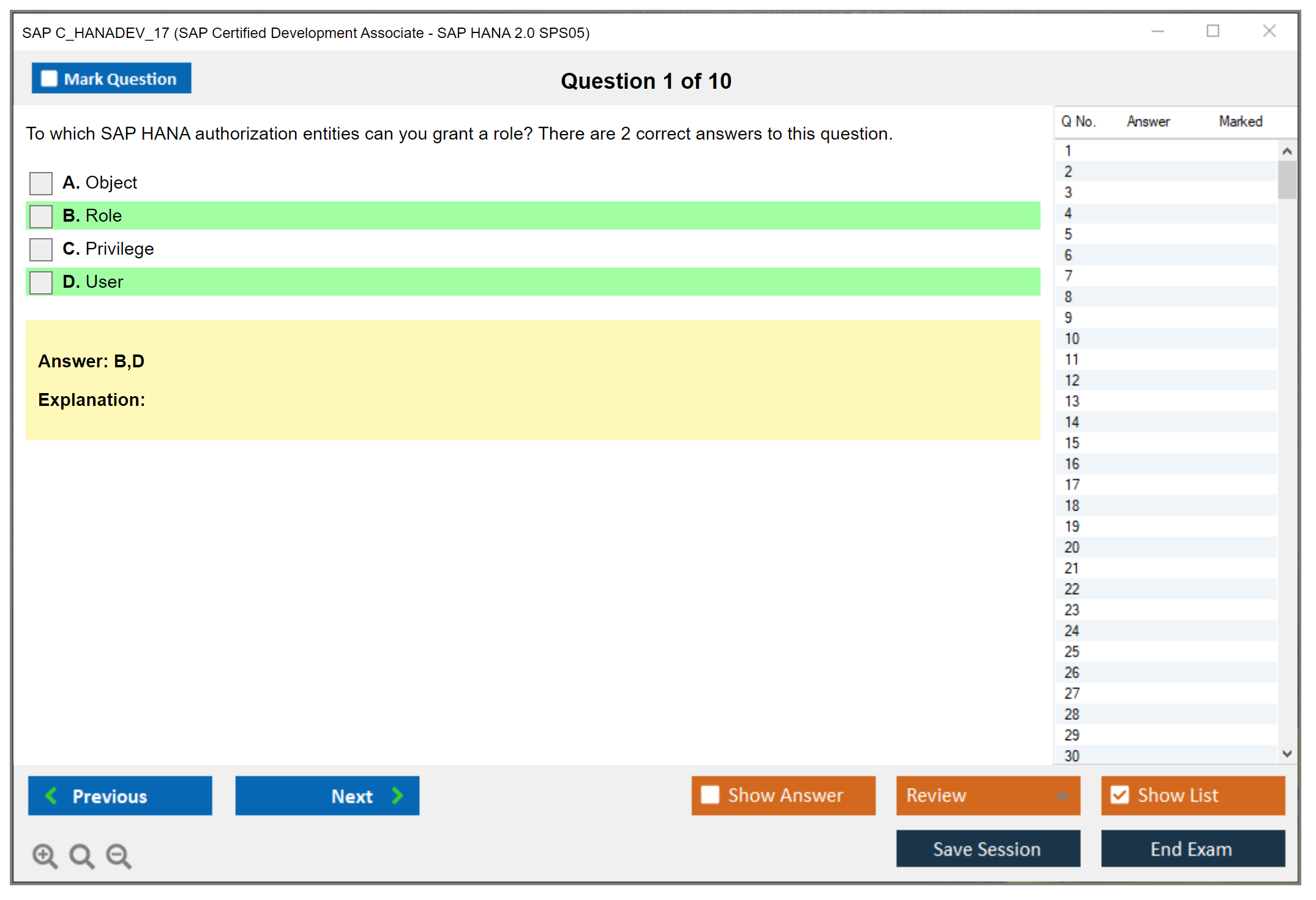 What are the Sample Questions of SAP C_HANADEV_17 Exam?