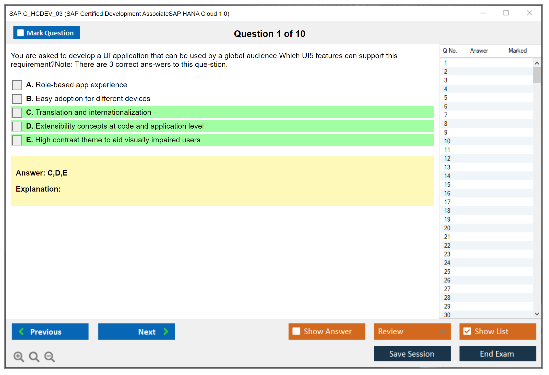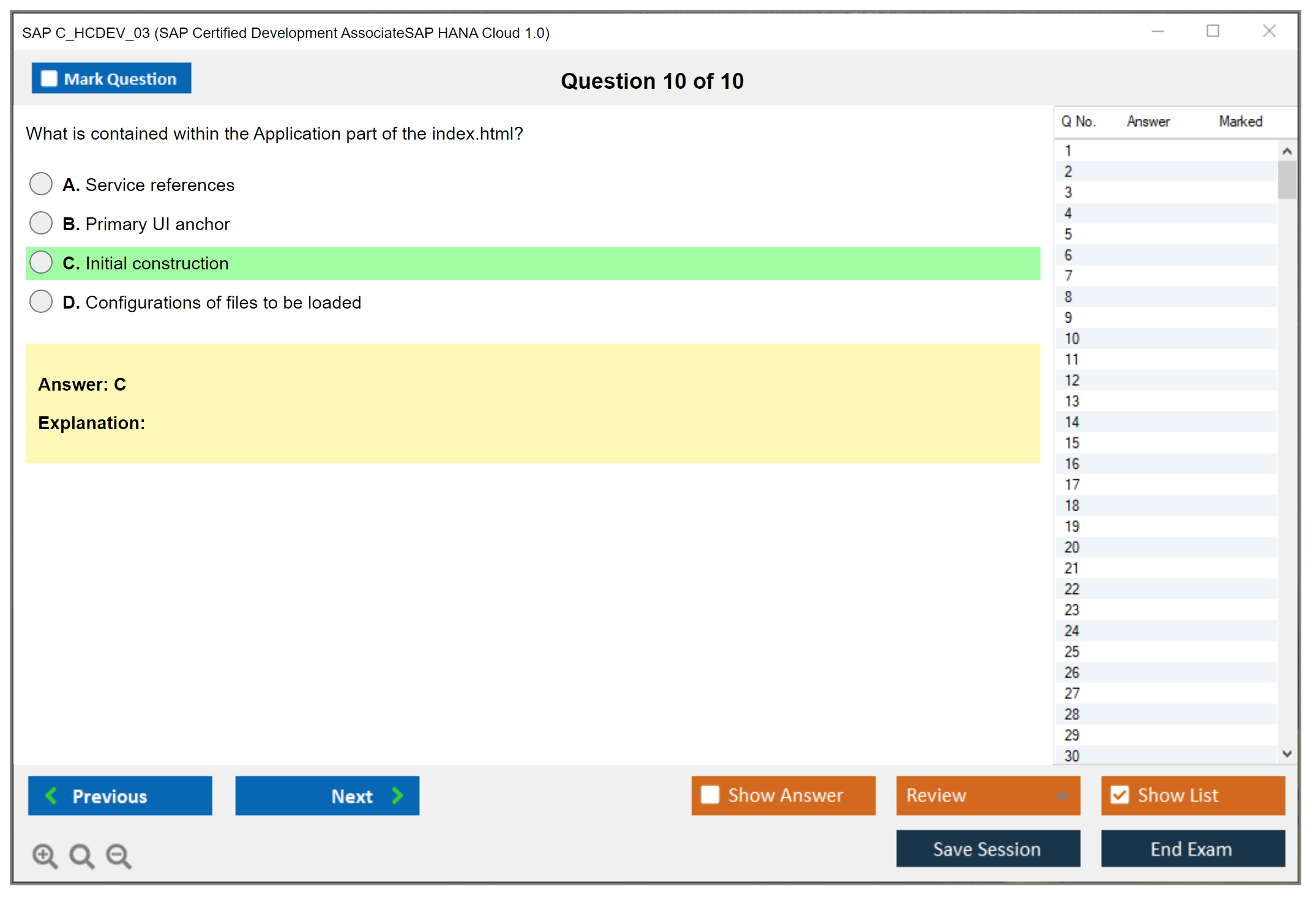 The SAP C_HCDEV_03 (SAP Certified Development Associate - SAP HANA Cloud 1.0) exam validates that the candidate possesses the fundamental and core knowledge required for the SAP HANA Cloud profile. This certification proves that the candidate has an overall understanding and in-depth technical skills to participate as a member of an SAP HANA Cloud project team.
