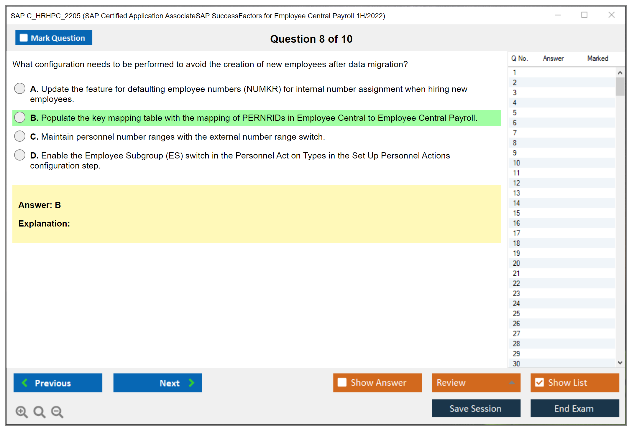 Note: SAP C_HRHPC_2205 (SAP Certified Application AssociateSAP SuccessFactors for Employee Central Payroll 1H/2022) will not receive any new updates.