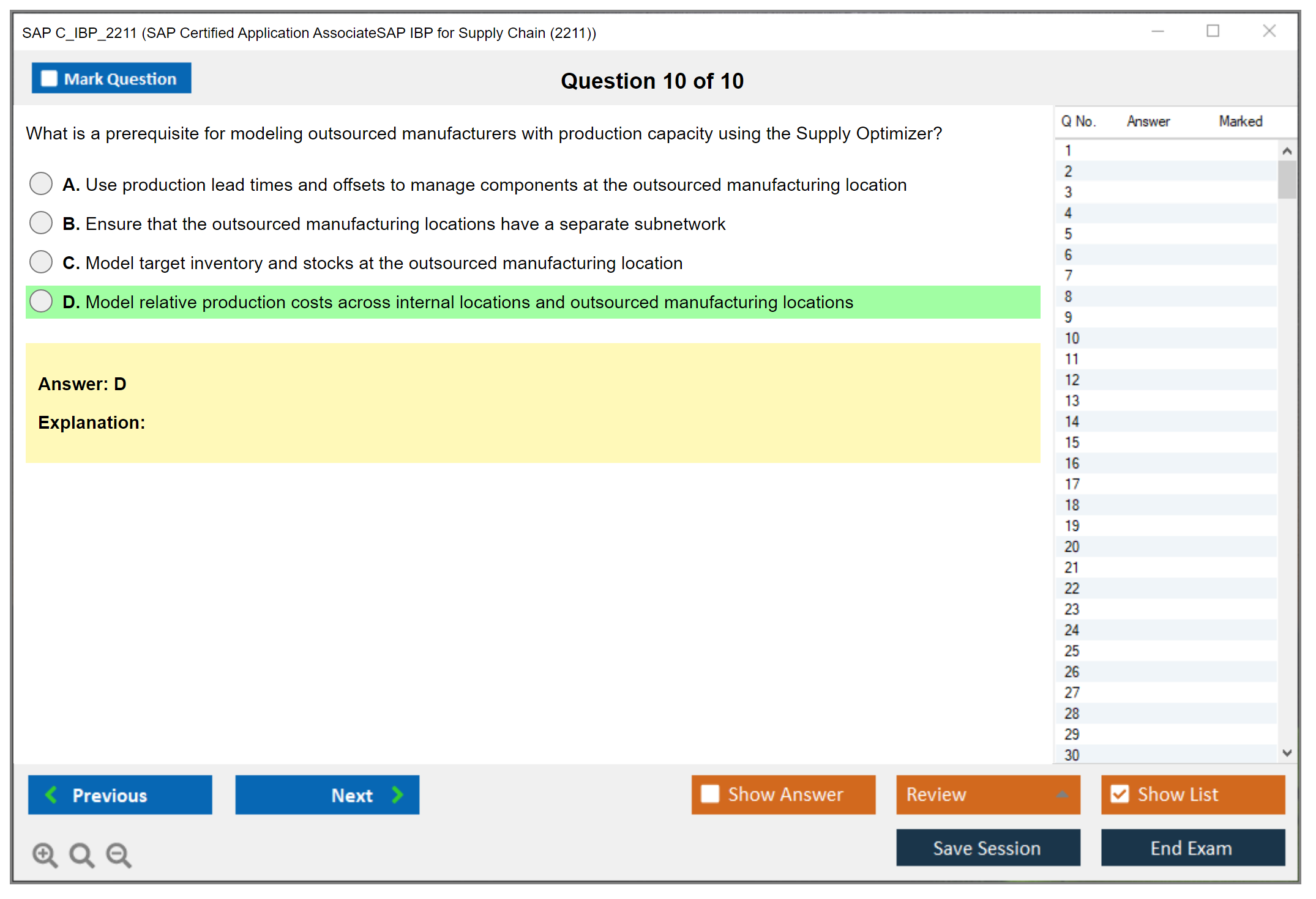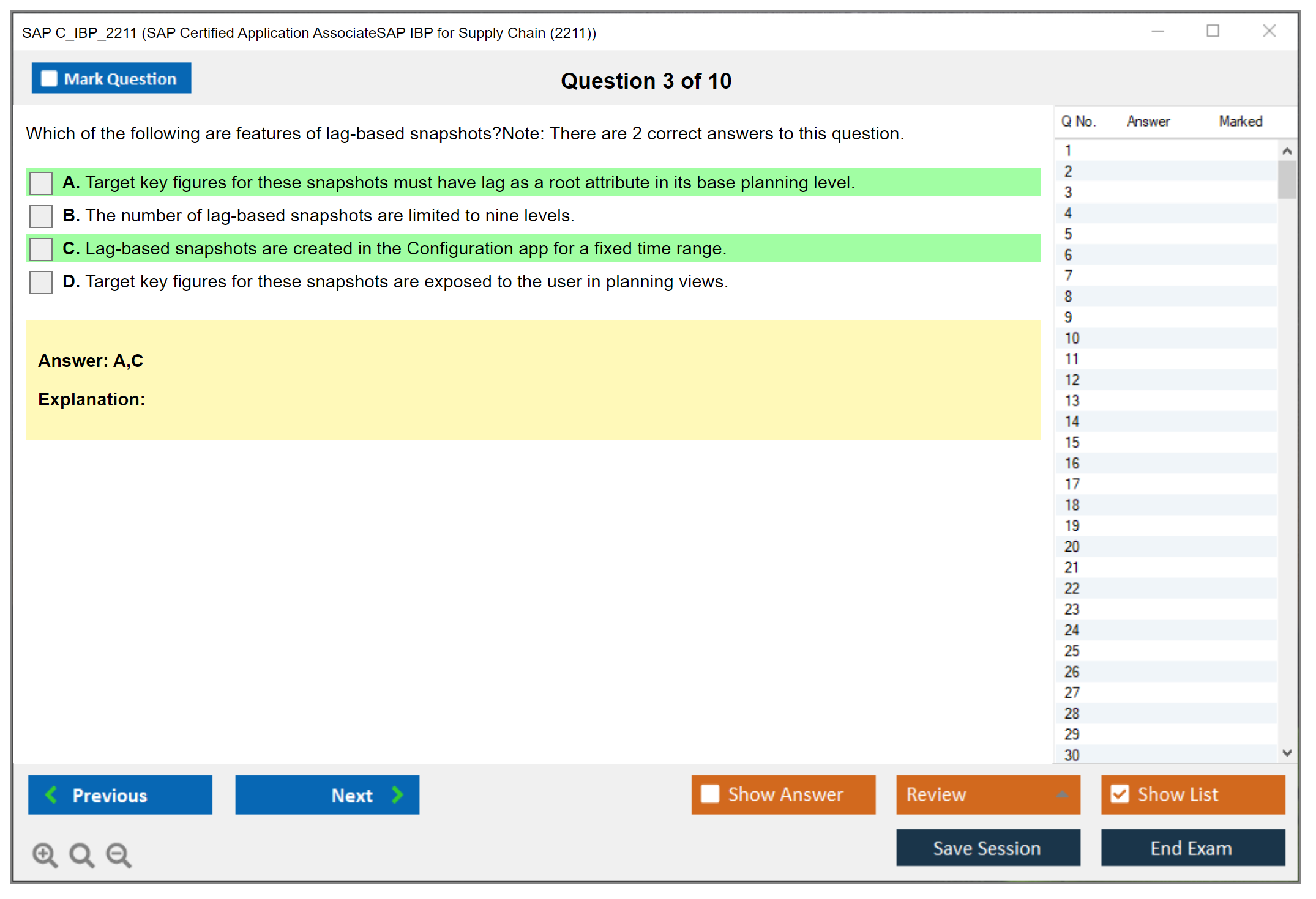 Note: SAP C_IBP_2211 (SAP Certified Application AssociateSAP IBP for Supply Chain (2211)) will not receive any new updates.