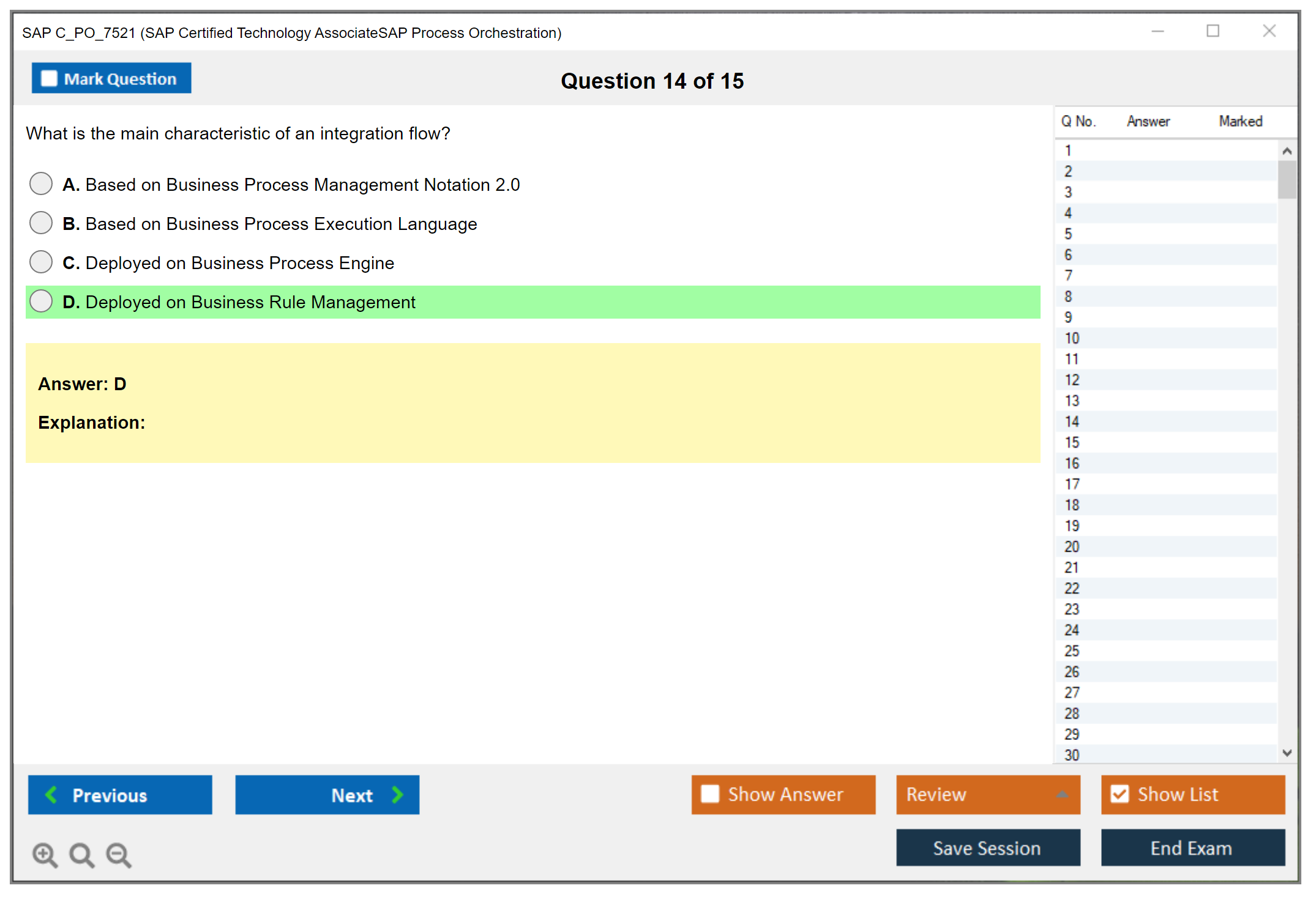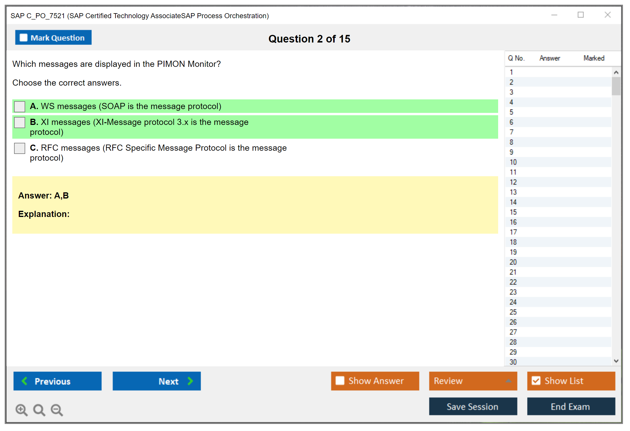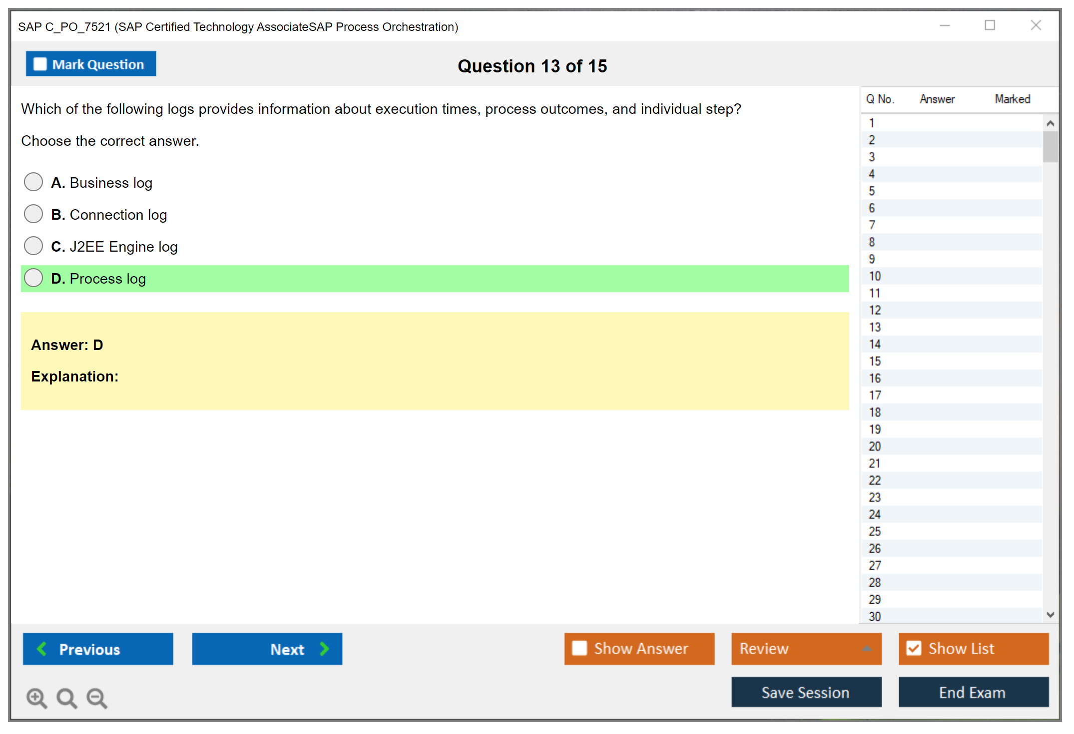 The SAP C_PO_7521 exam covers topics such as SAP PO architecture, configuration, integration processes, monitoring, and troubleshooting.