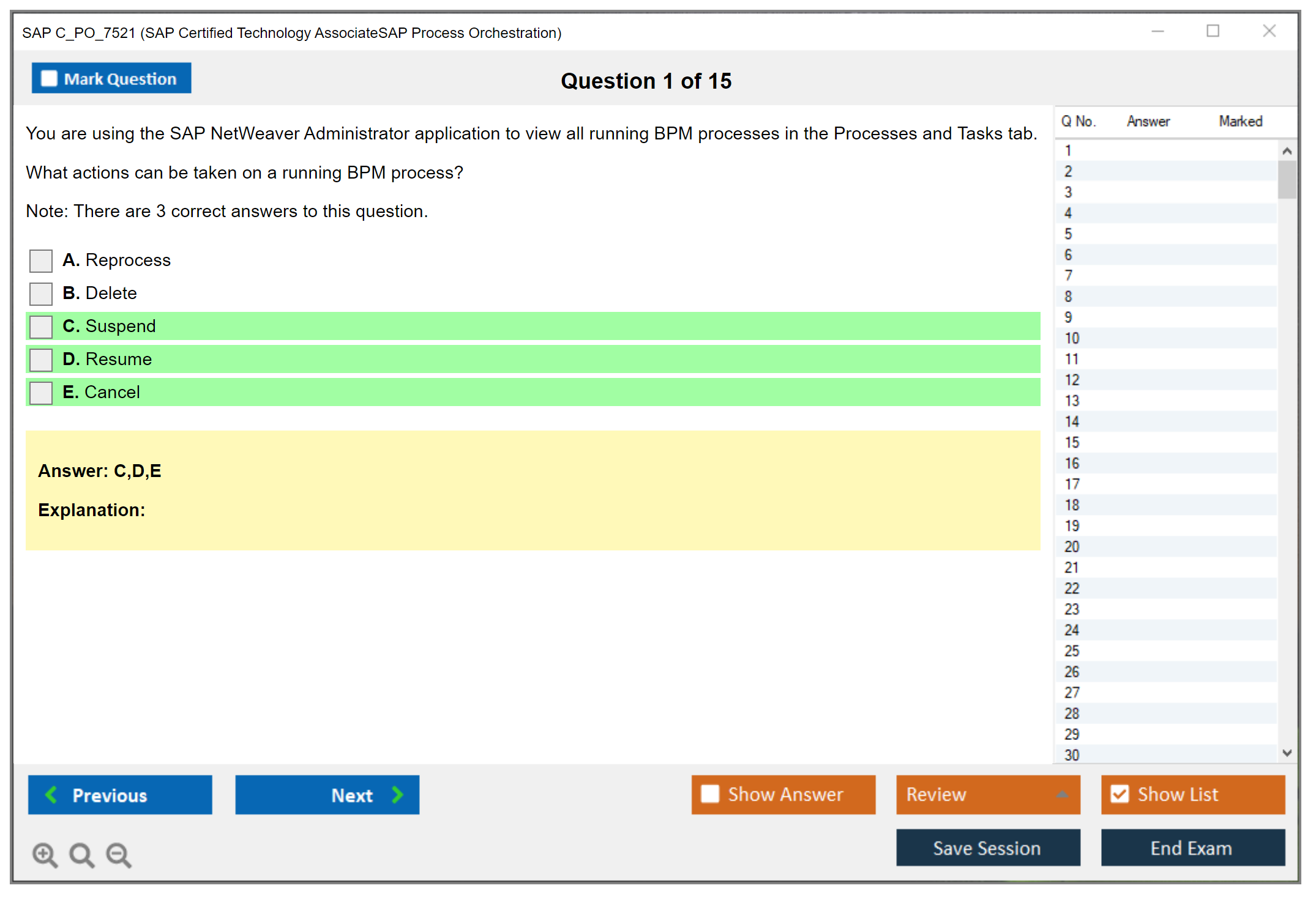 The SAP C_PO_7521 exam is a certification test for individuals seeking to demonstrate their expertise in SAP Process Orchestration. It assesses the candidate's ability to implement and manage SAP PO solutions effectively.