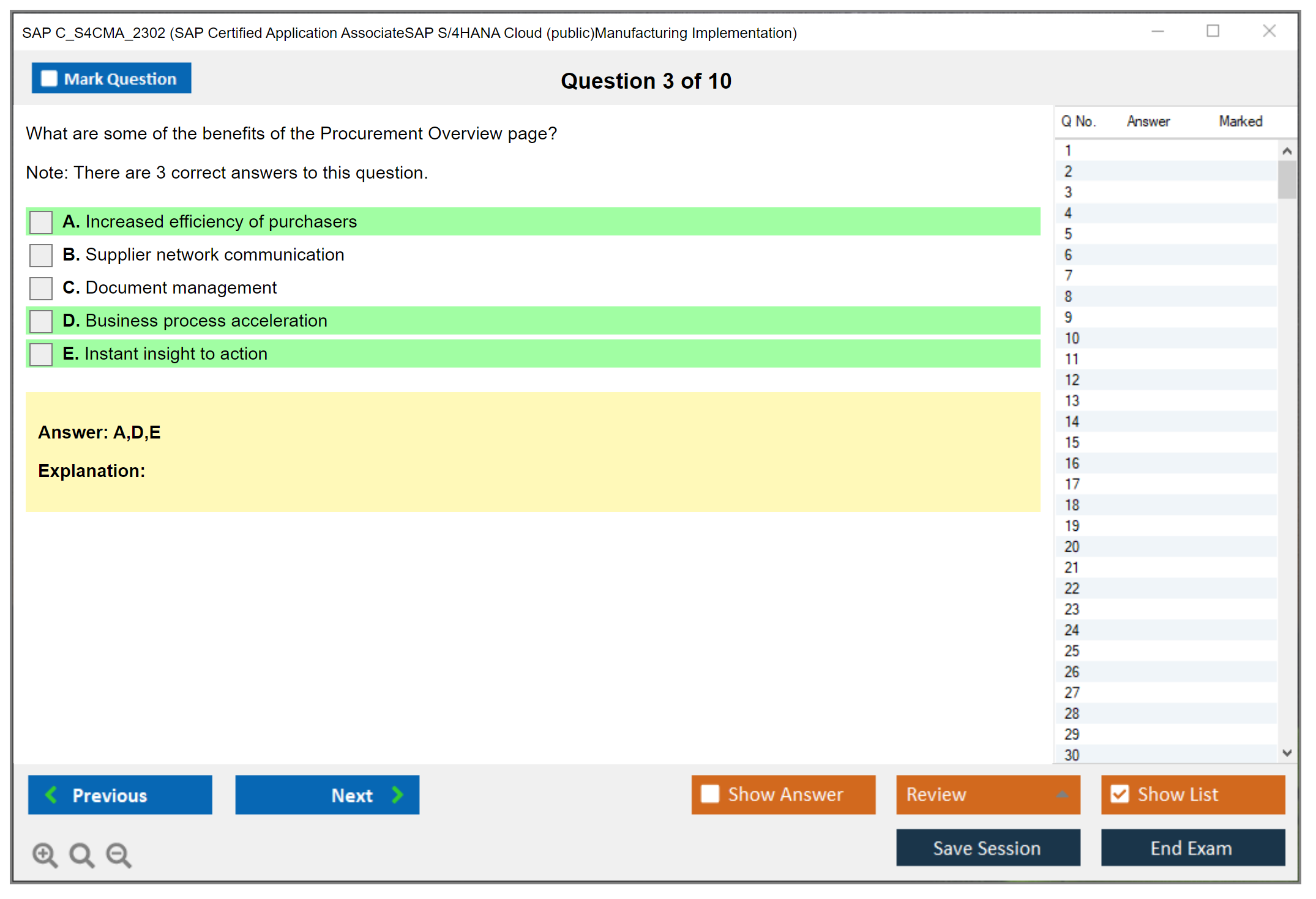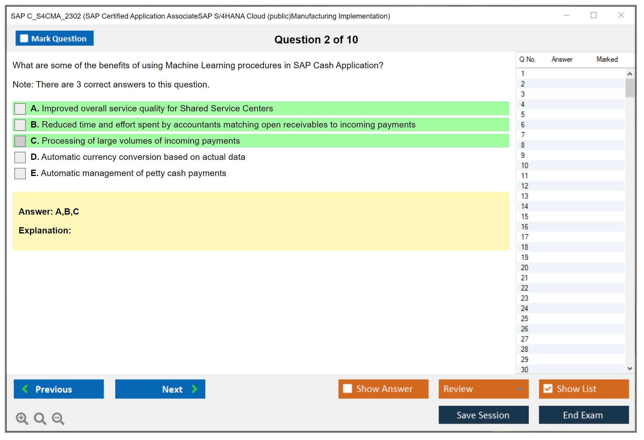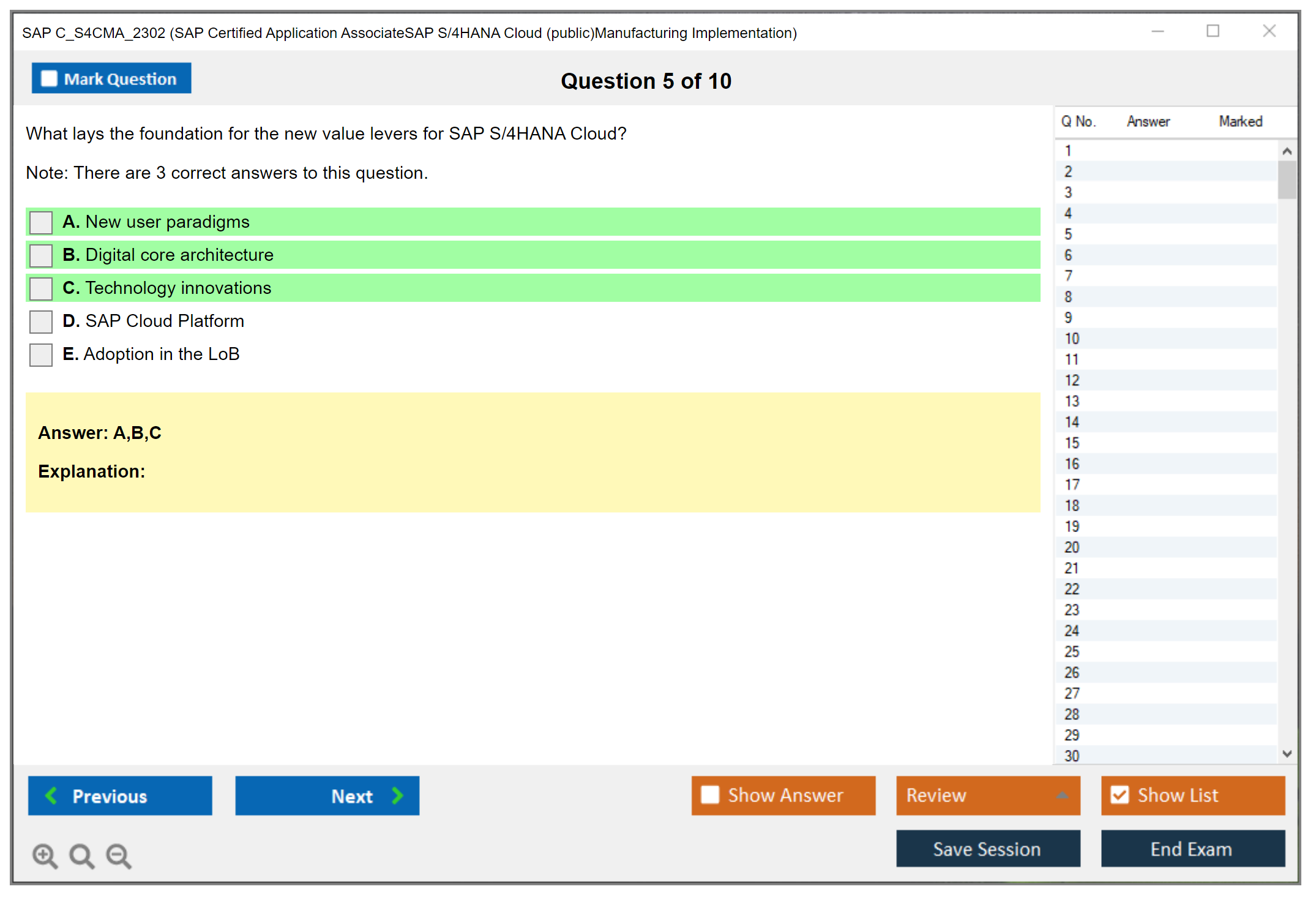 The SAP C_S4CMA_2302 exam, also known as SAP Certified Application Associate - SAP S/4HANA Cloud (public) - Manufacturing Implementation, validates that the candidate possesses the fundamental and core knowledge required for the SAP S/4HANA Cloud Manufacturing line of business.