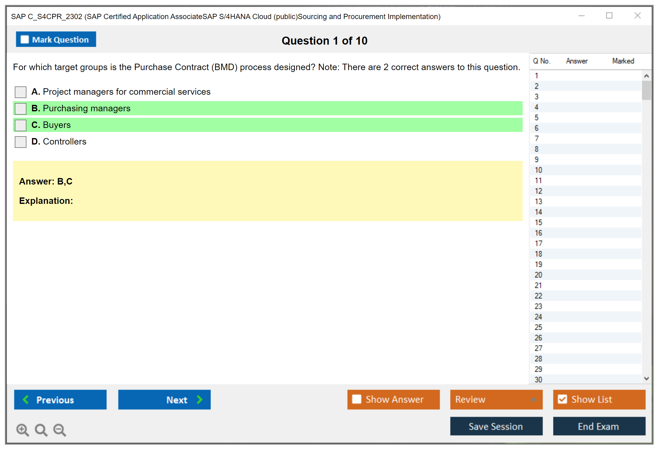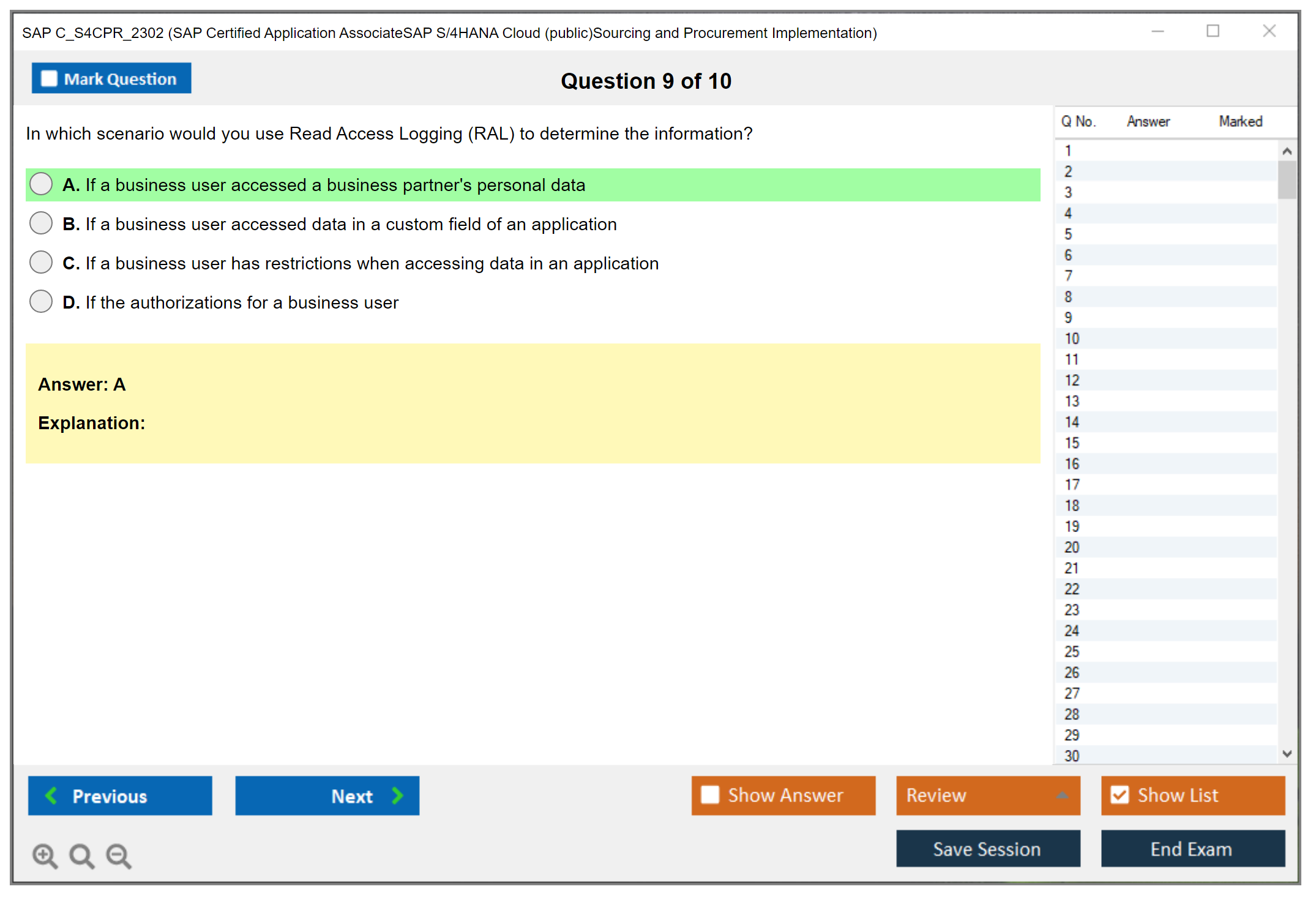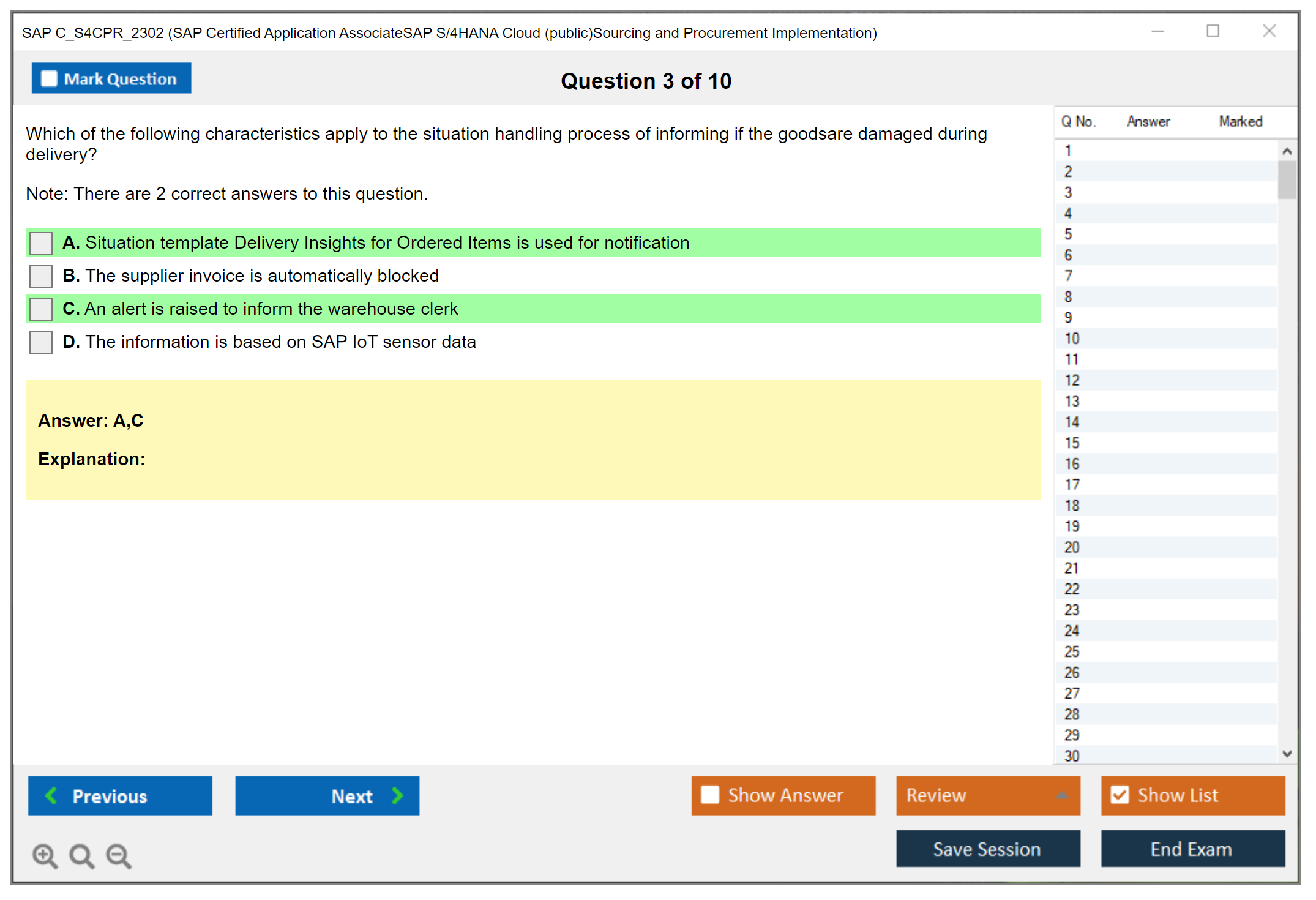 The SAP C_S4CPR_2302 exam, also known as SAP Certified Application Associate - SAP S/4HANA Cloud (public) - Sourcing and Procurement Implementation, validates that the candidate possesses the fundamental and core knowledge required of the SAP S/4HANA Sourcing and Procurement profile. This certification proves that the candidate has an overall understanding and in-depth technical skills to participate as a member of an SAP S/4HANA Cloud (public) implementation project team with a focus on Sourcing and Procurement in a mentored role.