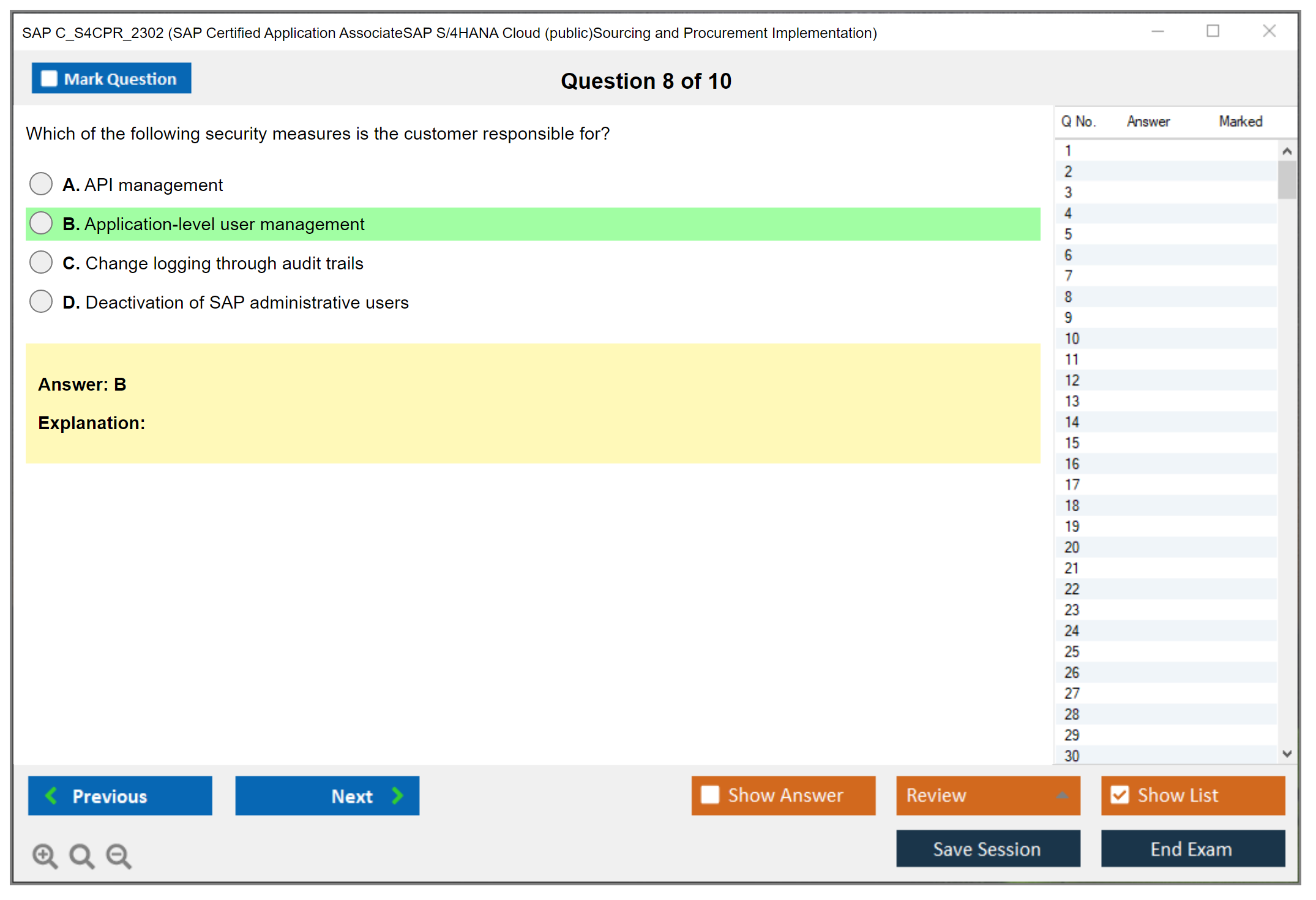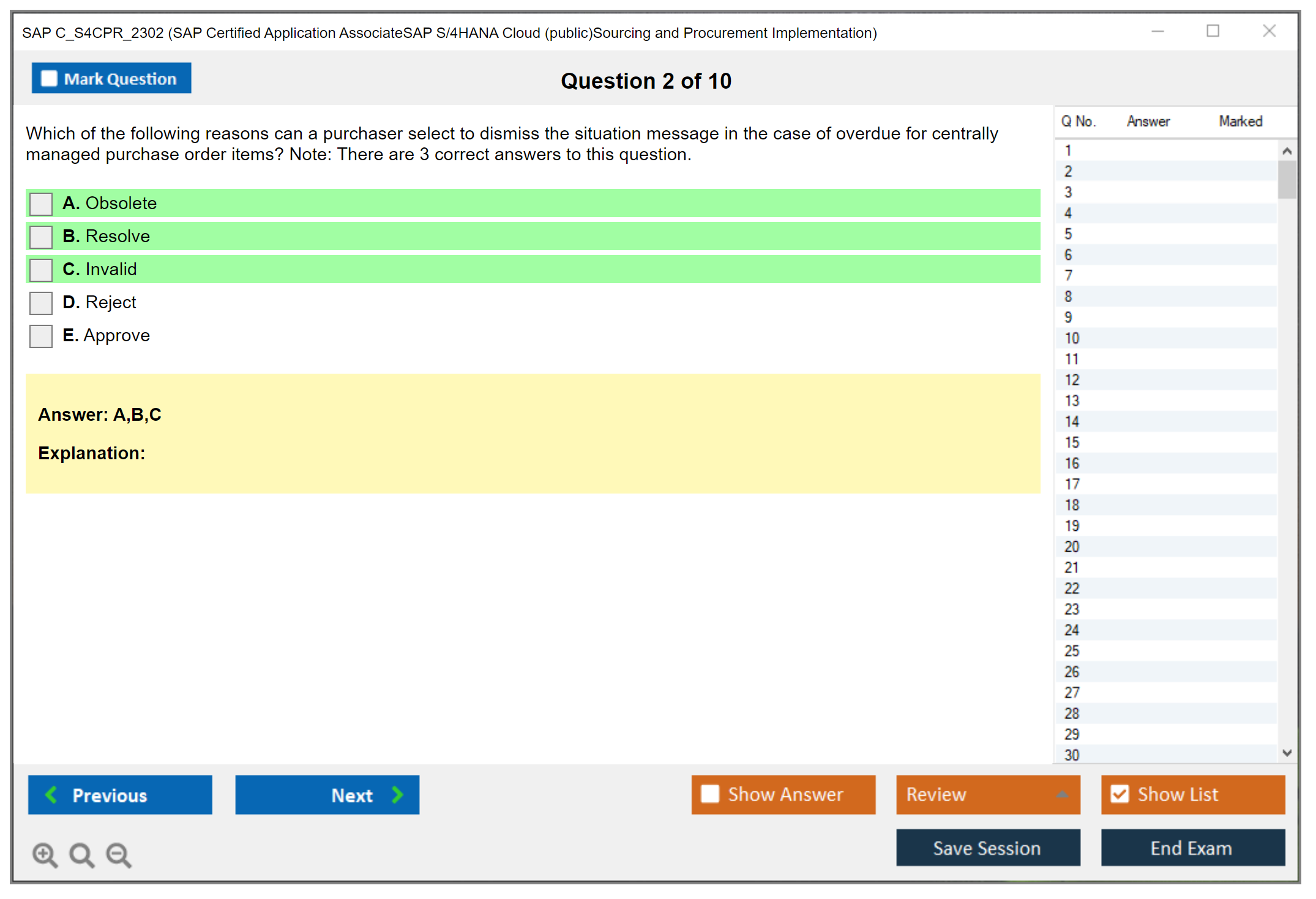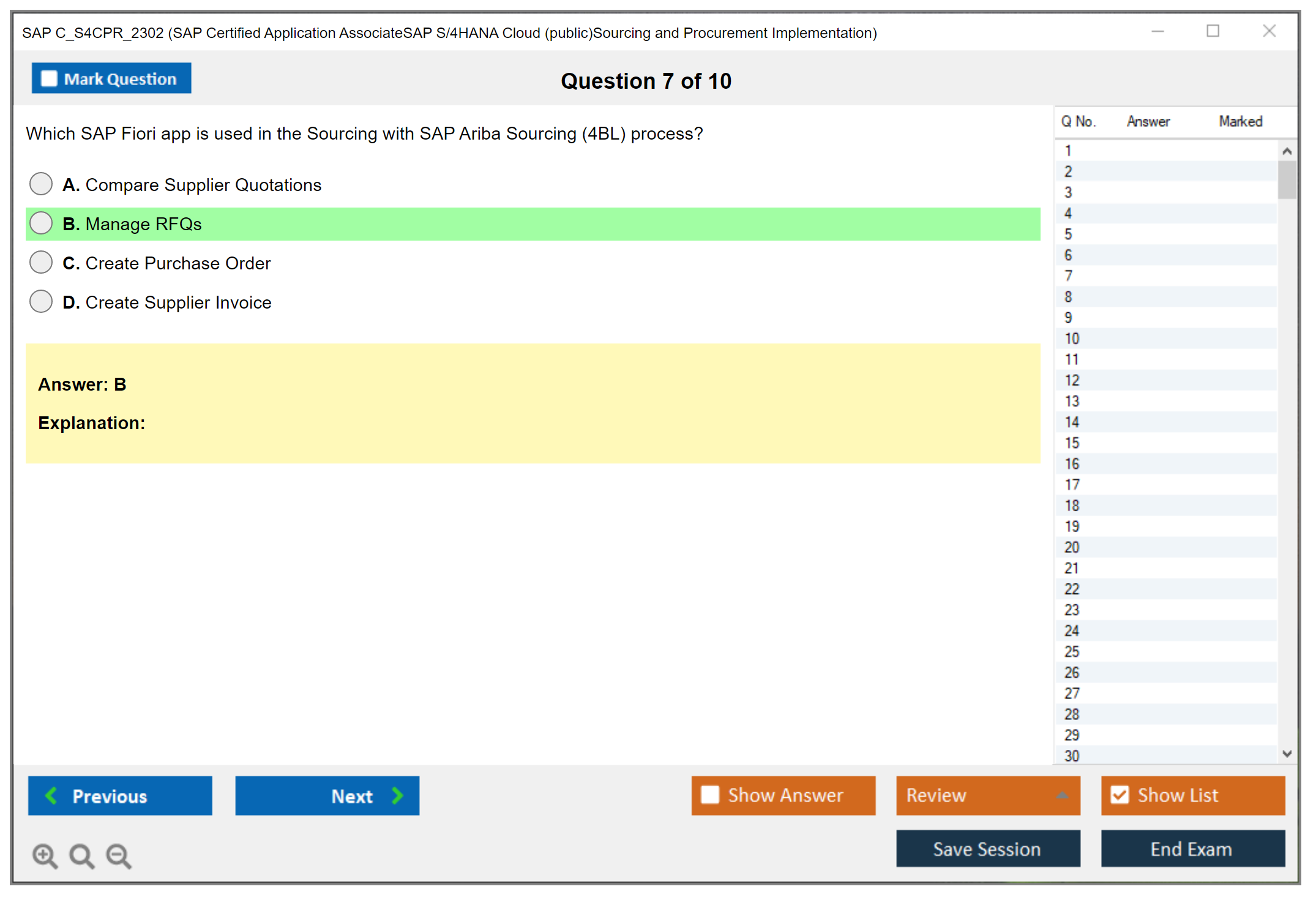 The SAP C_S4CPR_2302 exam, also known as SAP Certified Application Associate - SAP S/4HANA Cloud (public) - Sourcing and Procurement Implementation, validates that the candidate possesses the fundamental and core knowledge required of the SAP S/4HANA Sourcing and Procurement profile. This certification proves that the candidate has an overall understanding and in-depth technical skills to participate as a member of an SAP S/4HANA Cloud (public) implementation project team with a focus on Sourcing and Procurement in a mentored role.