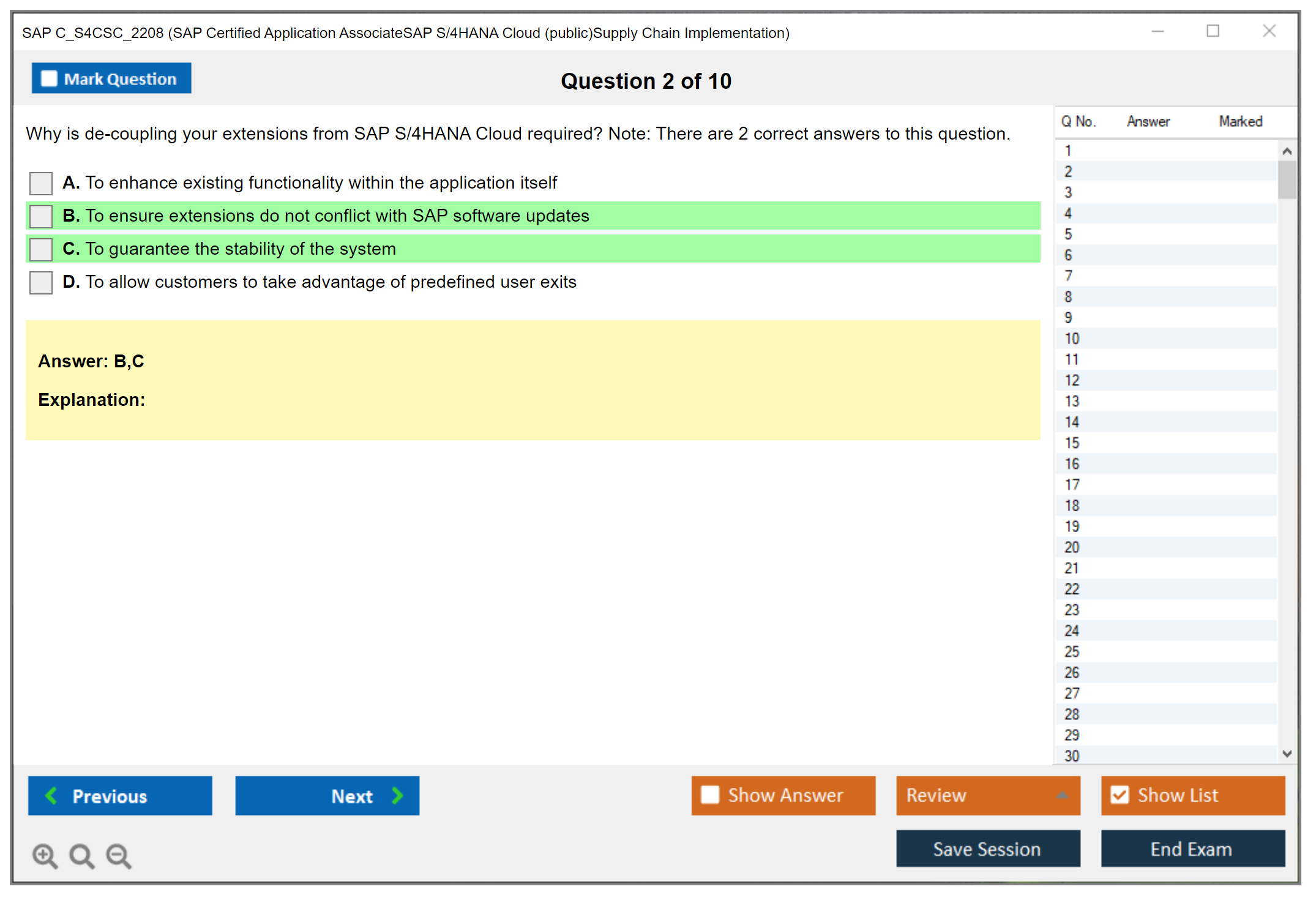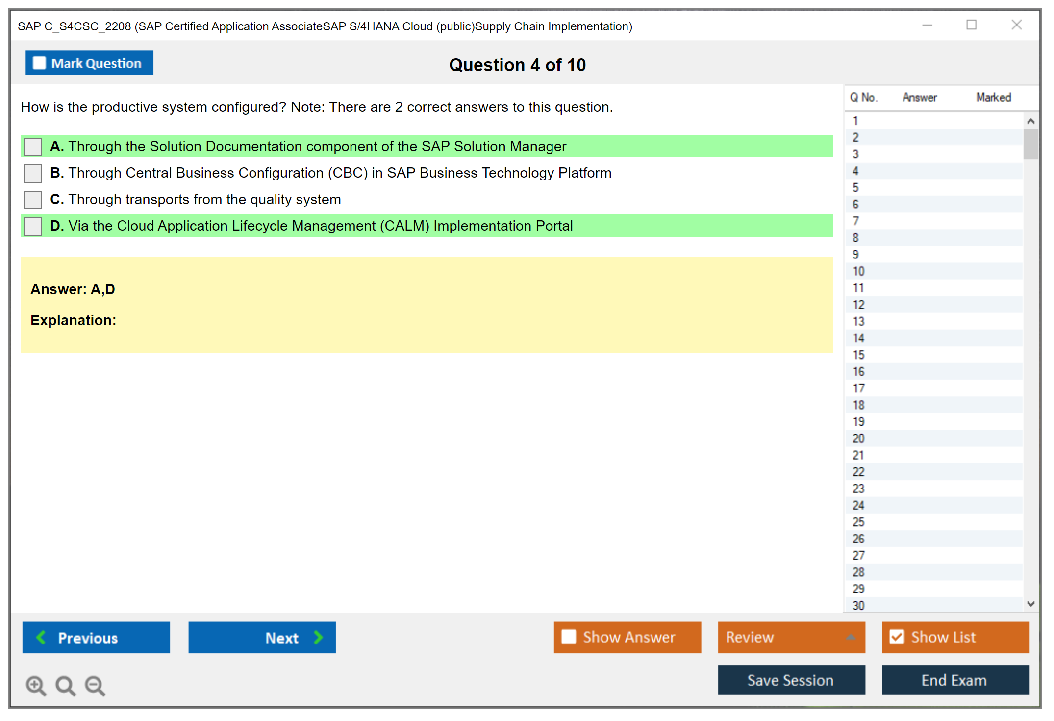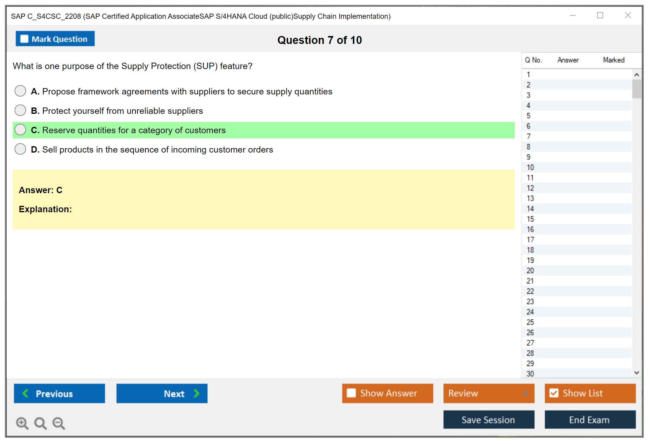 Note: SAP C_S4CSC_2208 (SAP Certified Application AssociateSAP S/4HANA Cloud (public)Supply Chain Implementation) will not receive any new updates.