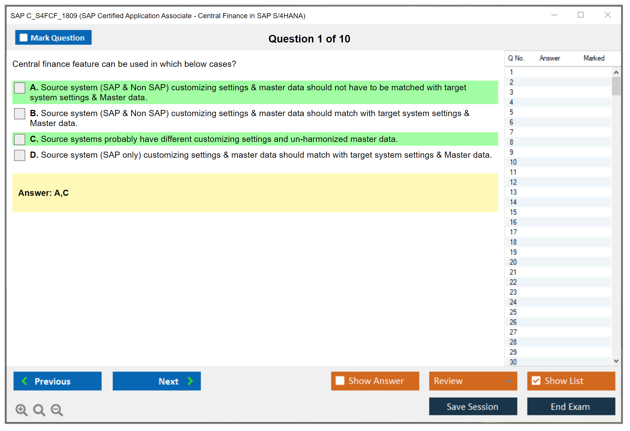 The SAP C_S4FCF_1809 (SAP Certified Application Associate - Central Finance in SAP S/4HANA) exam validates that the candidate possesses the fundamental and core knowledge required of the SAP S/4HANA Central Finance profile. This certification proves that the candidate has an overall understanding and in-depth technical skills to participate as a member of a project team in a mentored role.
