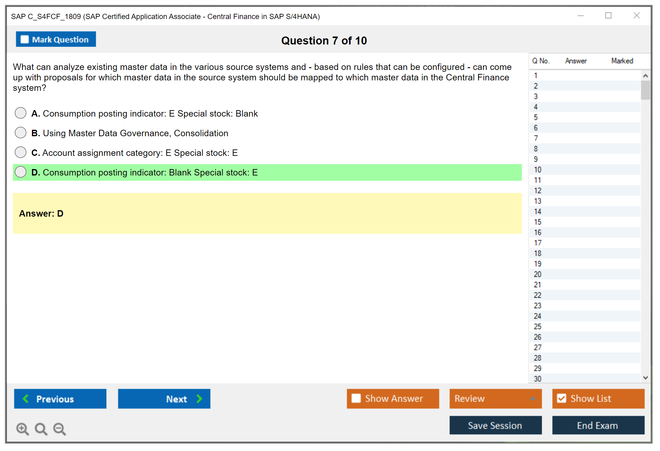 Note: SAP C_S4FCF_1809 (SAP Certified Application Associate - Central Finance in SAP S/4HANA) will not receive any new updates.