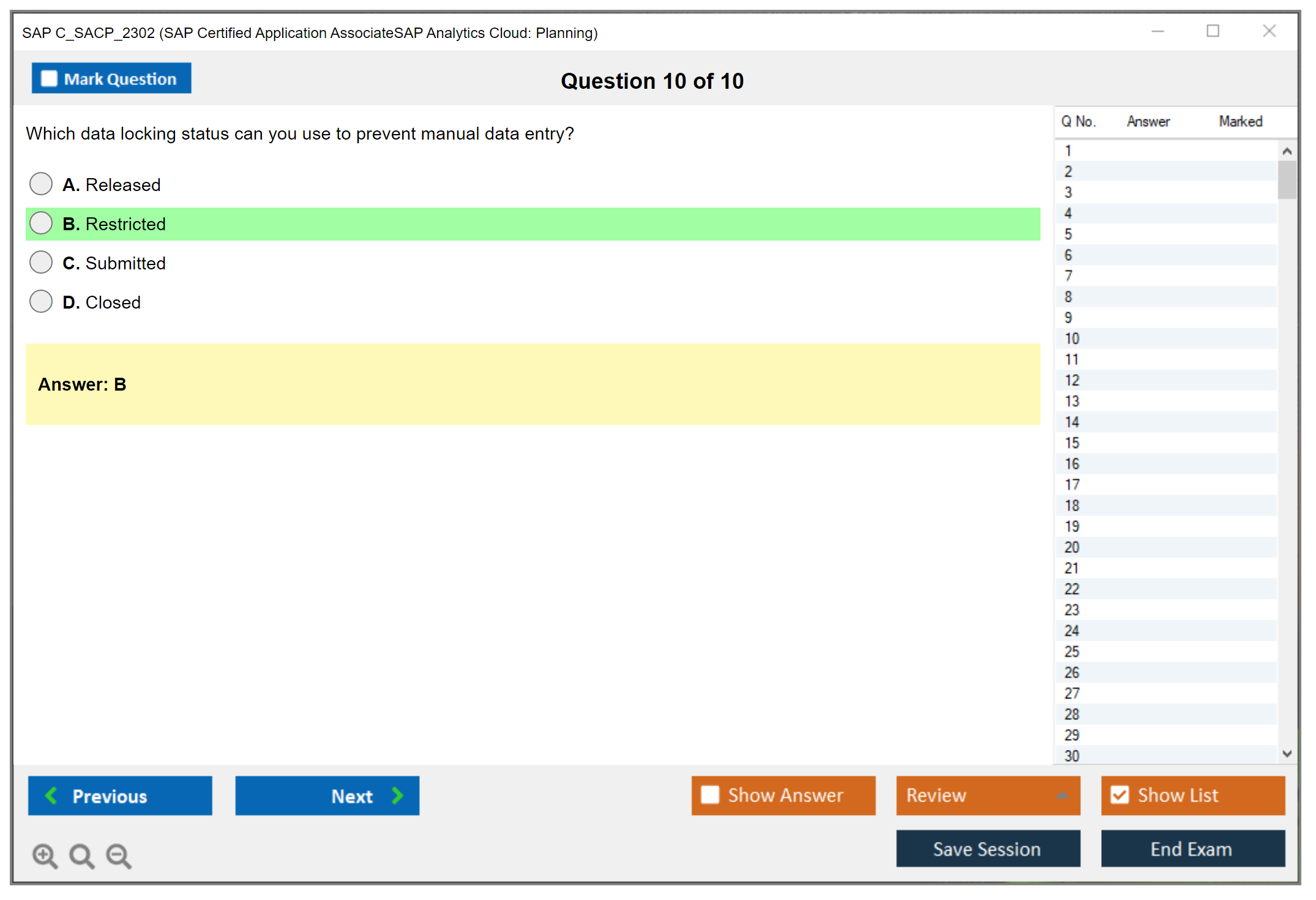 The SAP C_SACP_2302 (SAP Certified Associate - SAP Analytics Cloud: Planning) exam is designed to validate the candidate's knowledge and skills in SAP Analytics Cloud, specifically in the planning domain. It covers various aspects such as model creation, data integration, planning processes, and more.