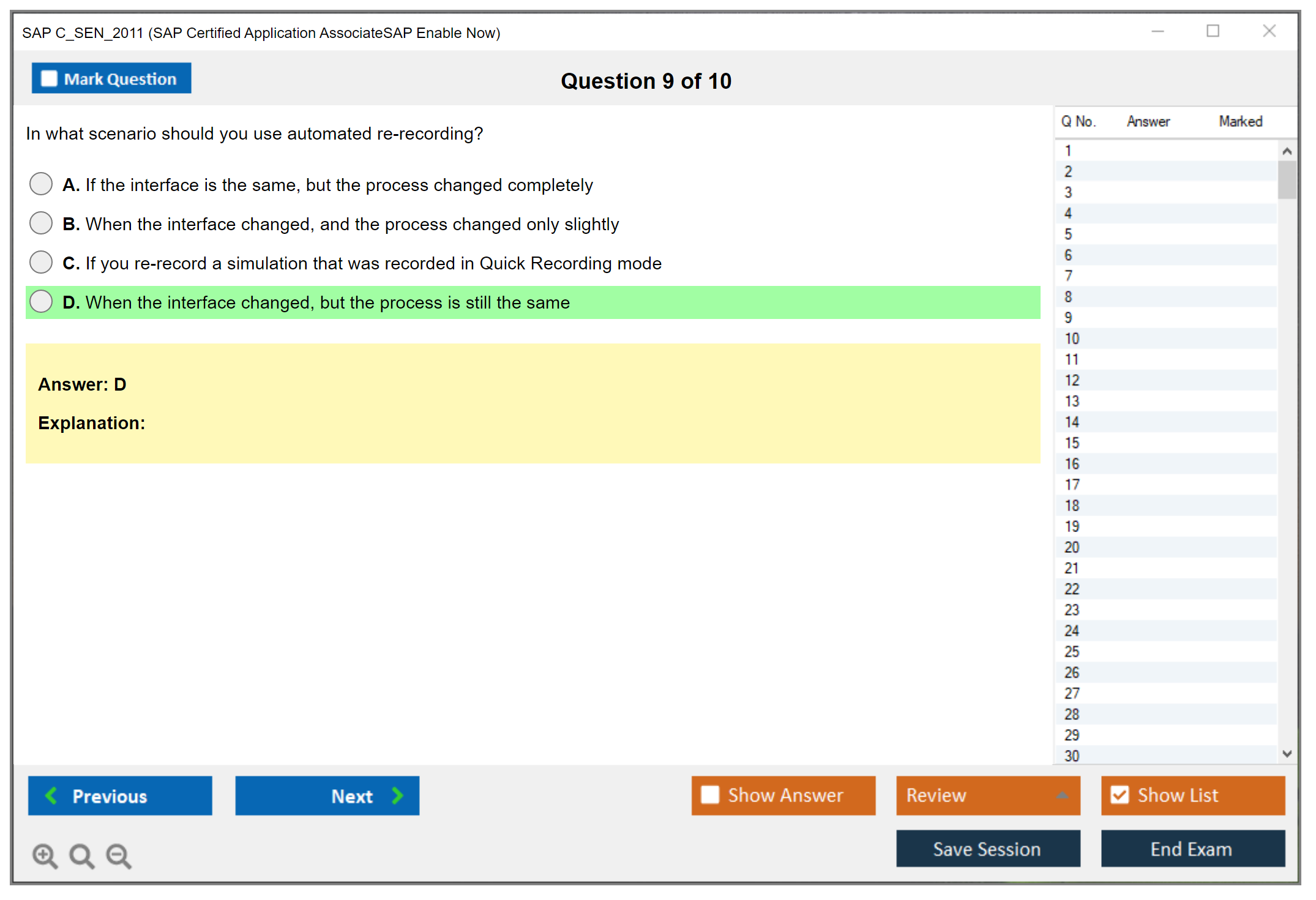 Note: SAP C_SEN_2011 (SAP Certified Application AssociateSAP Enable Now) will not receive any new updates.
