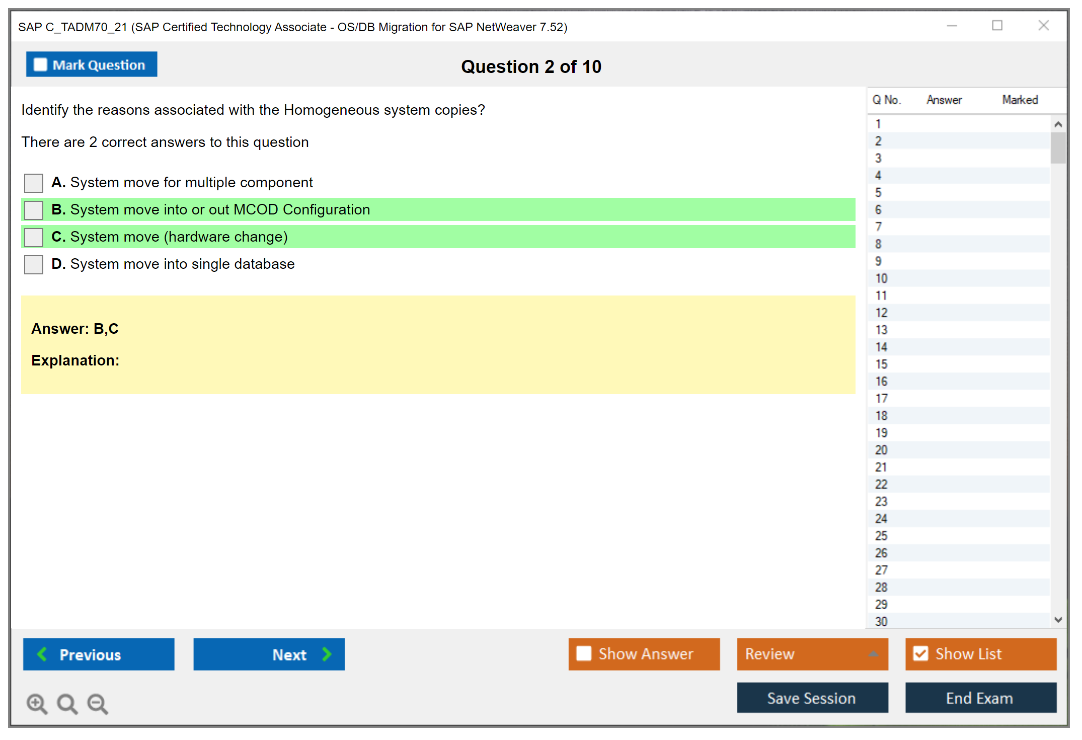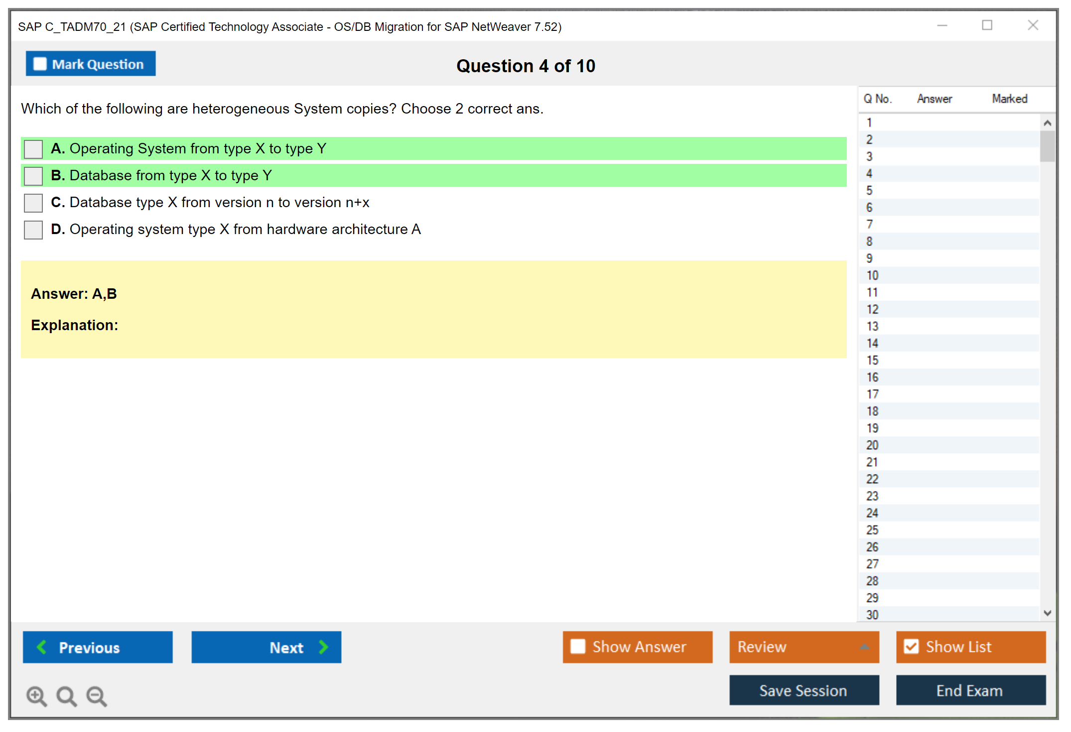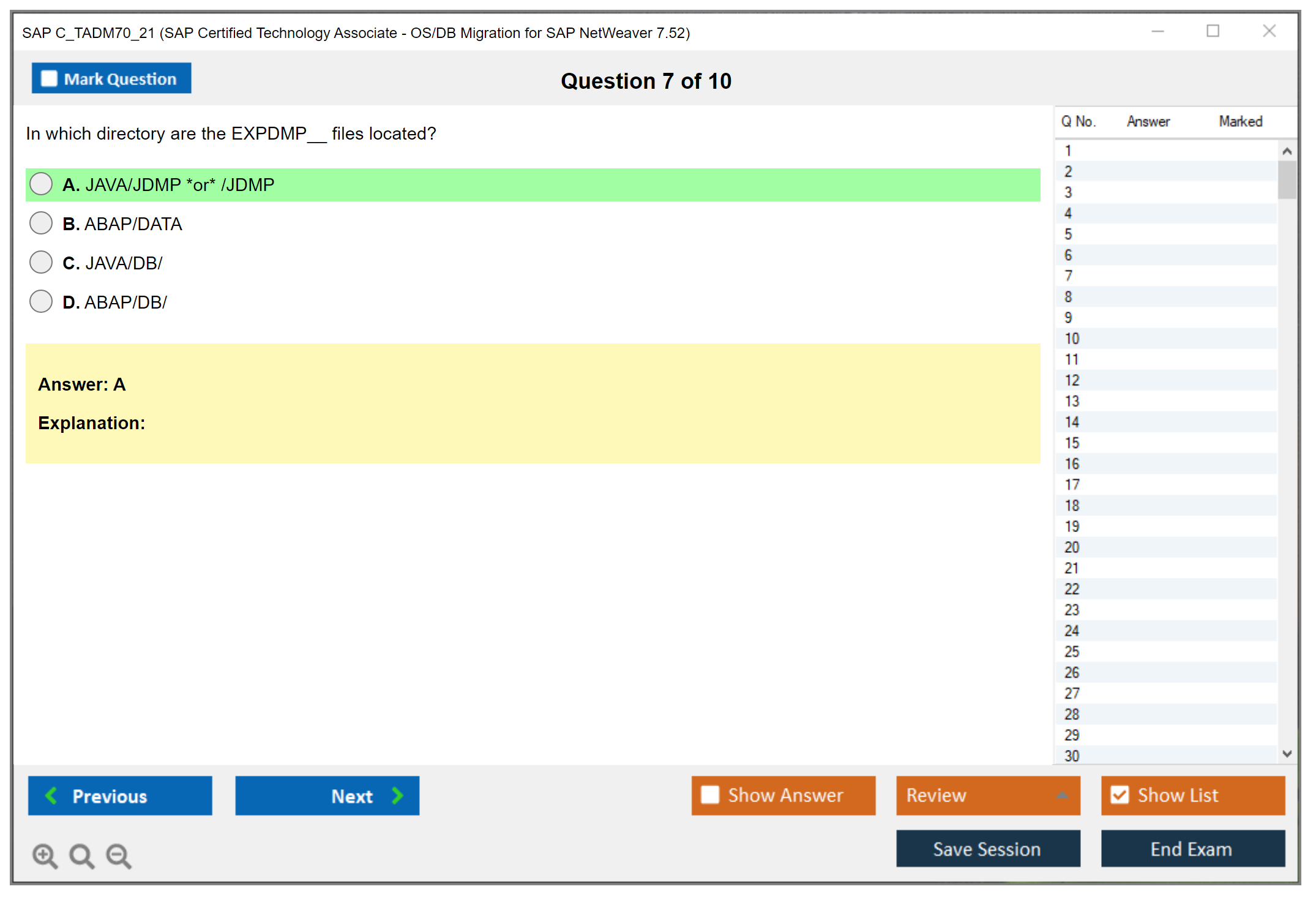 The SAP C_TADM70_21 (SAP Certified Technology Associate - OS/DB Migration for SAP NetWeaver 7.52) exam validates that the candidate possesses the fundamental knowledge and proven skills in the area of SAP system administration and OS/DB migration for SAP NetWeaver 7.52.