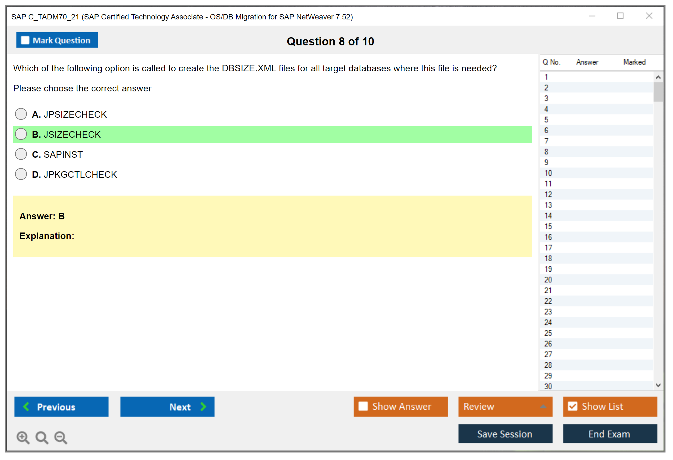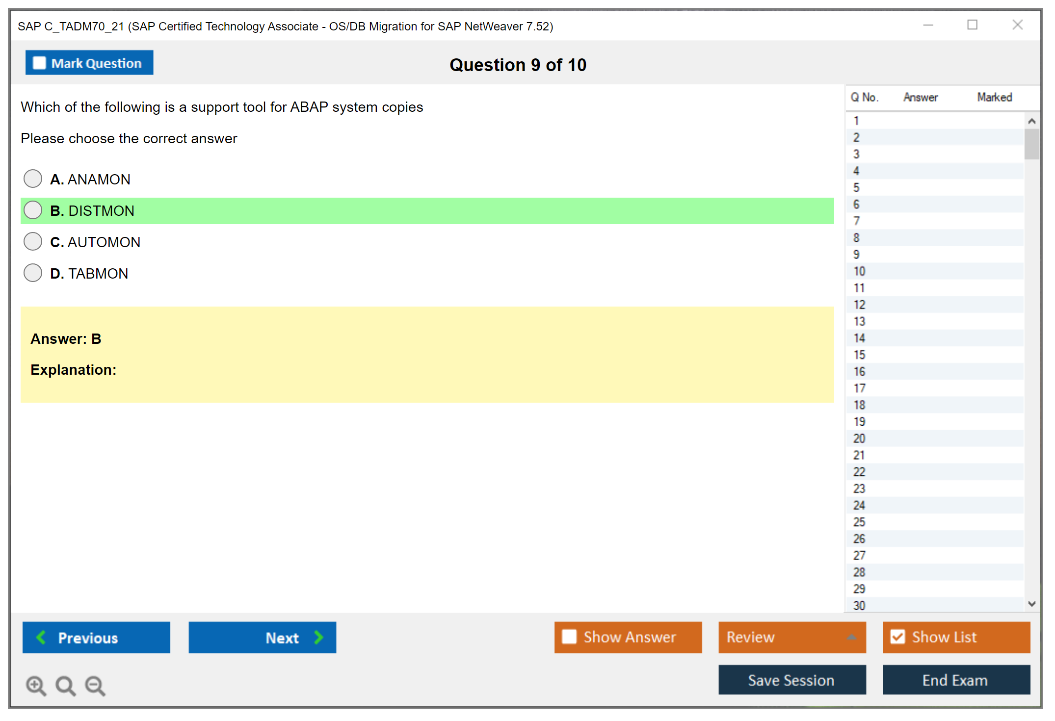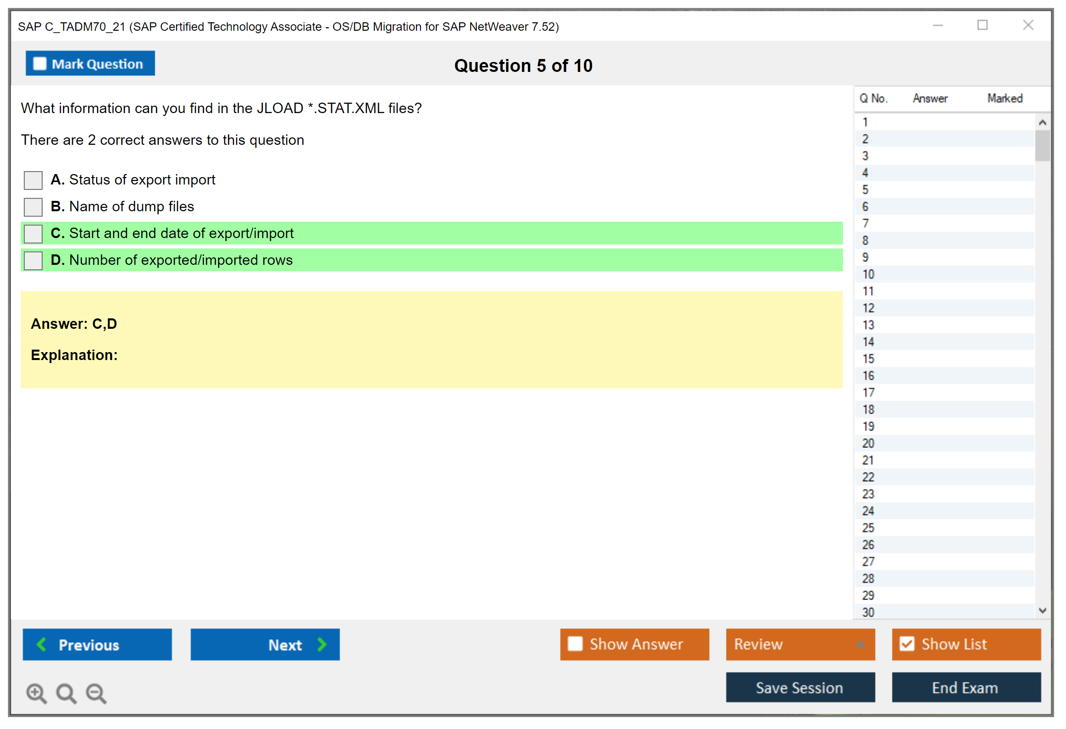 The SAP C_TADM70_21 (SAP Certified Technology Associate - OS/DB Migration for SAP NetWeaver 7.52) exam validates that the candidate possesses the fundamental knowledge and proven skills in the area of SAP system administration and OS/DB migration for SAP NetWeaver 7.52.