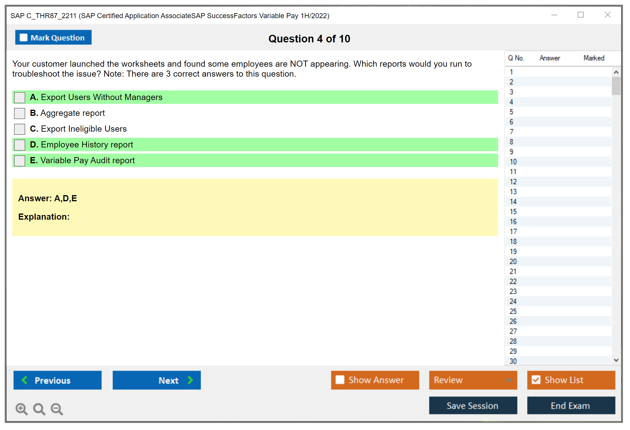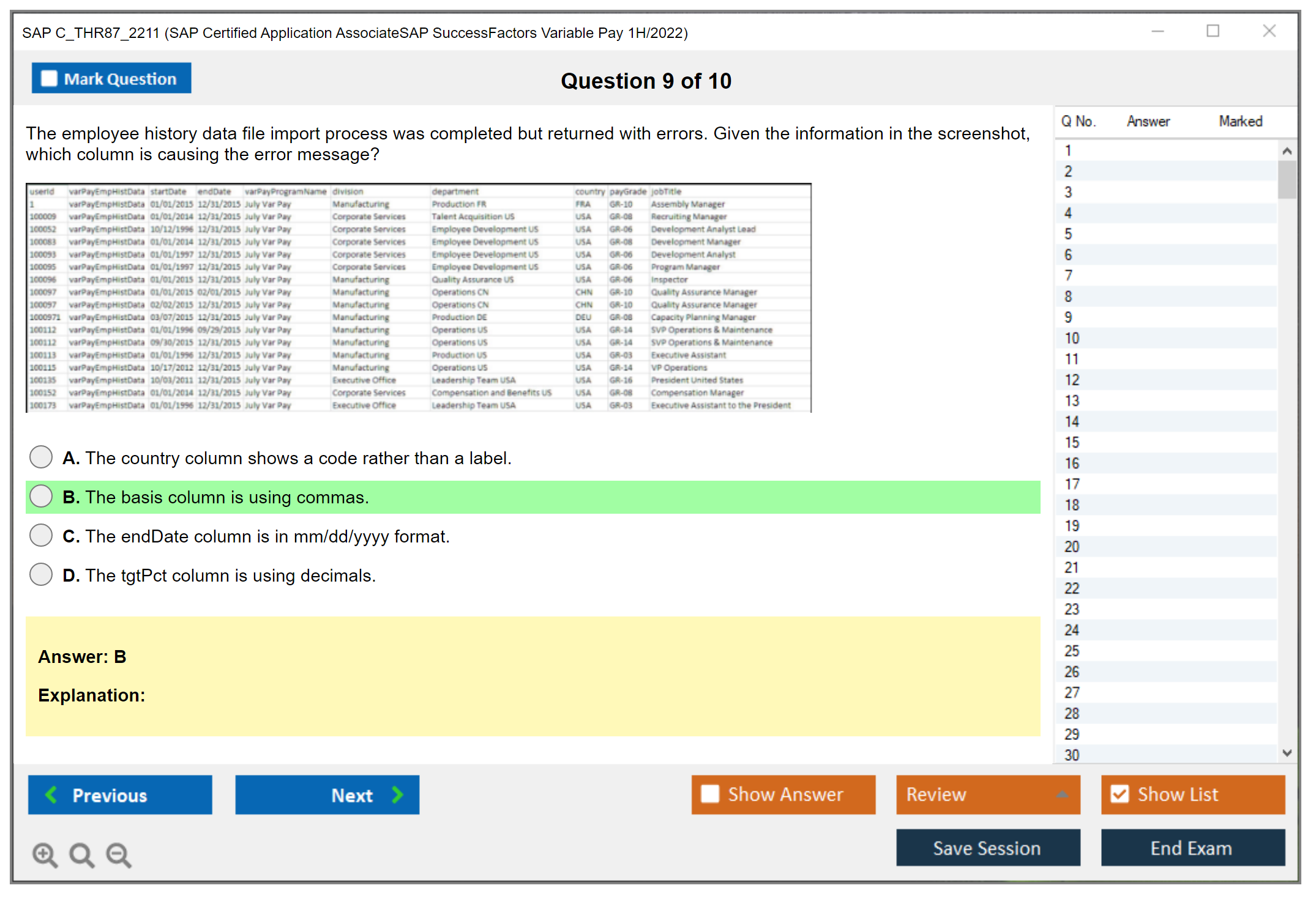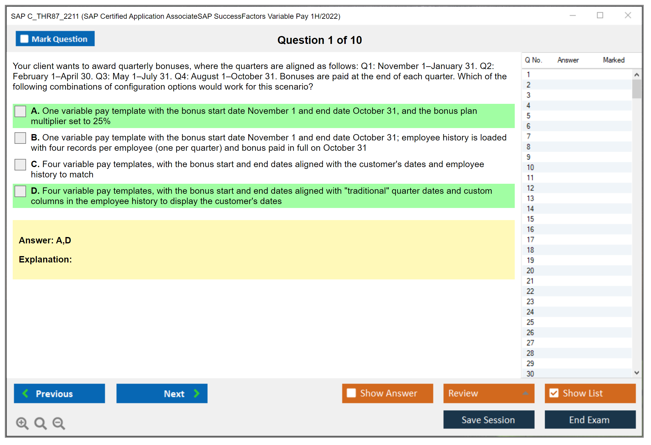 The SAP C_THR87_2211 (SAP Certified Application Associate - SAP SuccessFactors Variable Pay 1H/2022) exam validates that the candidate possesses the fundamental and core knowledge required of the SAP SuccessFactors Variable Pay application.