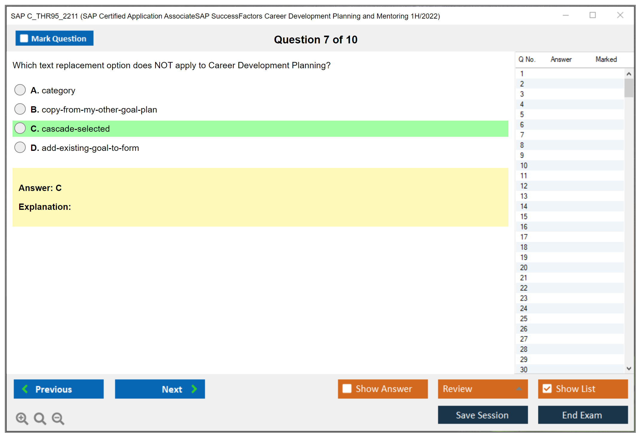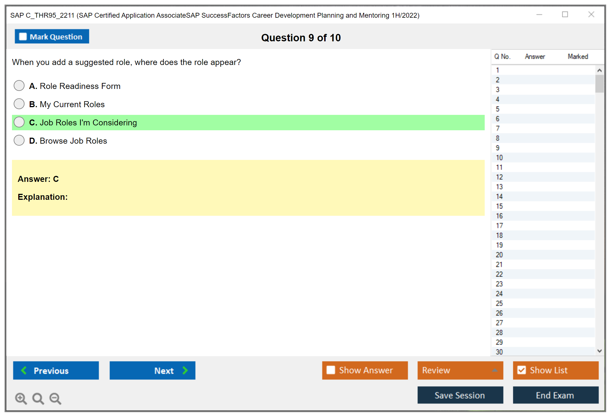 The SAP C_THR95_2211 exam, also known as SAP Certified Application Associate - SAP SuccessFactors Career Development Planning and Mentoring 1H/2022, is designed to validate the candidate's knowledge and skills in the area of the SAP SuccessFactors Career Development Planning and Mentoring application.