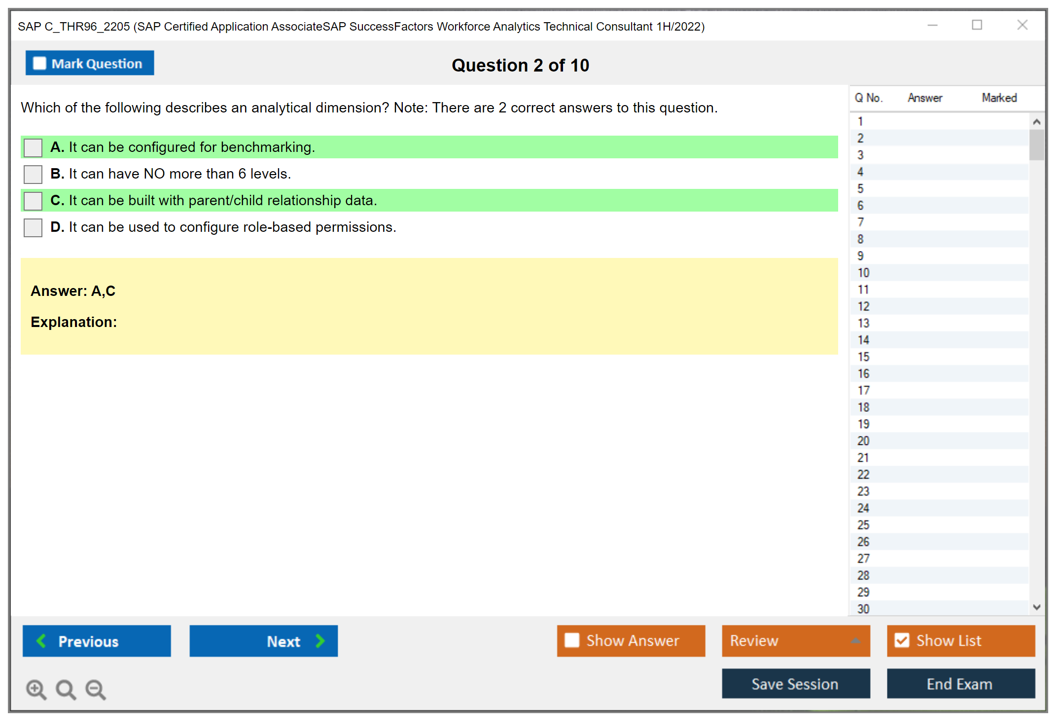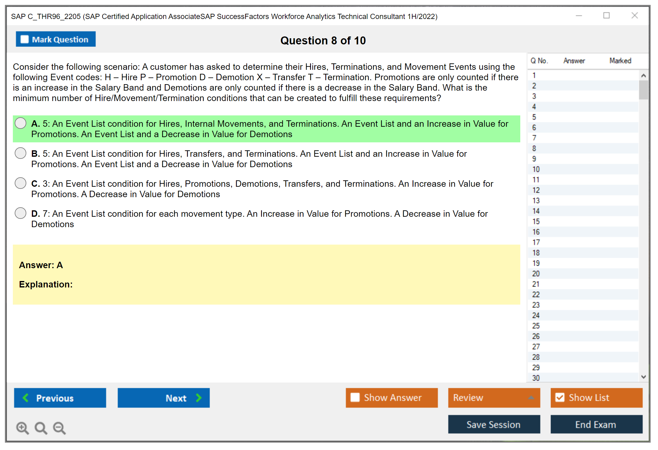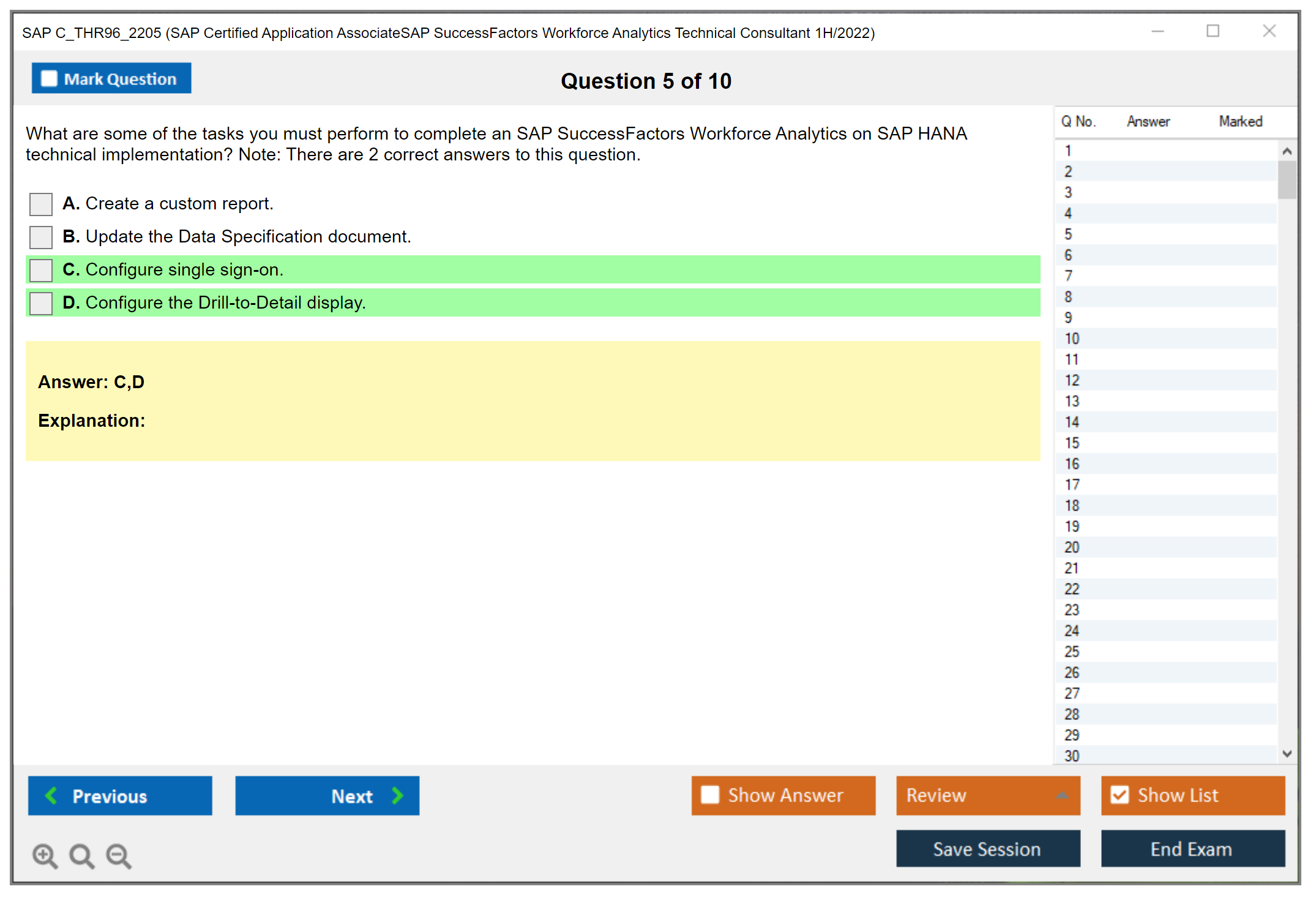 Note: SAP C_THR96_2205 (SAP Certified Application AssociateSAP SuccessFactors Workforce Analytics Technical Consultant 1H/2022) will not receive any new updates.