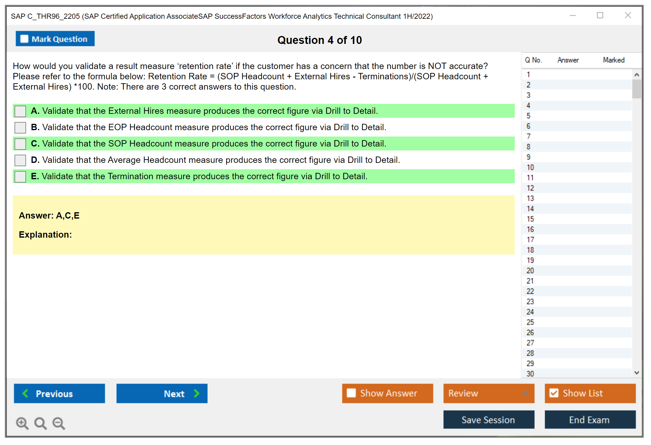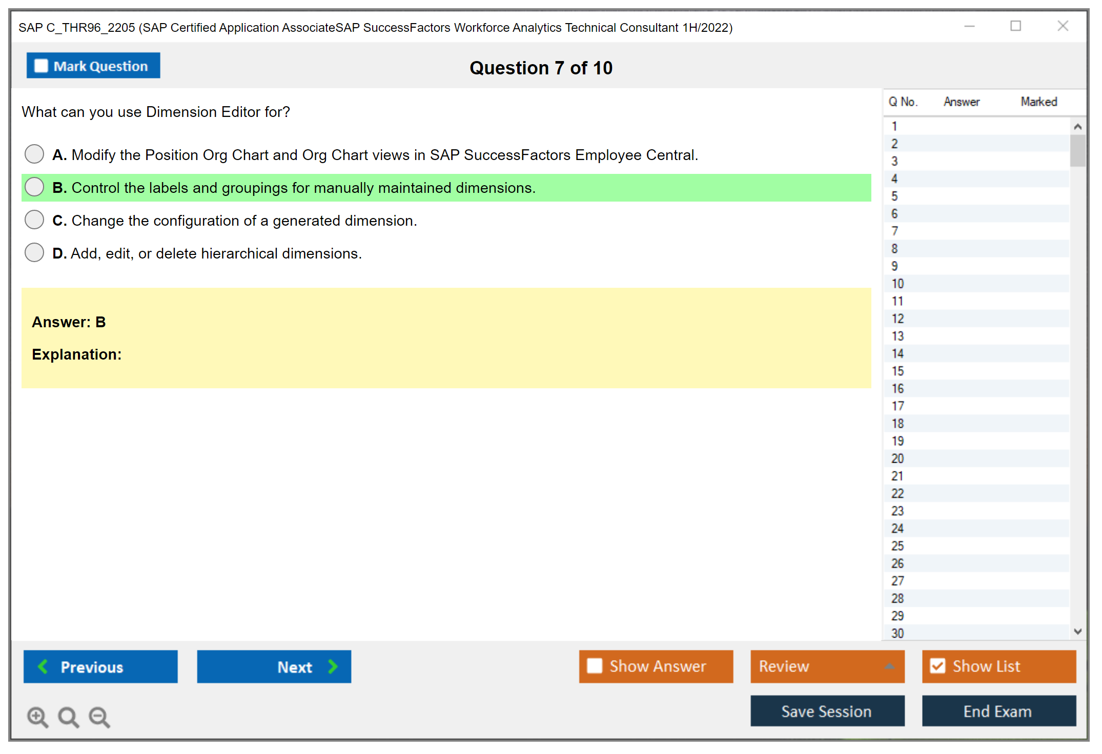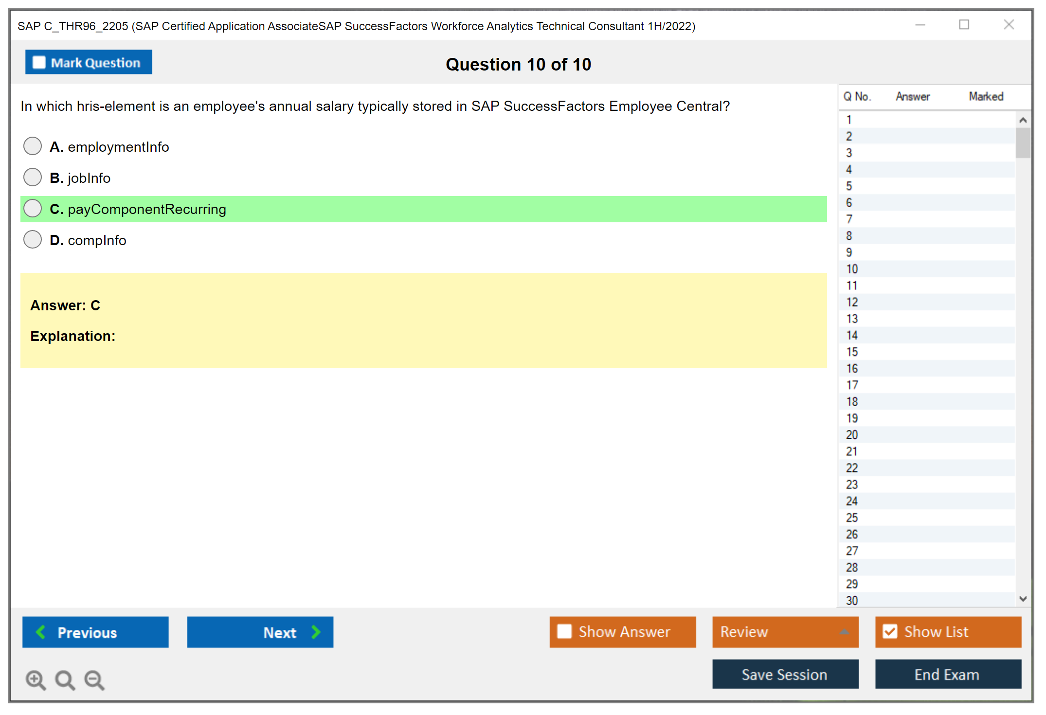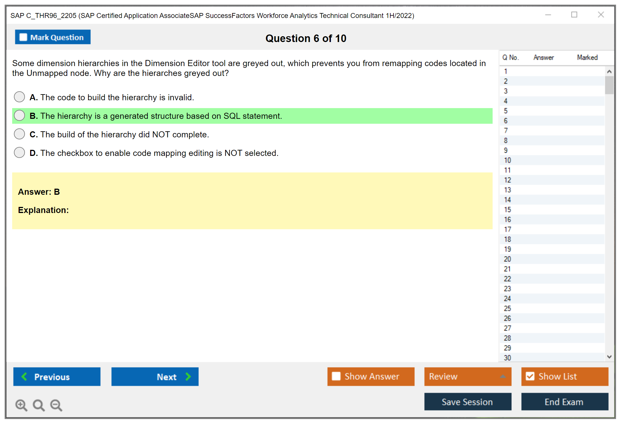 Note: SAP C_THR96_2205 (SAP Certified Application AssociateSAP SuccessFactors Workforce Analytics Technical Consultant 1H/2022) will not receive any new updates.