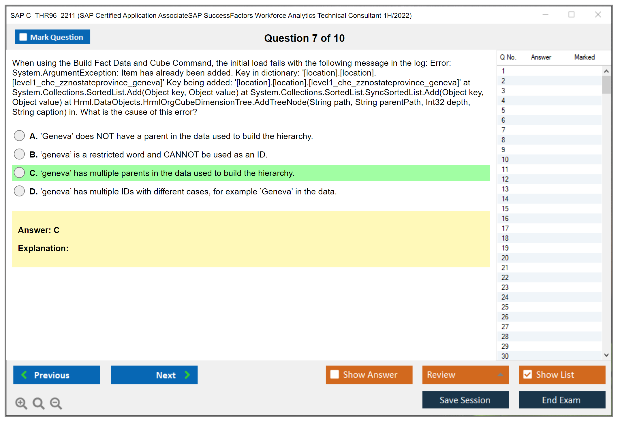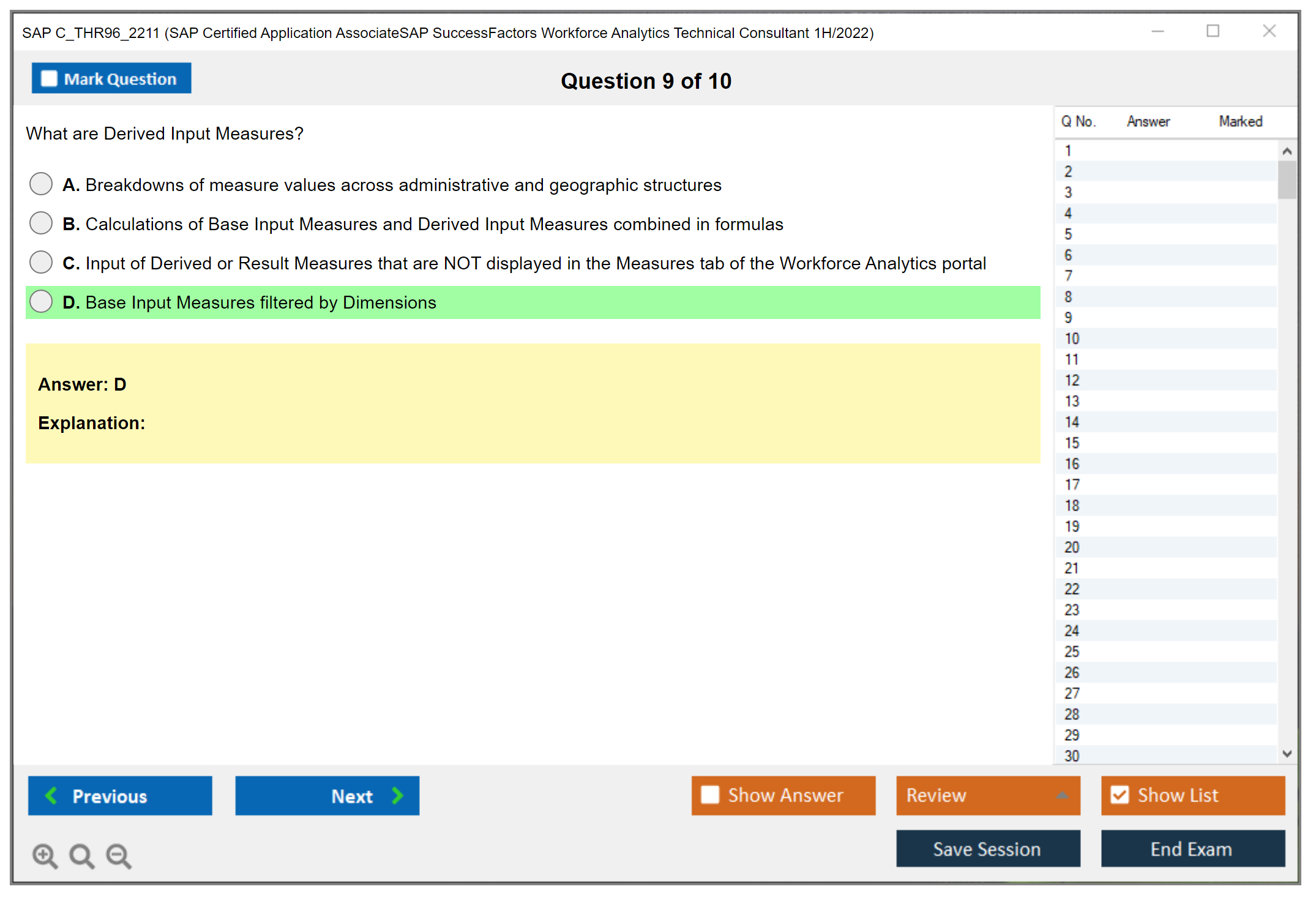 The SAP C_THR96_2211 exam is a certification assessment for professionals aiming to become certified in SAP SuccessFactors Workforce Analytics. It evaluates the candidate's ability to implement and configure solutions, ensuring they have a comprehensive understanding of the technical aspects of the SAP SuccessFactors Workforce Analytics module.
