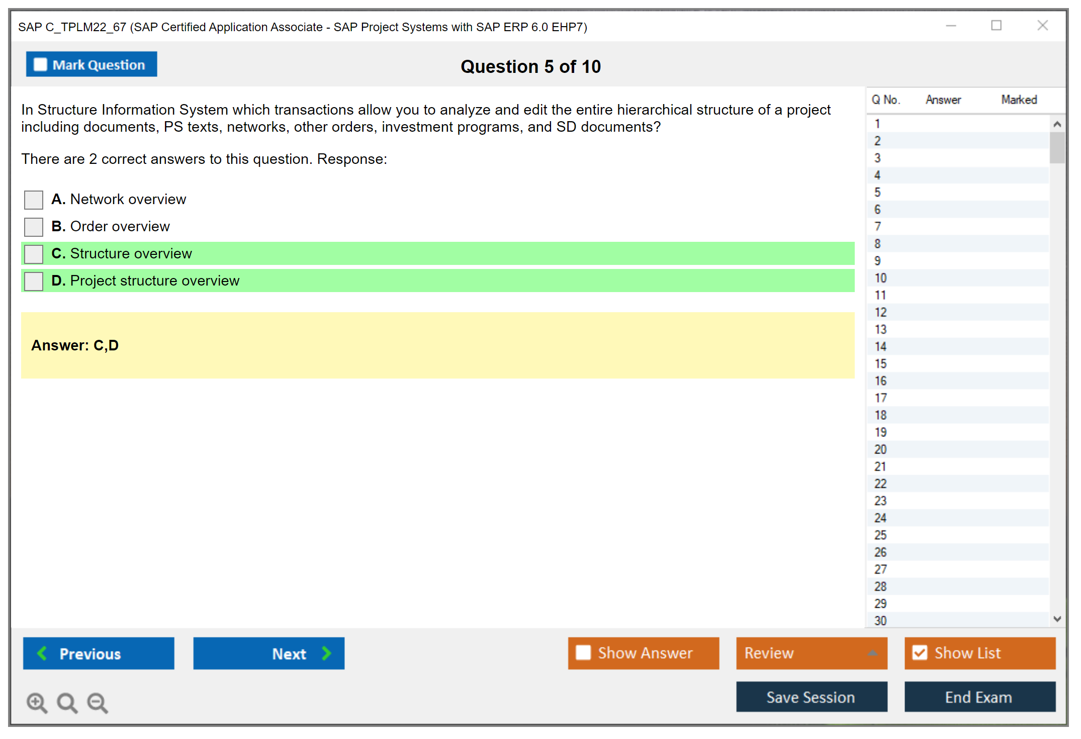 The SAP C_TPLM22_67 exam is designed to assess and certify the knowledge and skills of professionals in SAP Project Systems. This certification covers various aspects of project management within the SAP ERP framework, ensuring that individuals can effectively utilize SAP tools and techniques to manage projects.