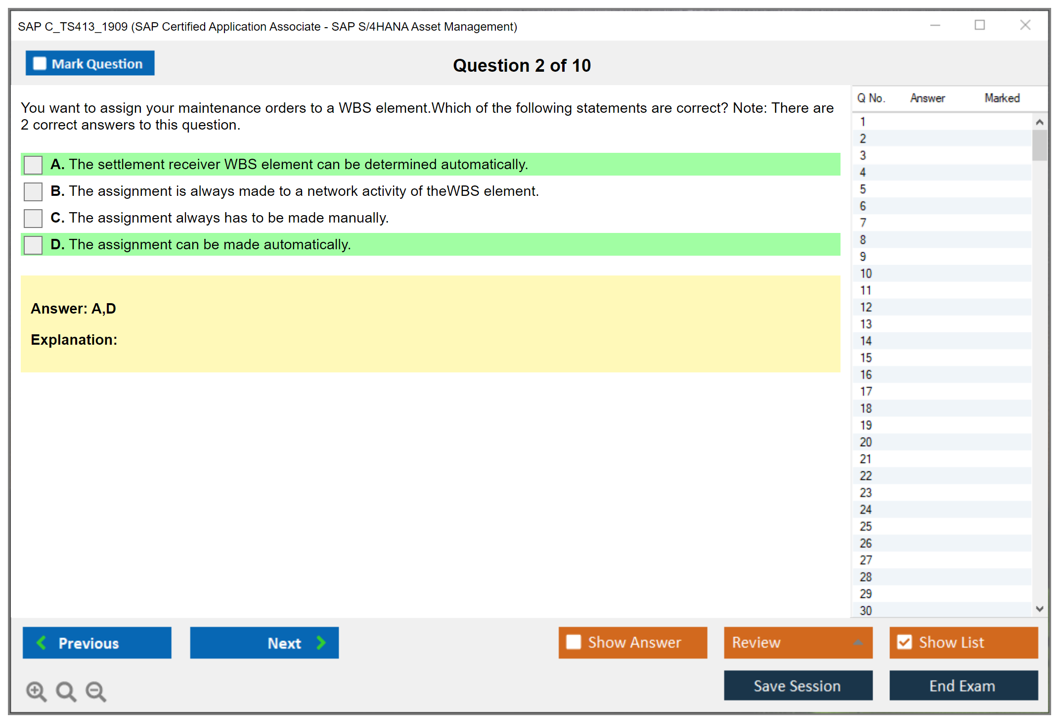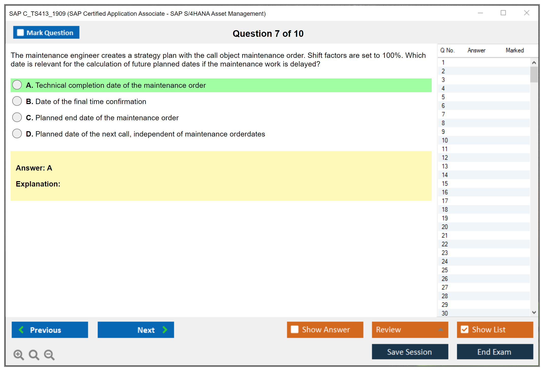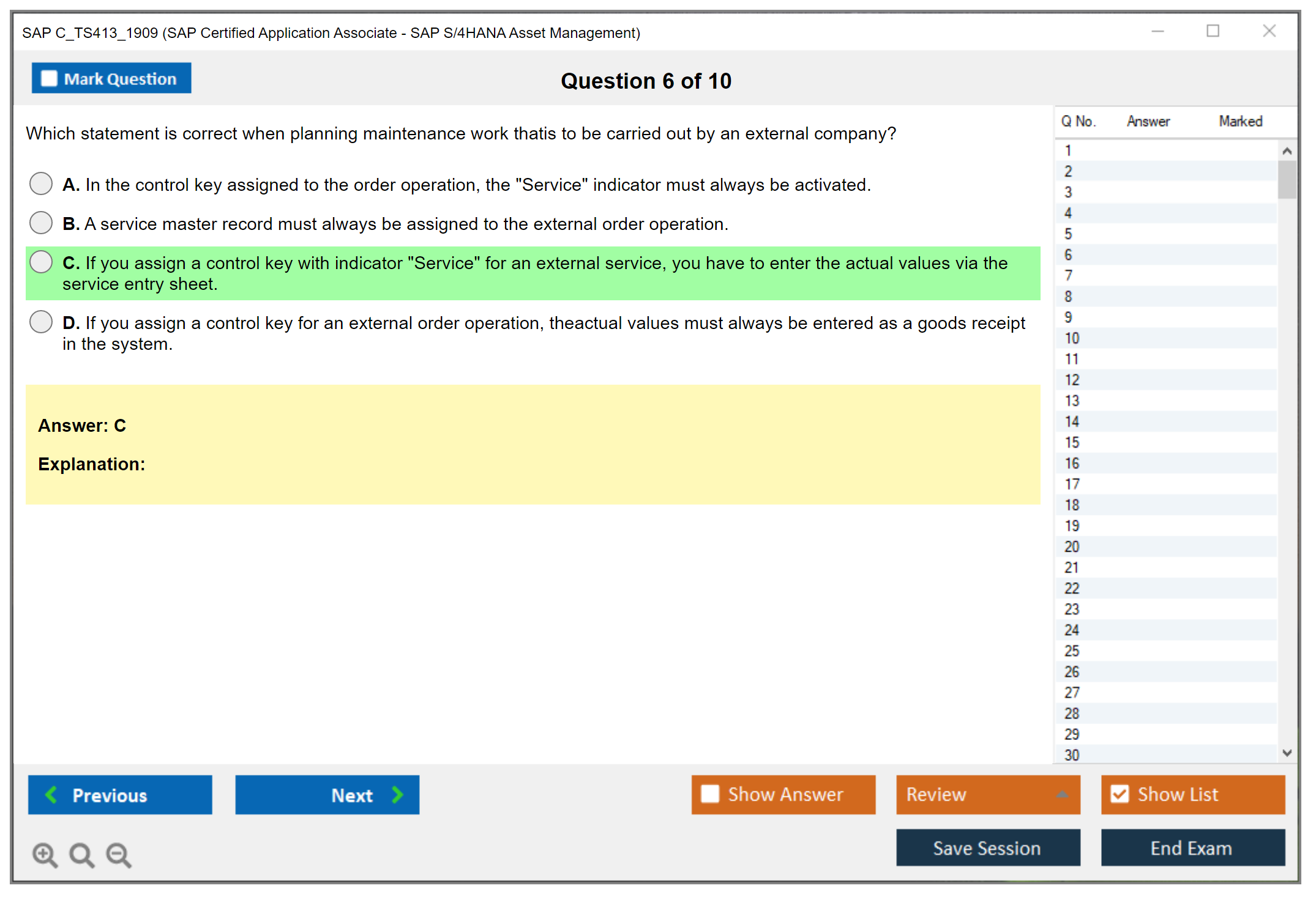 Note: SAP C_TS413_1909 (SAP Certified Application Associate - SAP S/4HANA Asset Management) will not receive any new updates.