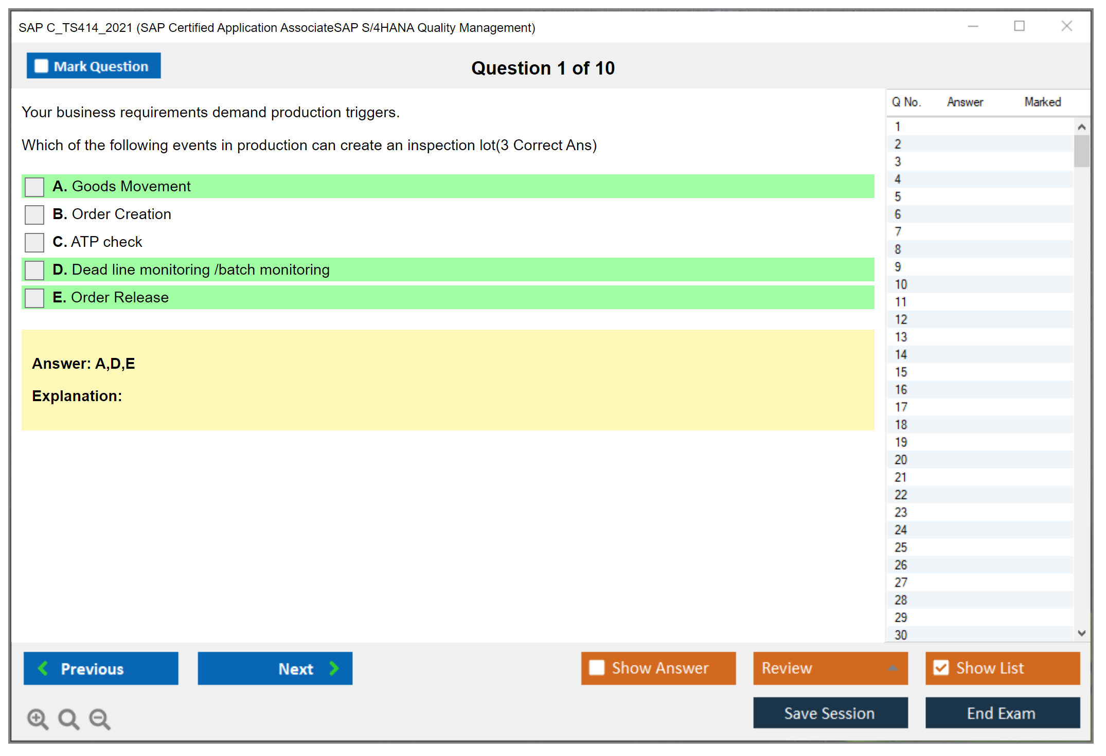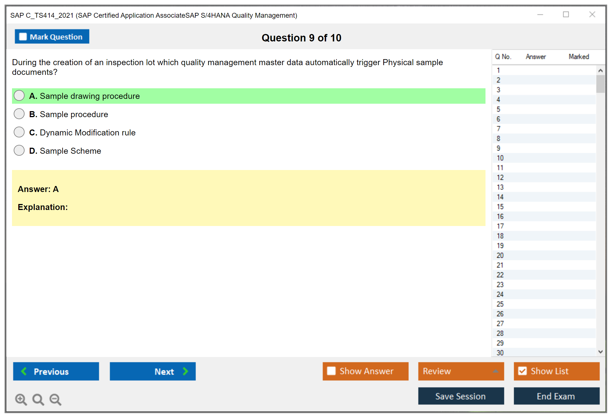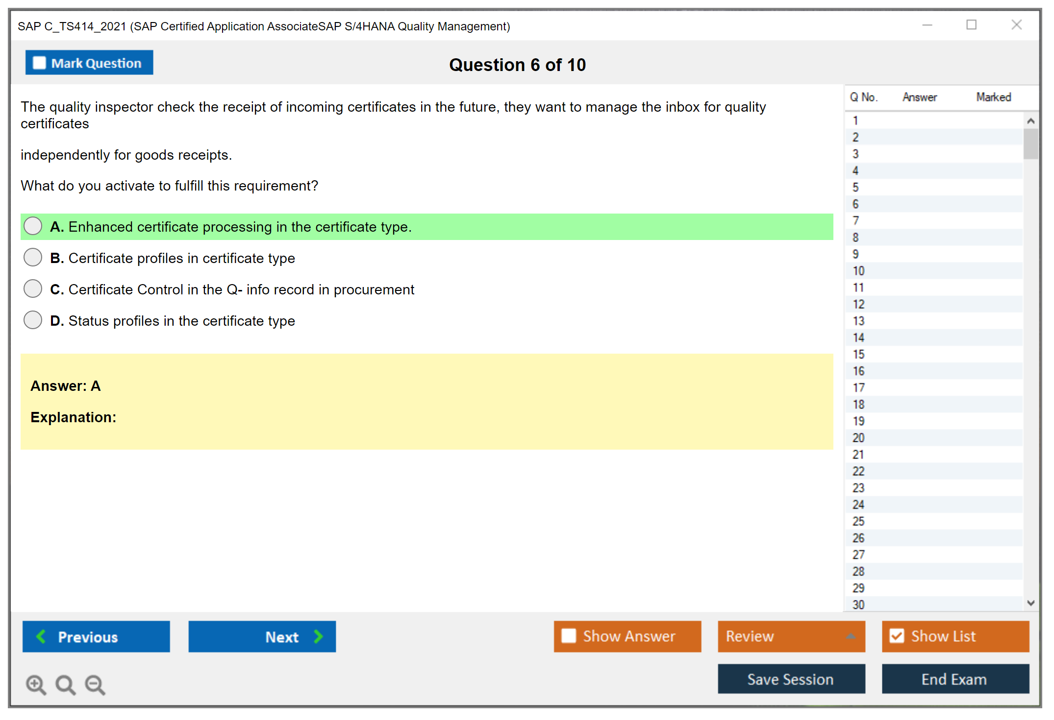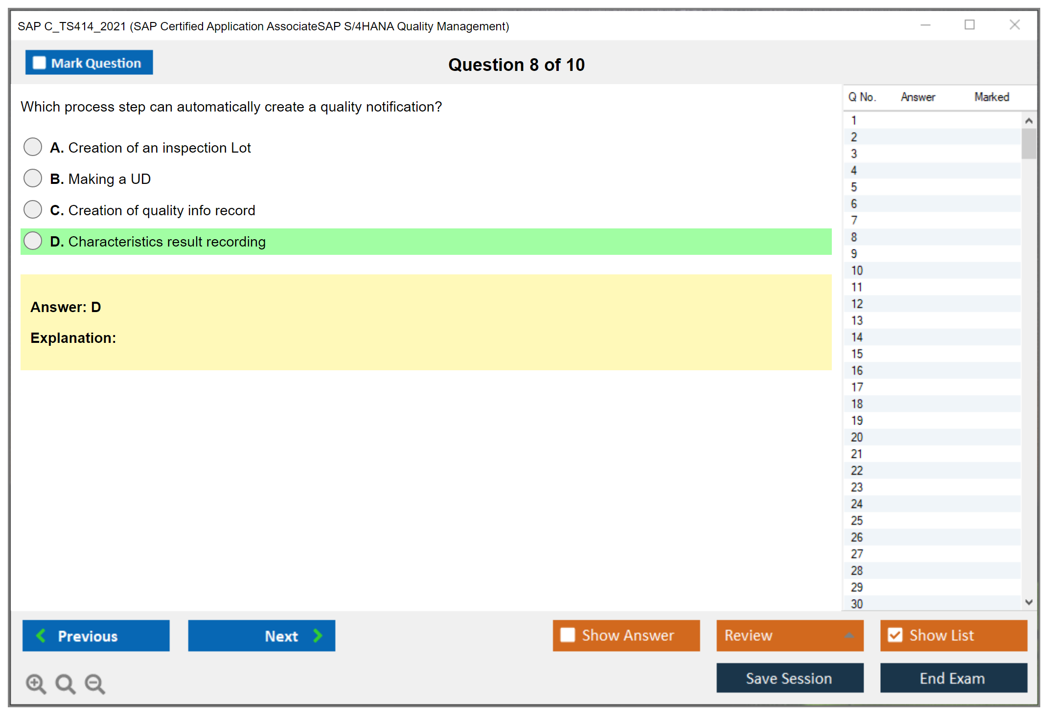 The SAP C_TS414_2021 exam is designed for individuals who want to validate their skills and knowledge in SAP S/4HANA Quality Management. It certifies that the candidate has a fundamental understanding and proven skills in the area of SAP S/4HANA Quality Management.