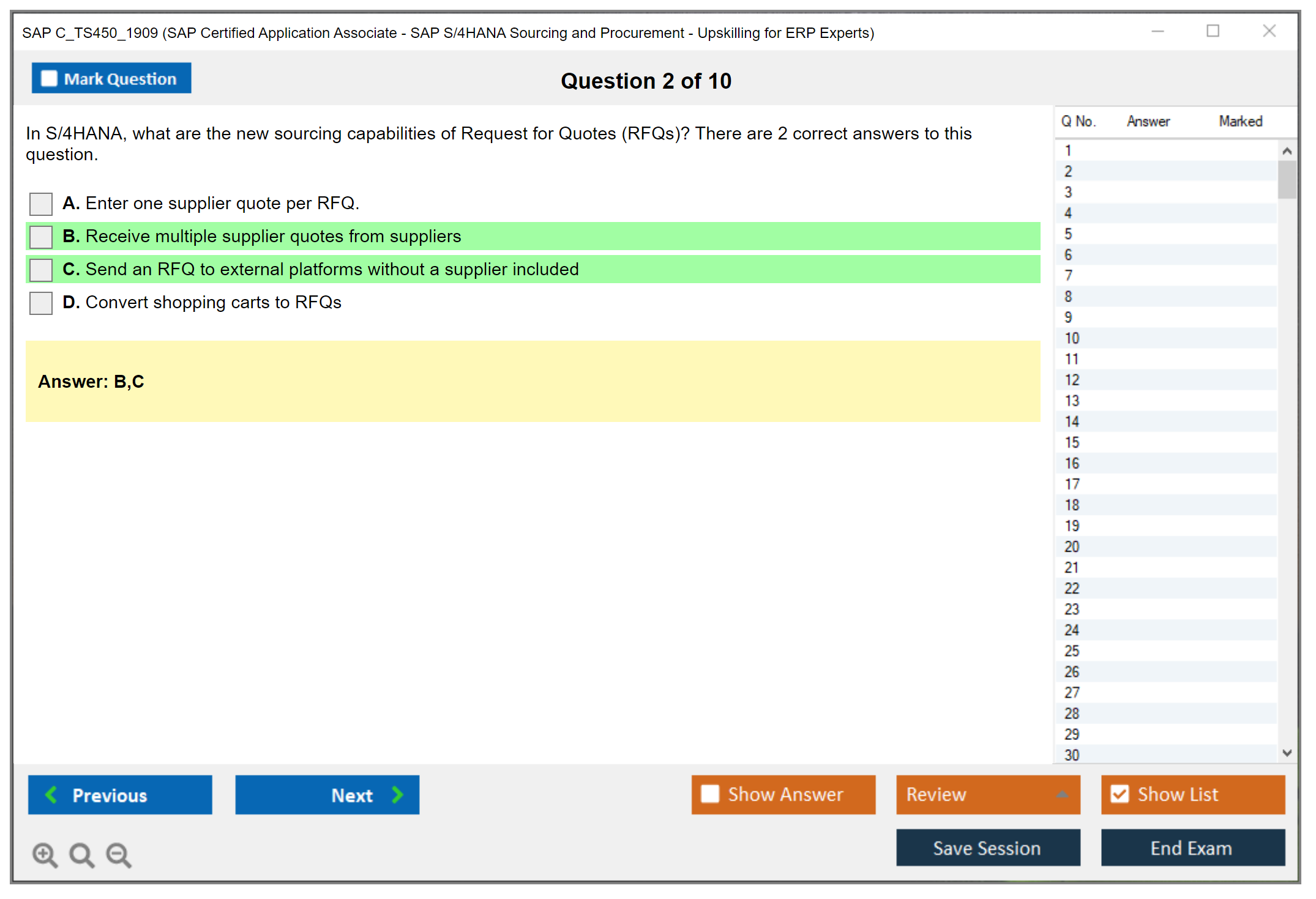 Note: SAP C_TS450_1909 (SAP Certified Application Associate - SAP S/4HANA Sourcing and Procurement - Upskilling for ERP Experts) will not receive any new updates.
